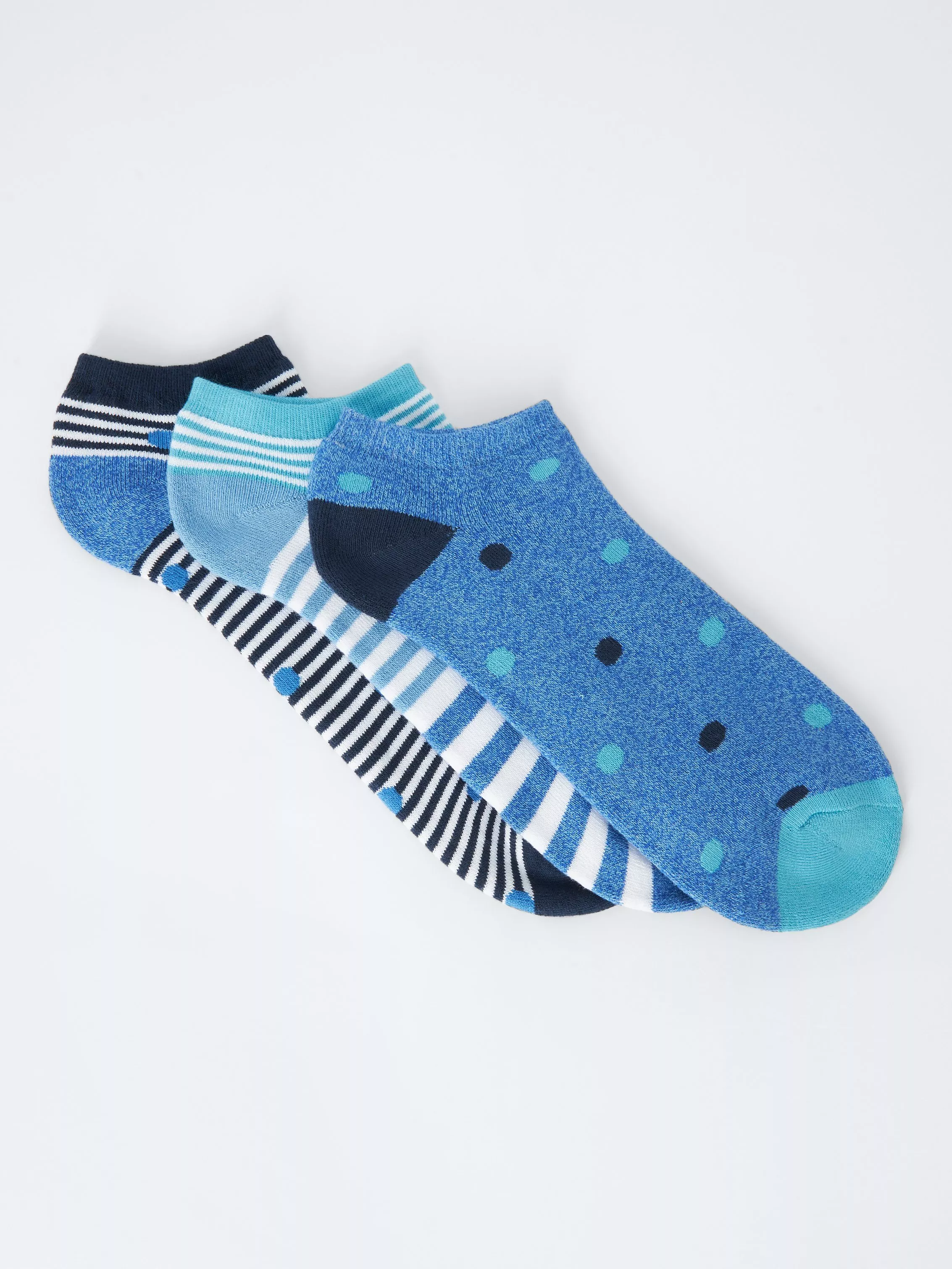 John LewisSpot & Stripe Trainer Socks, Pack of 3, Blue/Multi