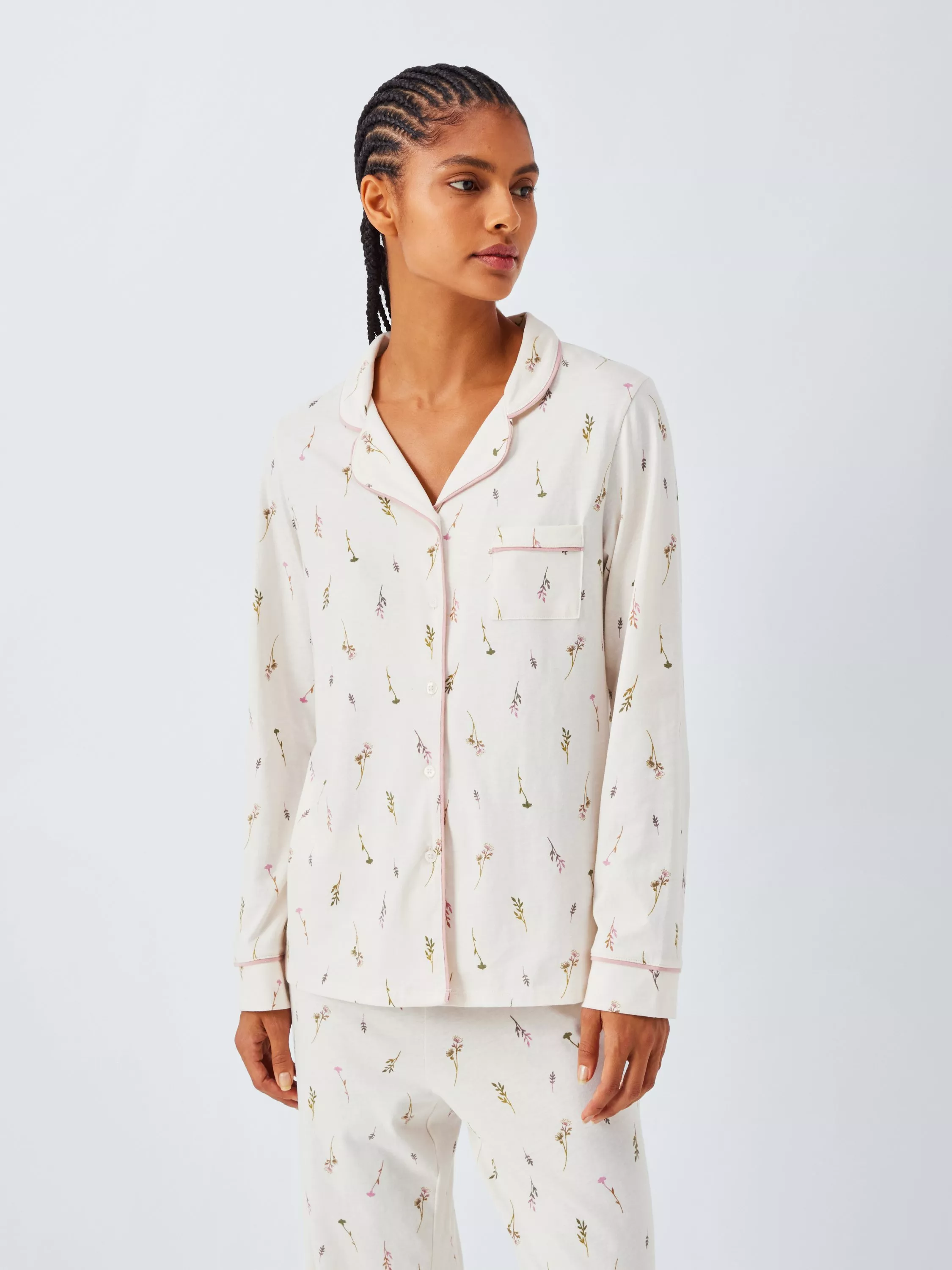With a vintage-inspired sprig print and traditional shirt cut, this pyjama set is as classic as they come. Contrast trim adds a subtle burst of colour.
