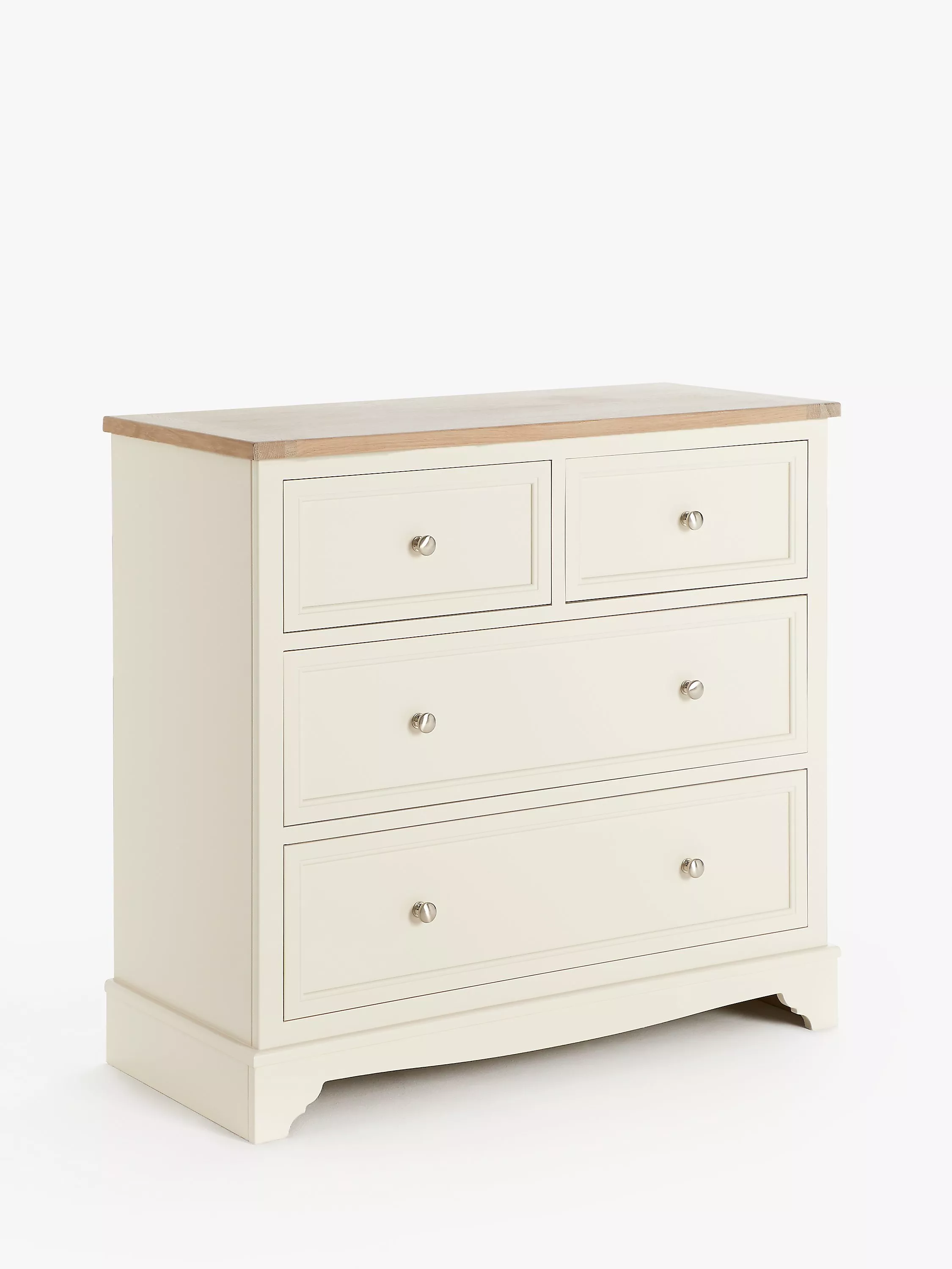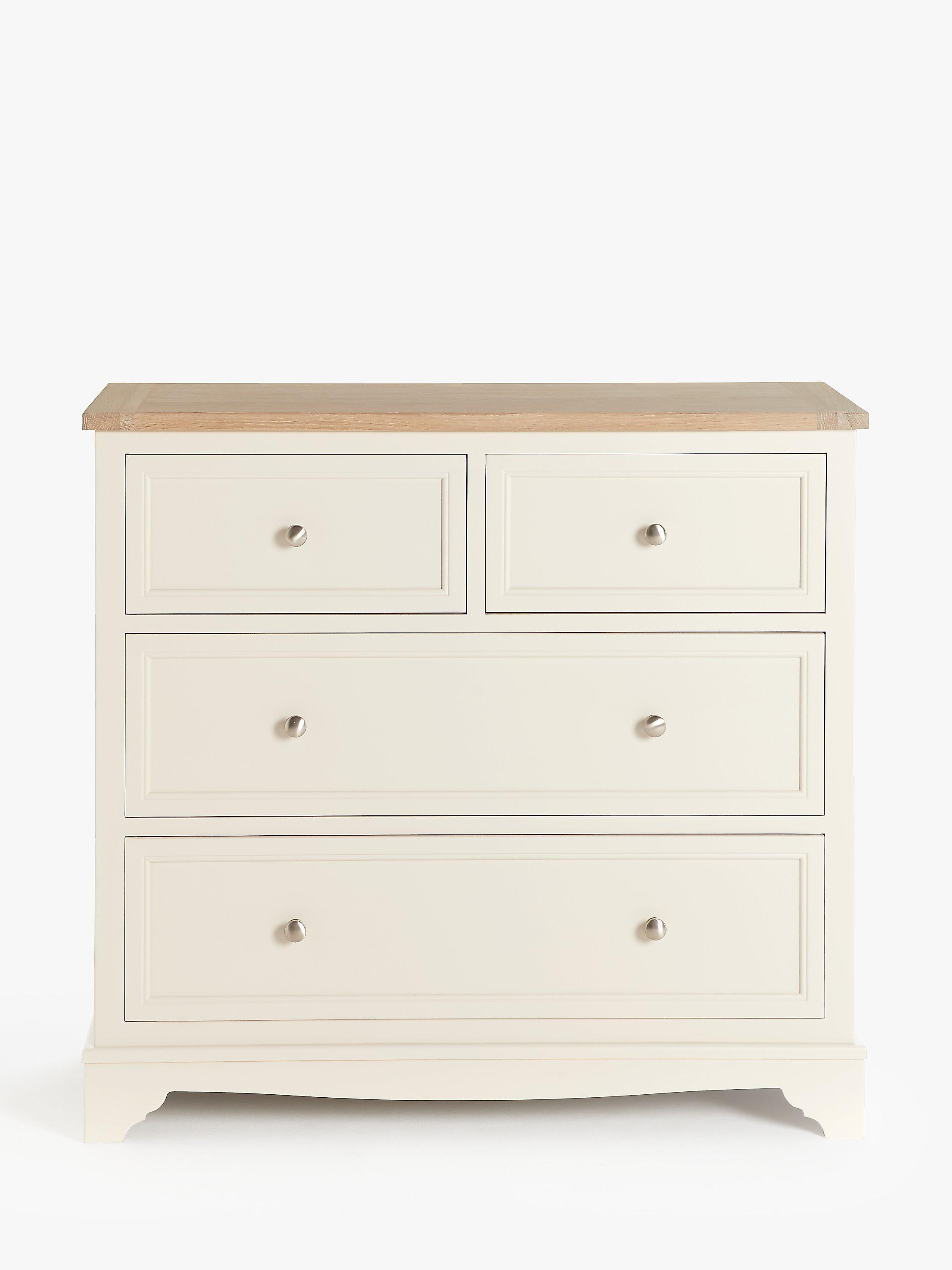 Inspired by the coastal town itself, our St Ives range of bedroom furniture encapsulates its fresh, charming feel. This chest of drawers is made from an impressive combination of solid oak and birch wood, with MDF and oak veneers adding to its reassuringly sturdy build. Panel detailing on each drawer adds a classic, traditional quality to the design and its painted finish makes it easy to style in both modern or more traditional interiors. There's also plenty of storage space in the four deep drawers, so keep your bedroom clutter free.