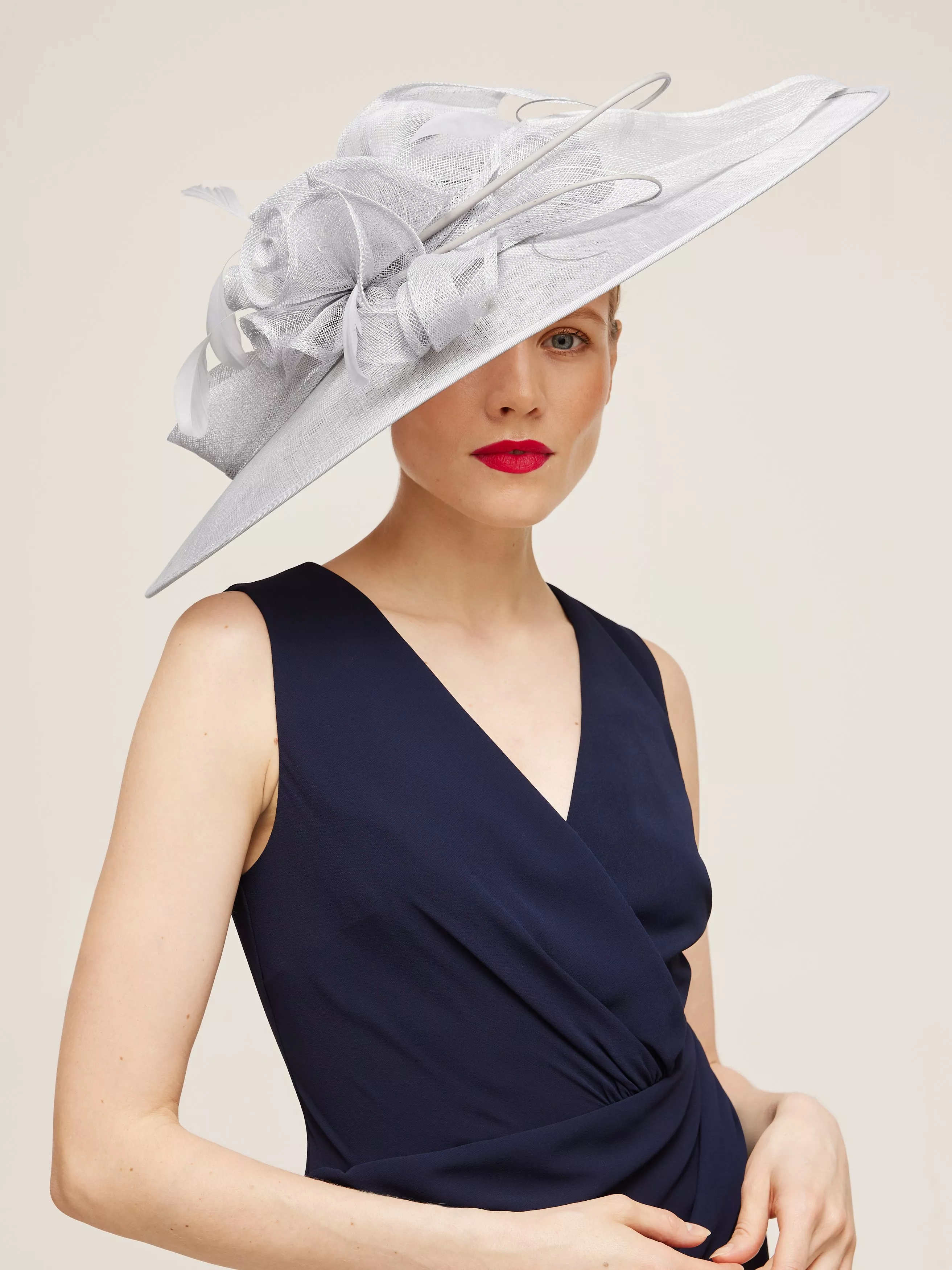 A stunning choice in a head-turning, asymmetric style, the Stacey fascinator comes in a wide disc design with textured, quill detailing.