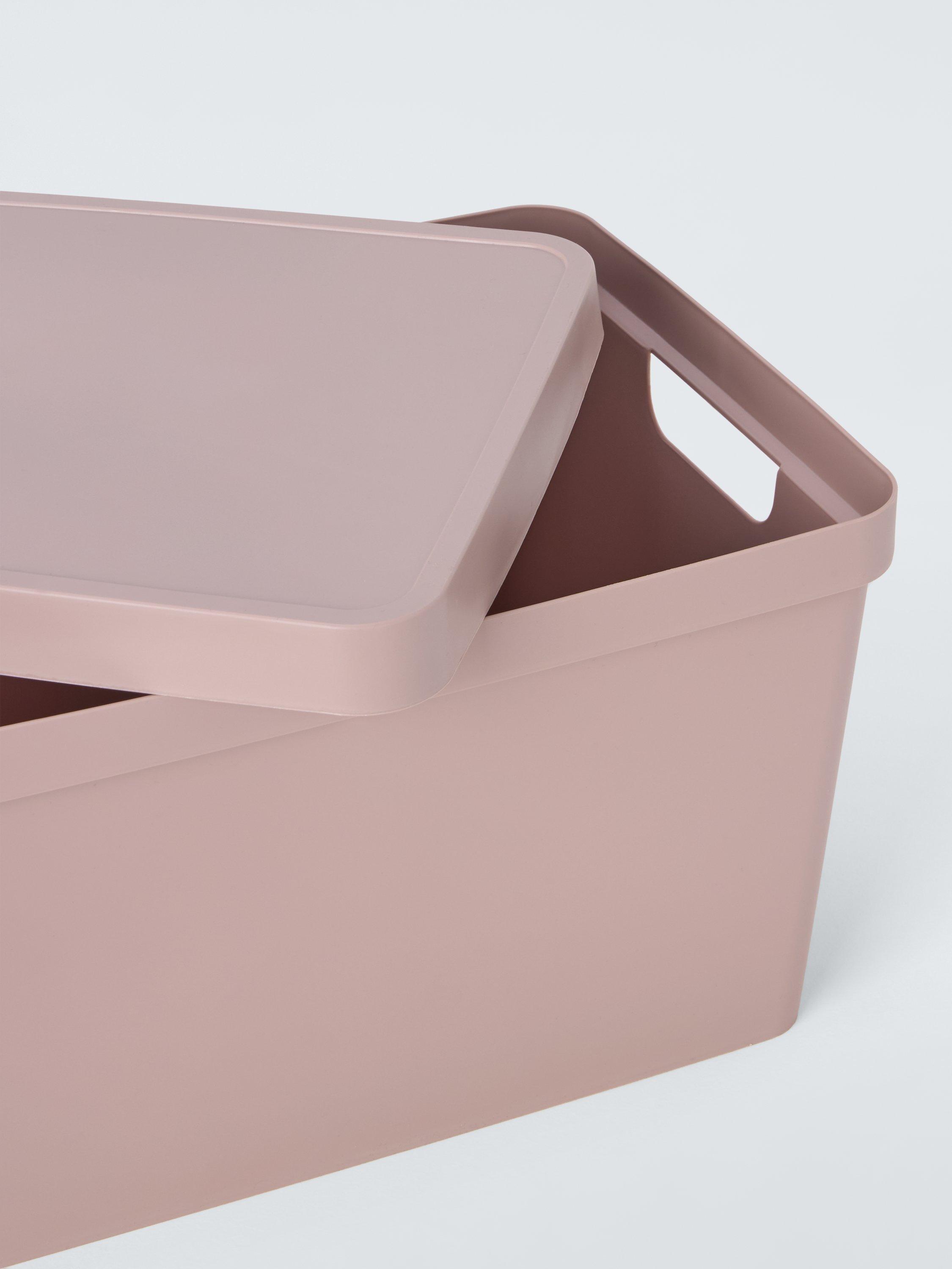 Opaque, lidded boxes that can be used all around the house, providing attractive storage that conceals clutter and gives a neat and streamlined look. Available in a range of colours to suit most homes.