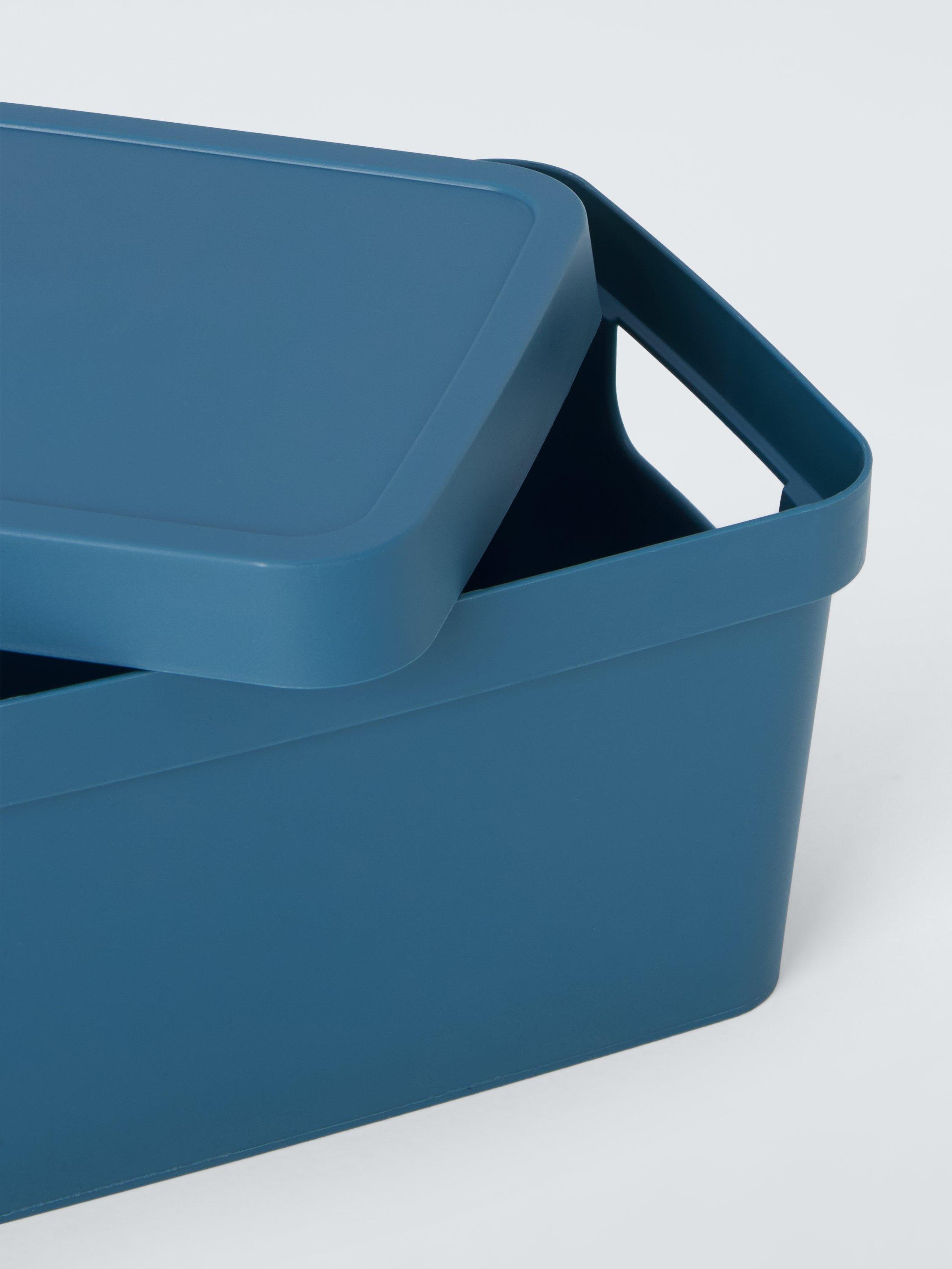 Opaque, lidded boxes that can be used all around the house, providing attractive storage that conceals clutter and gives a neat and streamlined look. Available in a range of colours to suit most homes.