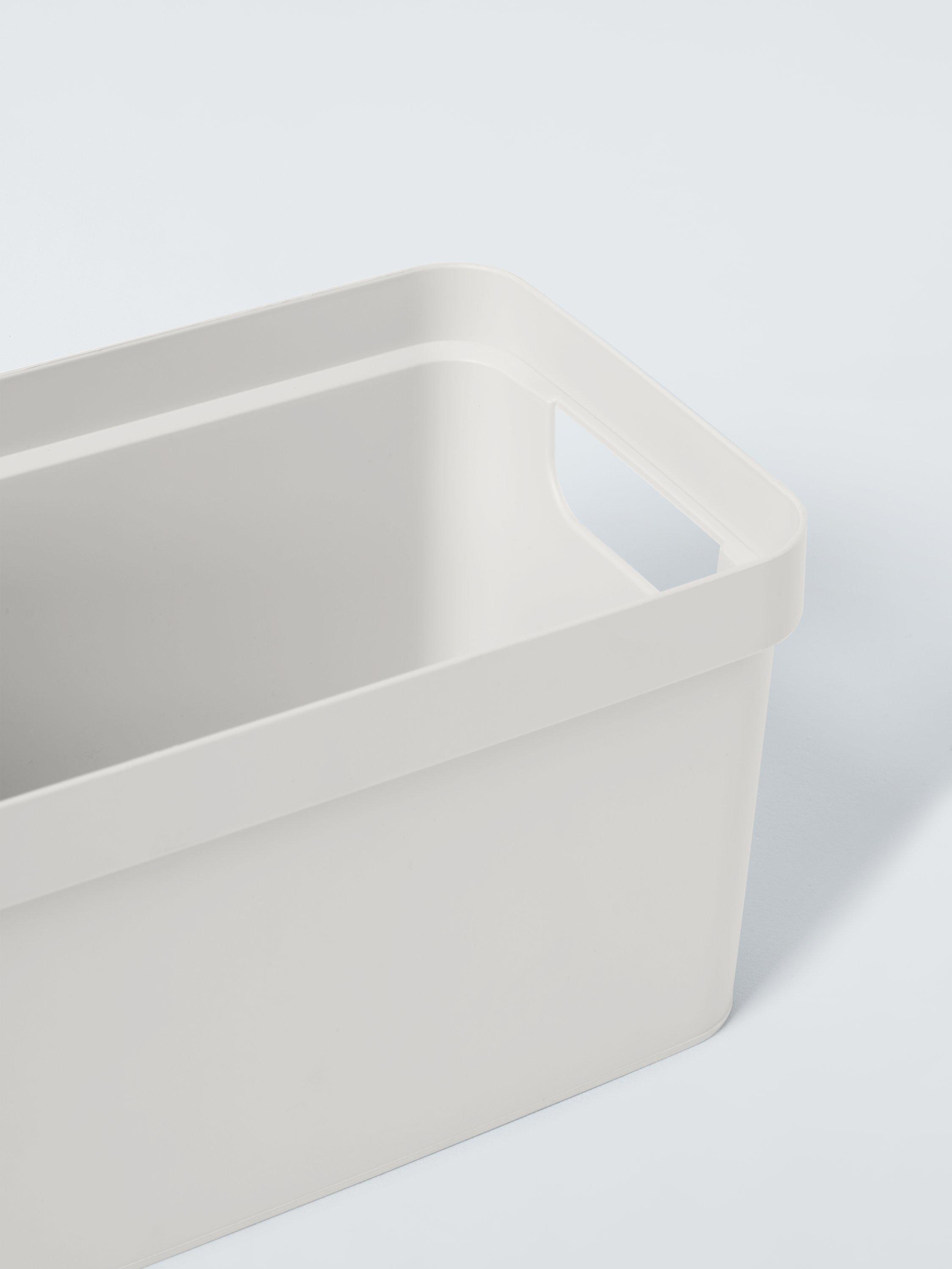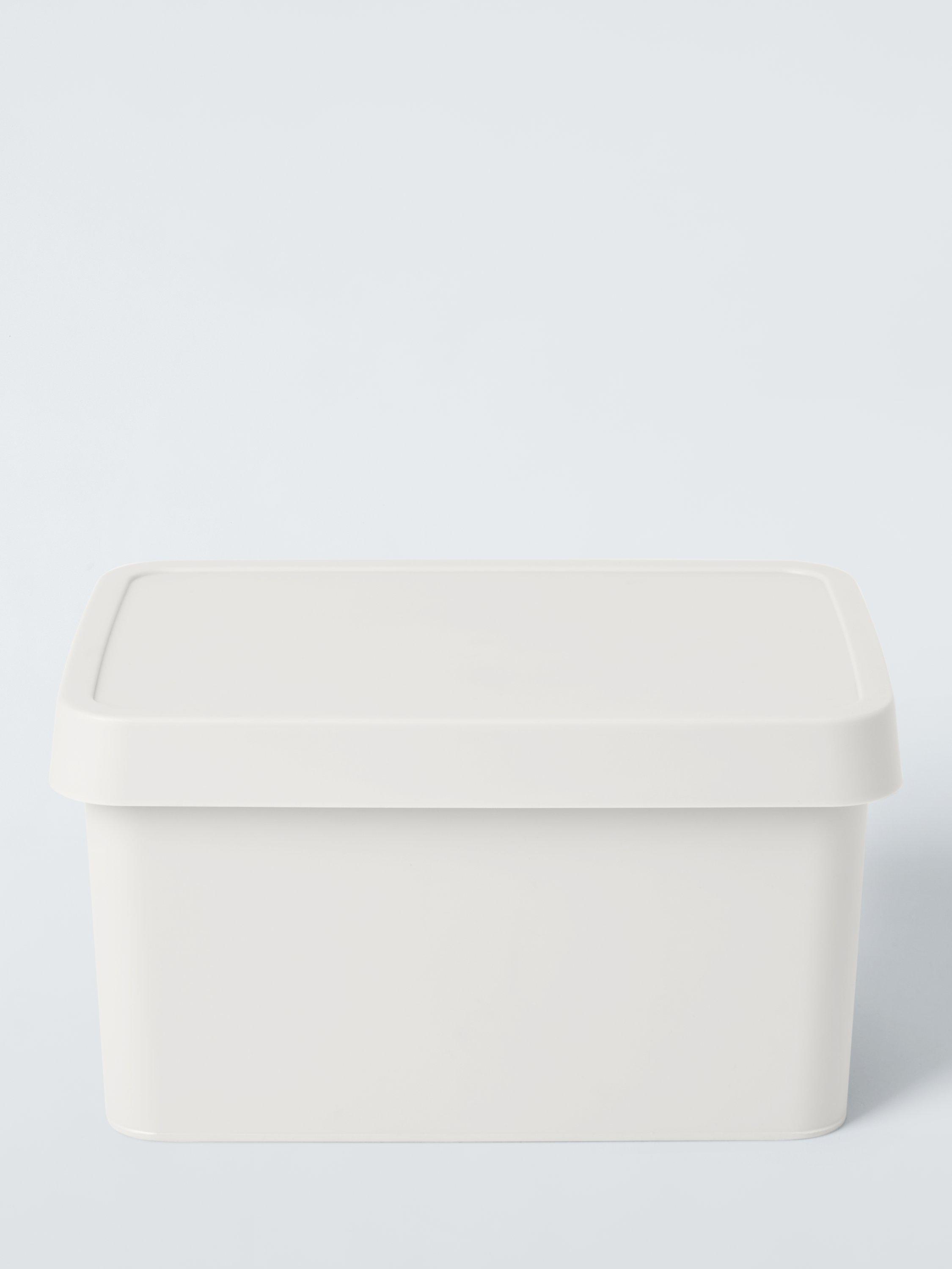 Opaque, lidded boxes that can be used all around the house, providing attractive storage that conceals clutter and gives a neat and streamlined look. Available in a range of colours to suit most homes.