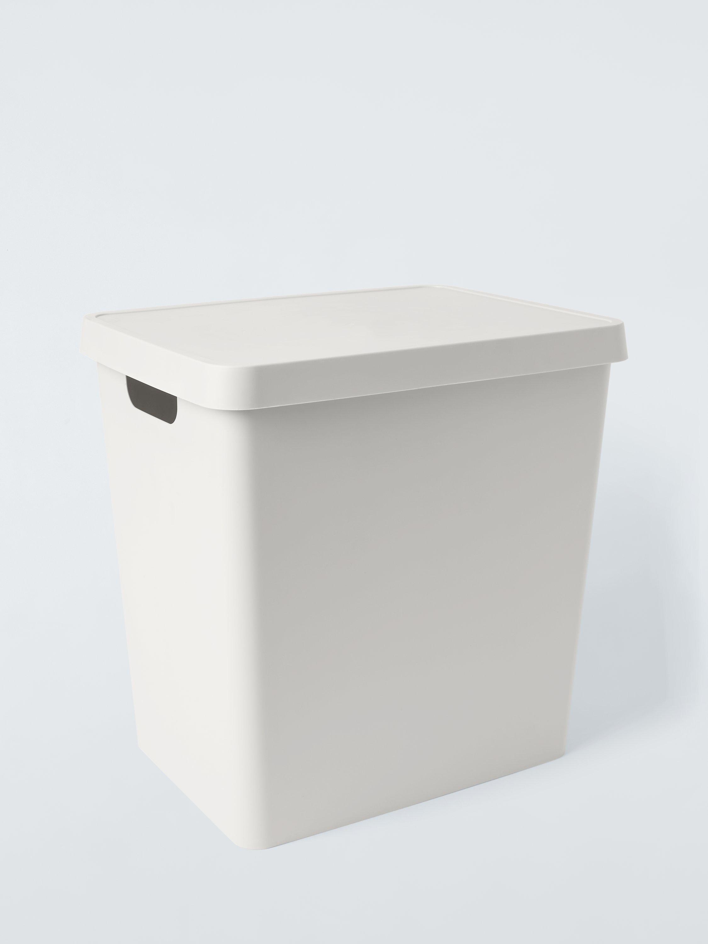 Opaque, lidded boxes that can be used all around the house, providing attractive storage that conceals clutter and gives a neat and streamlined look. Available in a range of colours to suit most homes.