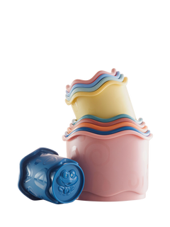These colourful stacking cups have friendly animals on the base and pleasing rippled edges for little hands to explore.