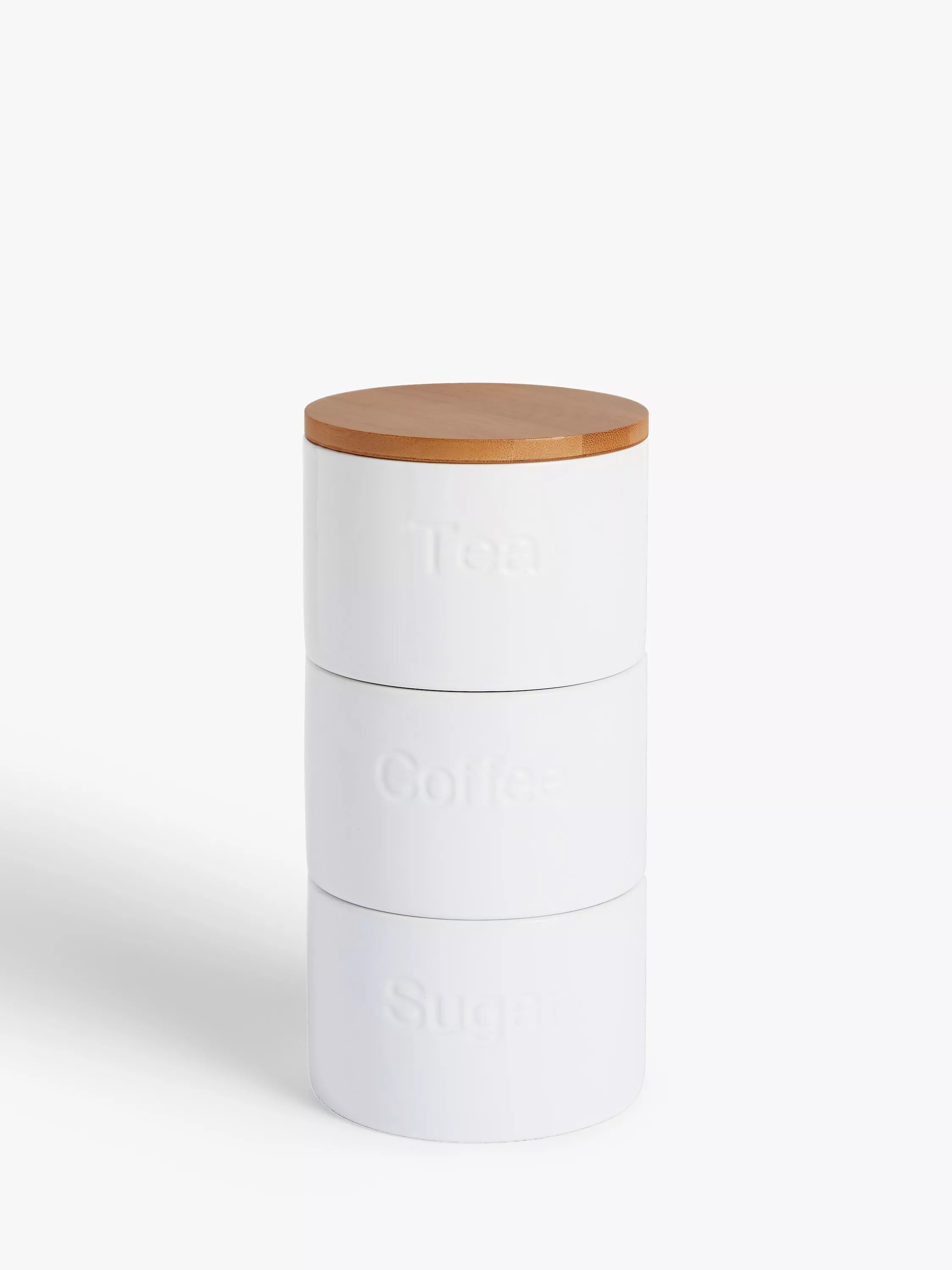 John LewisStacking Tea Coffee Sugar Ceramic Storage Containers, Set of 3, 550ml, White