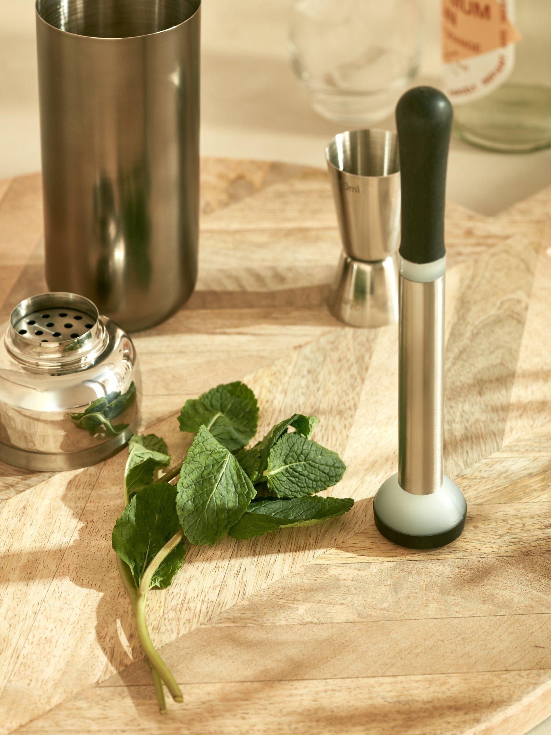 Stylish yet durable, this stainless steel muddler has a non-slip handle for a sure, comfortable grip and a textured silicone head for mashing fruit and herbs. A must-have cocktail tool for fans of mojitos.