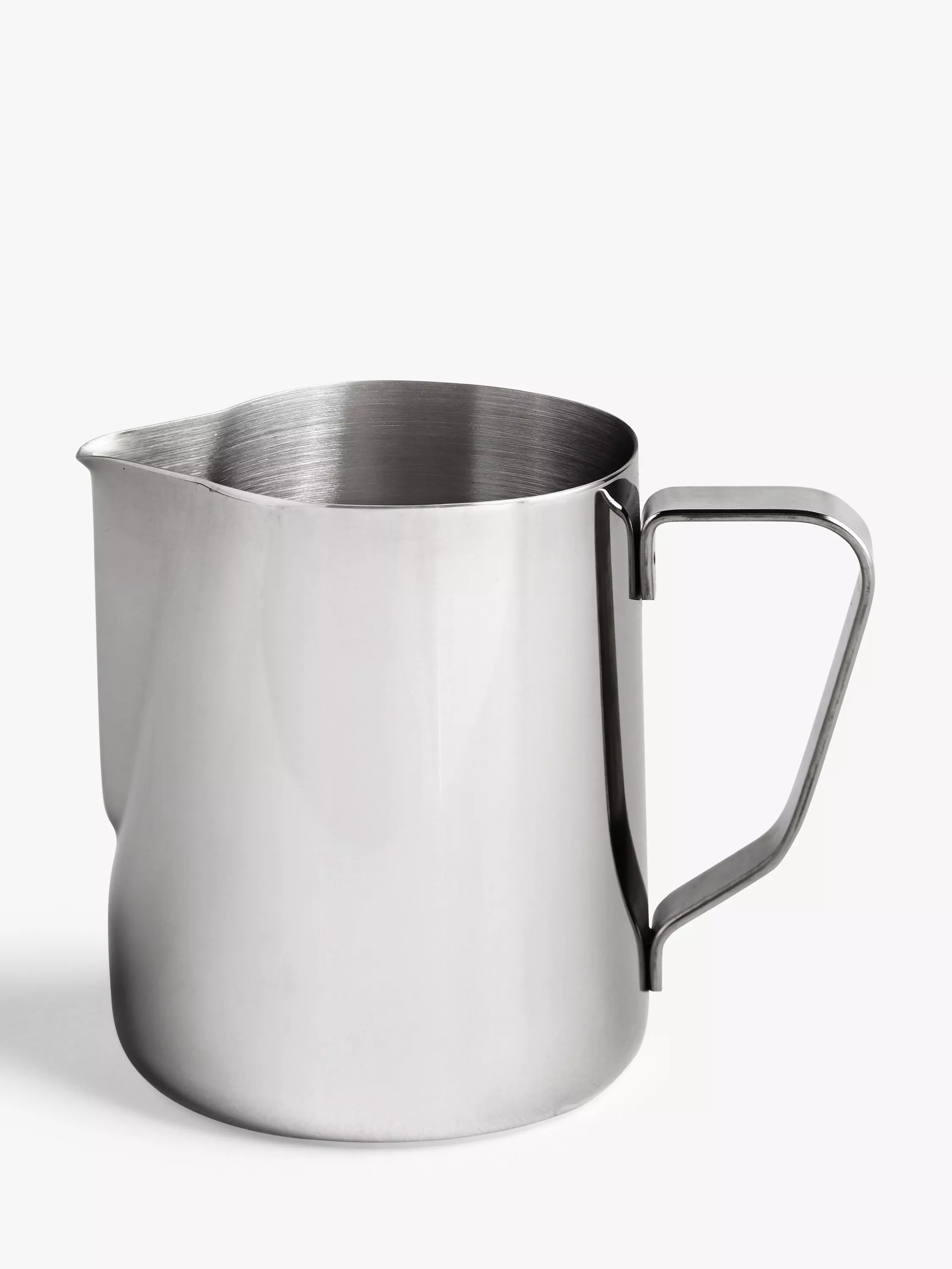 This stainless steel milk jug is sturdy and dishwasher safe for everyday use. The roomy handle and lip make pouring easy.