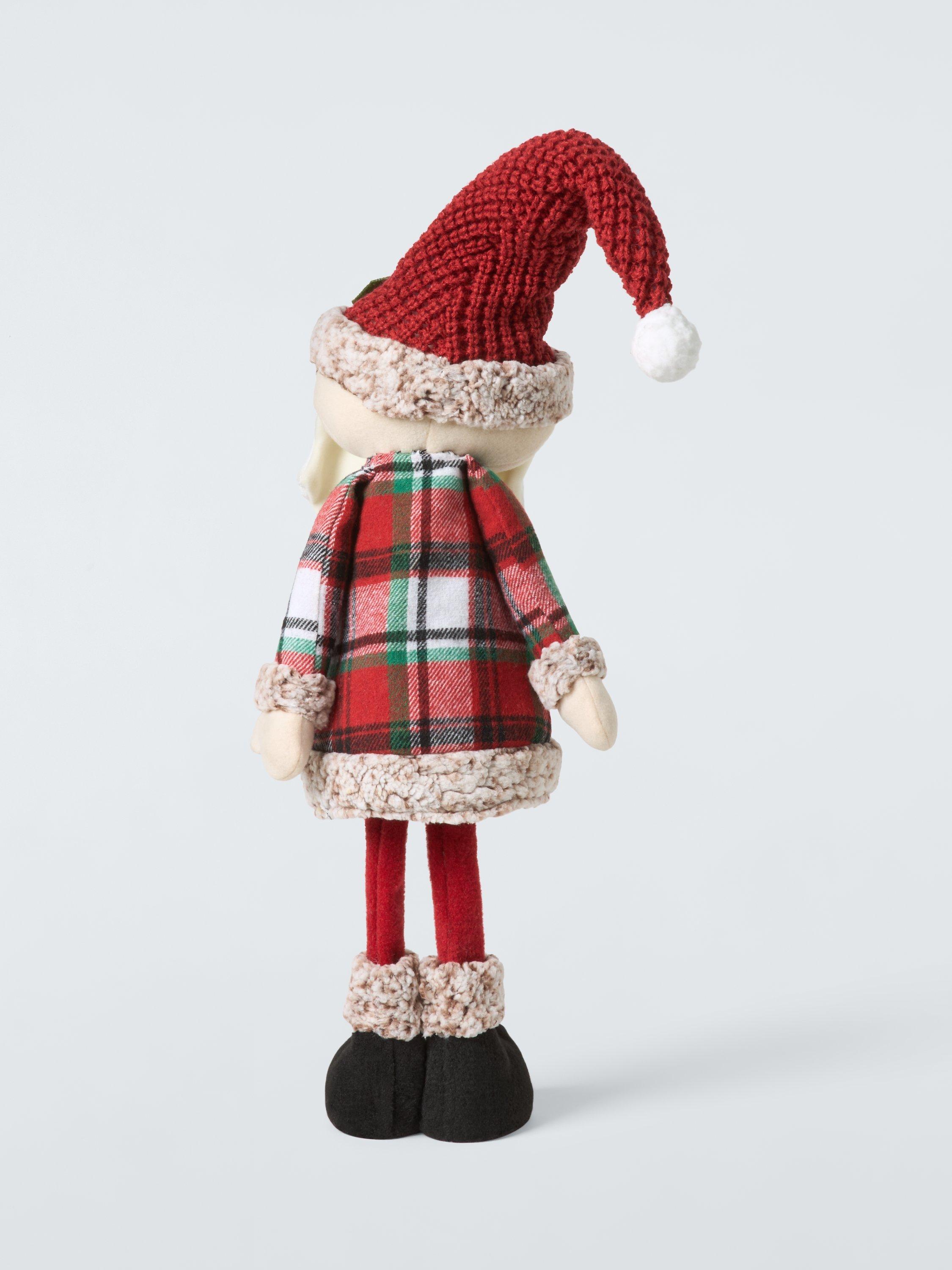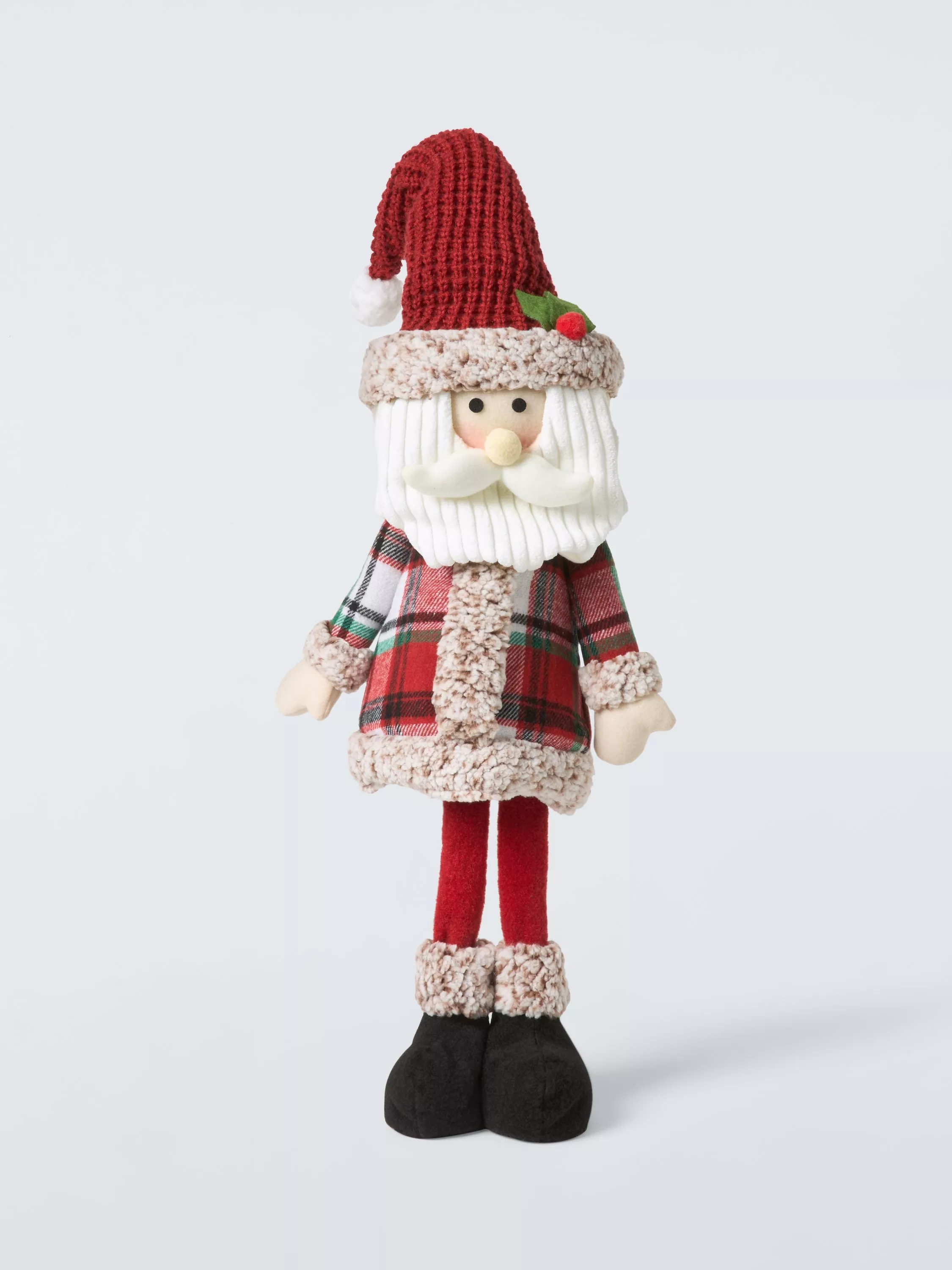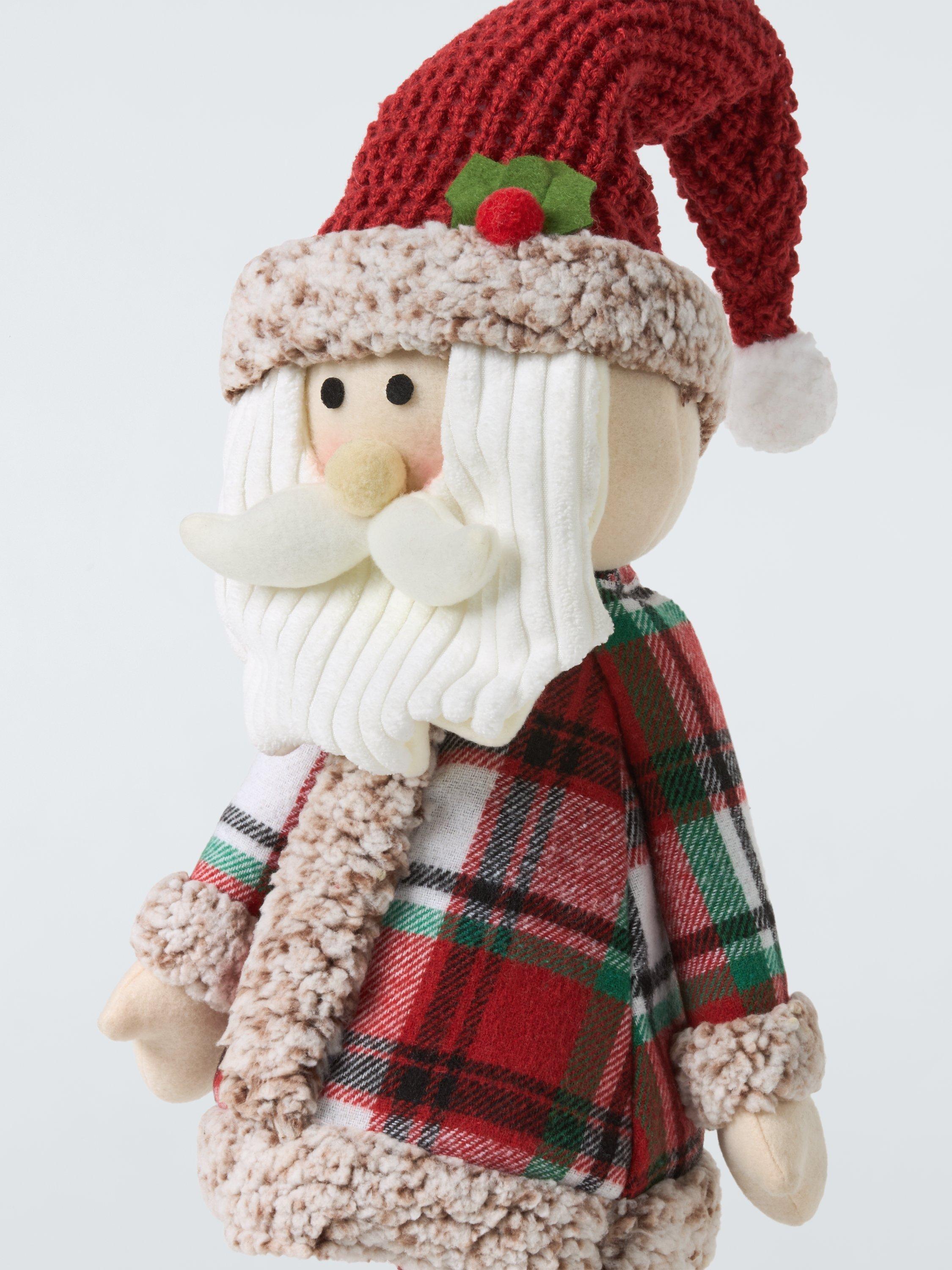 Santa looks snug in his fleecy jacket and knitted hat. He also wears fleecy tights and a sprig of felt holly for festive flair.