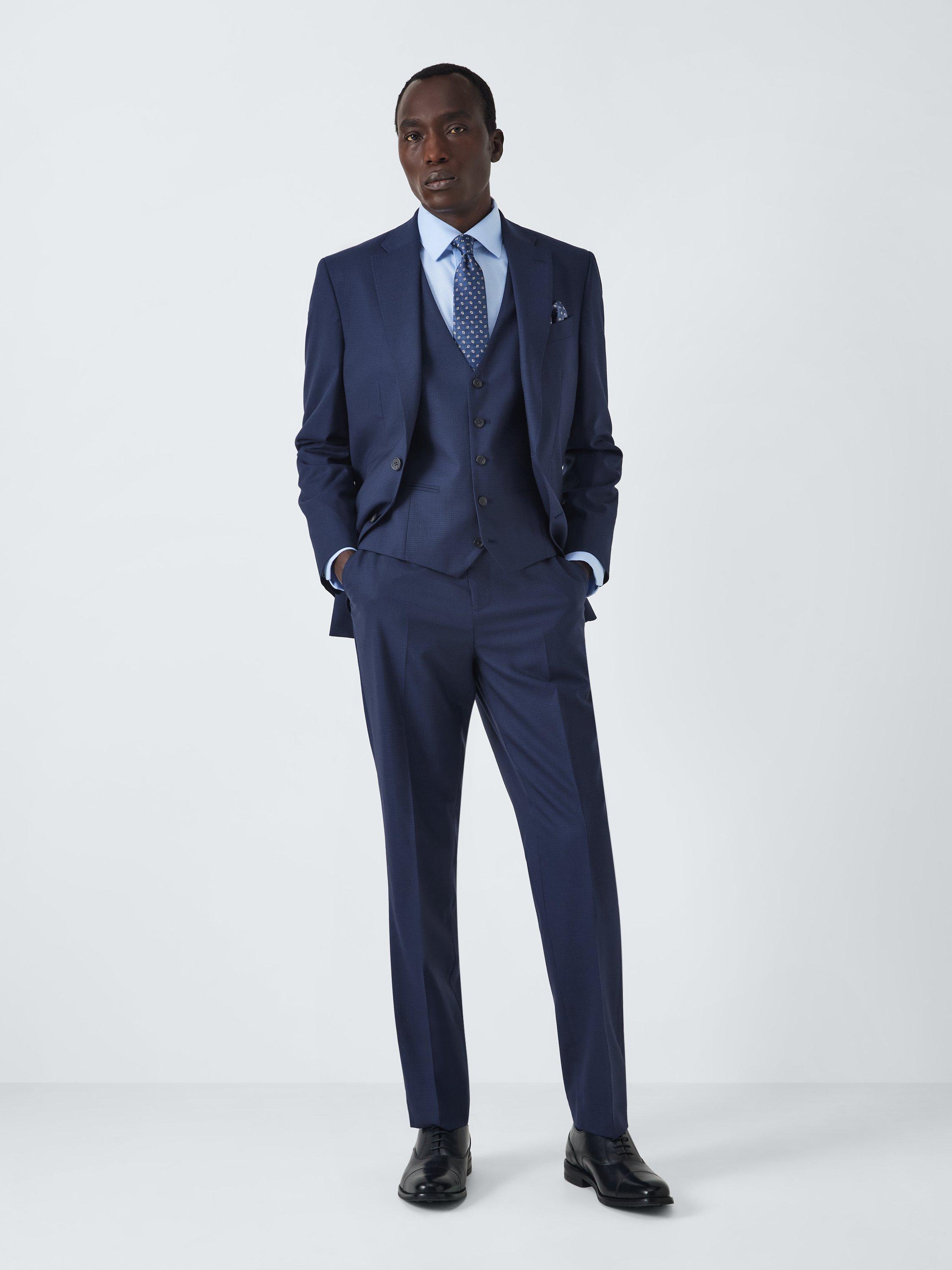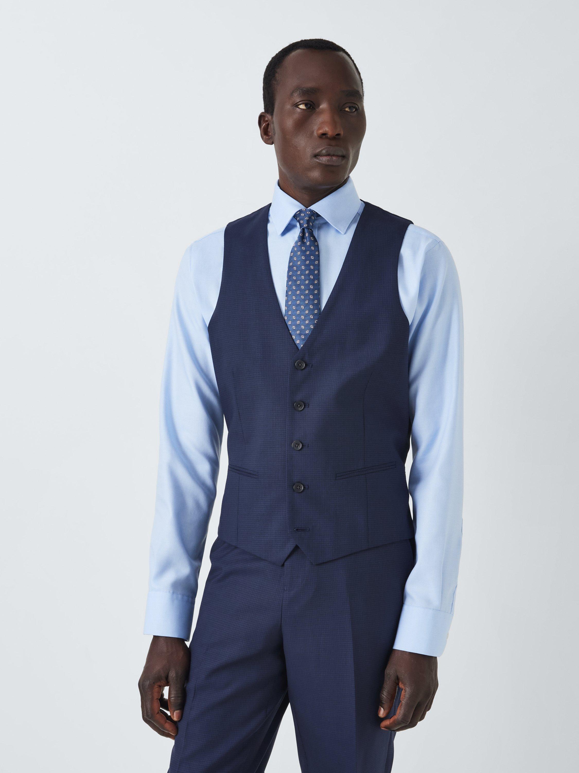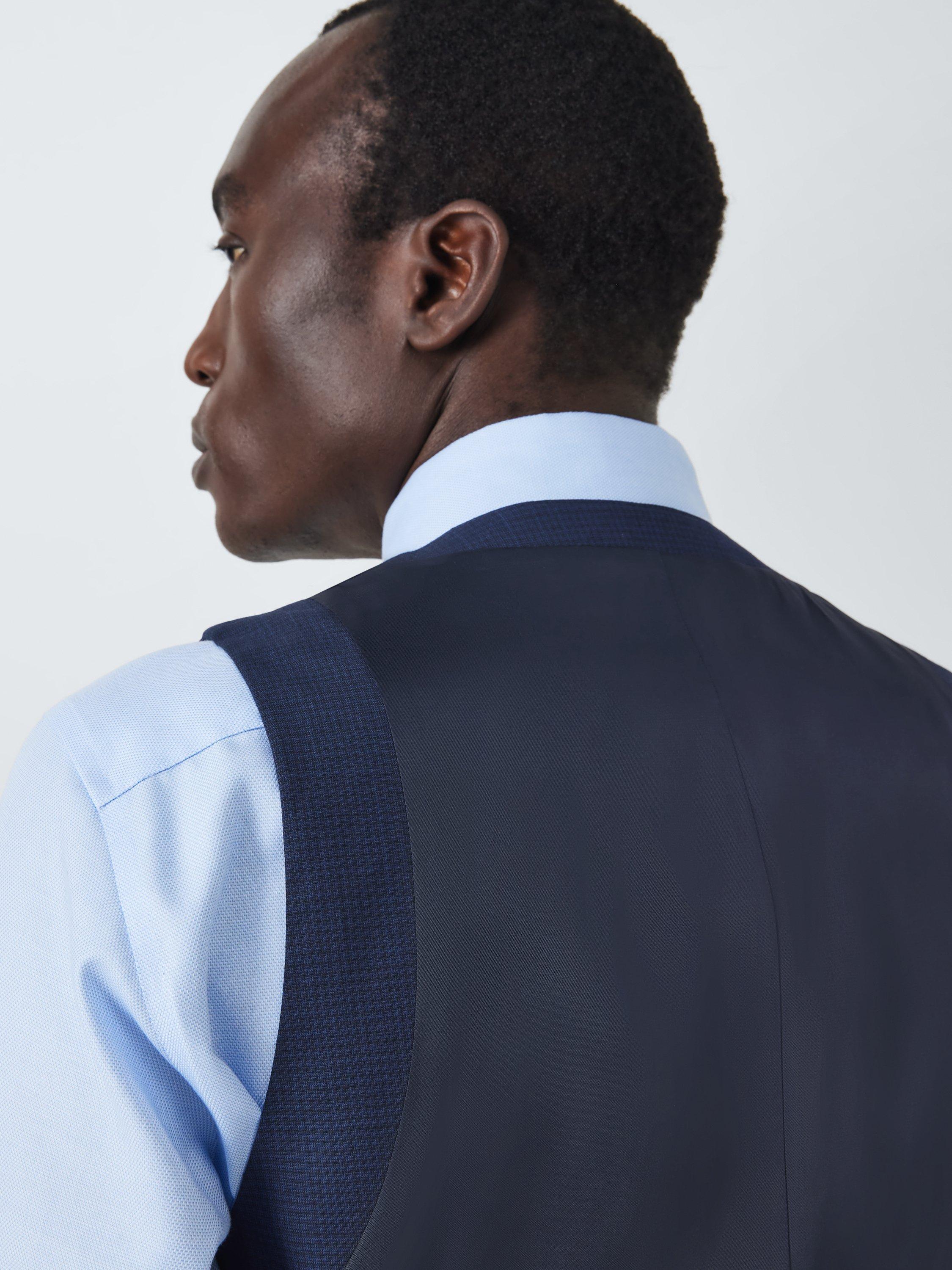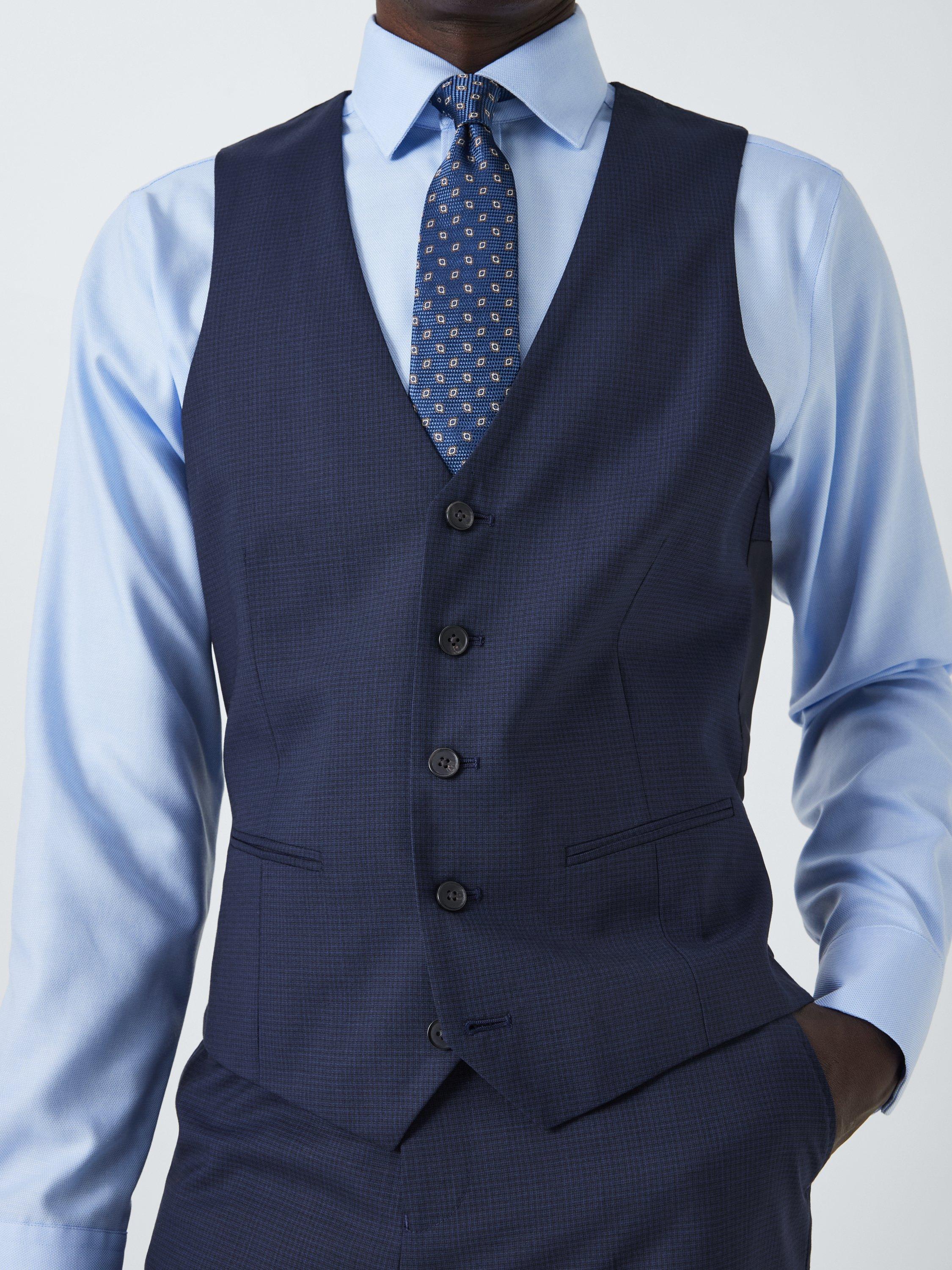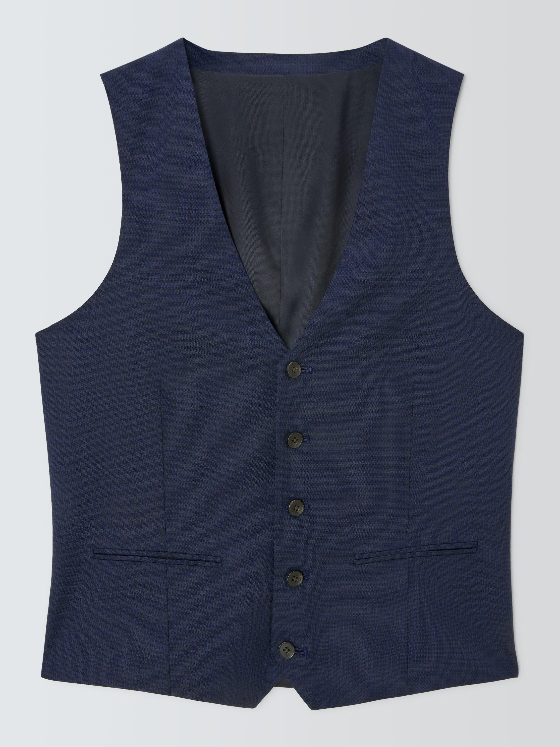 A navy grid pattern waistcoat tailored to our regular fit specification. Styled with front and back darts, two front jet pockets, a gunmetal buckle and five buttons for fastening.