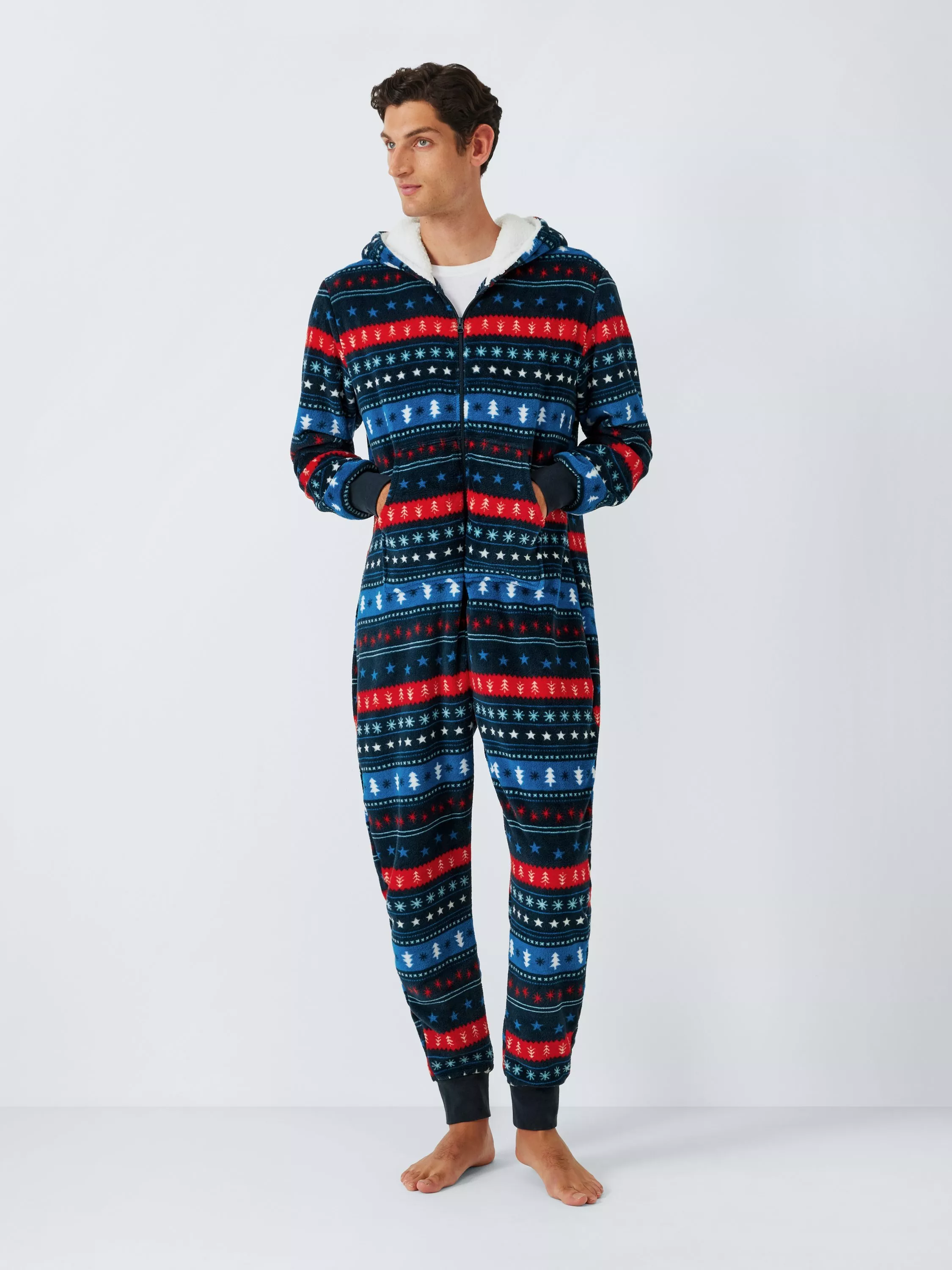 The ultimate in at-home comfort, this full-length all-in-one features a star Fair Isle design inspired by traditional Nordic patterns. The zip-fastening closure makes it extremely easy to pull on or off, whilst the pockets and fluffy lined hood make it an exceptional loungewear piece.