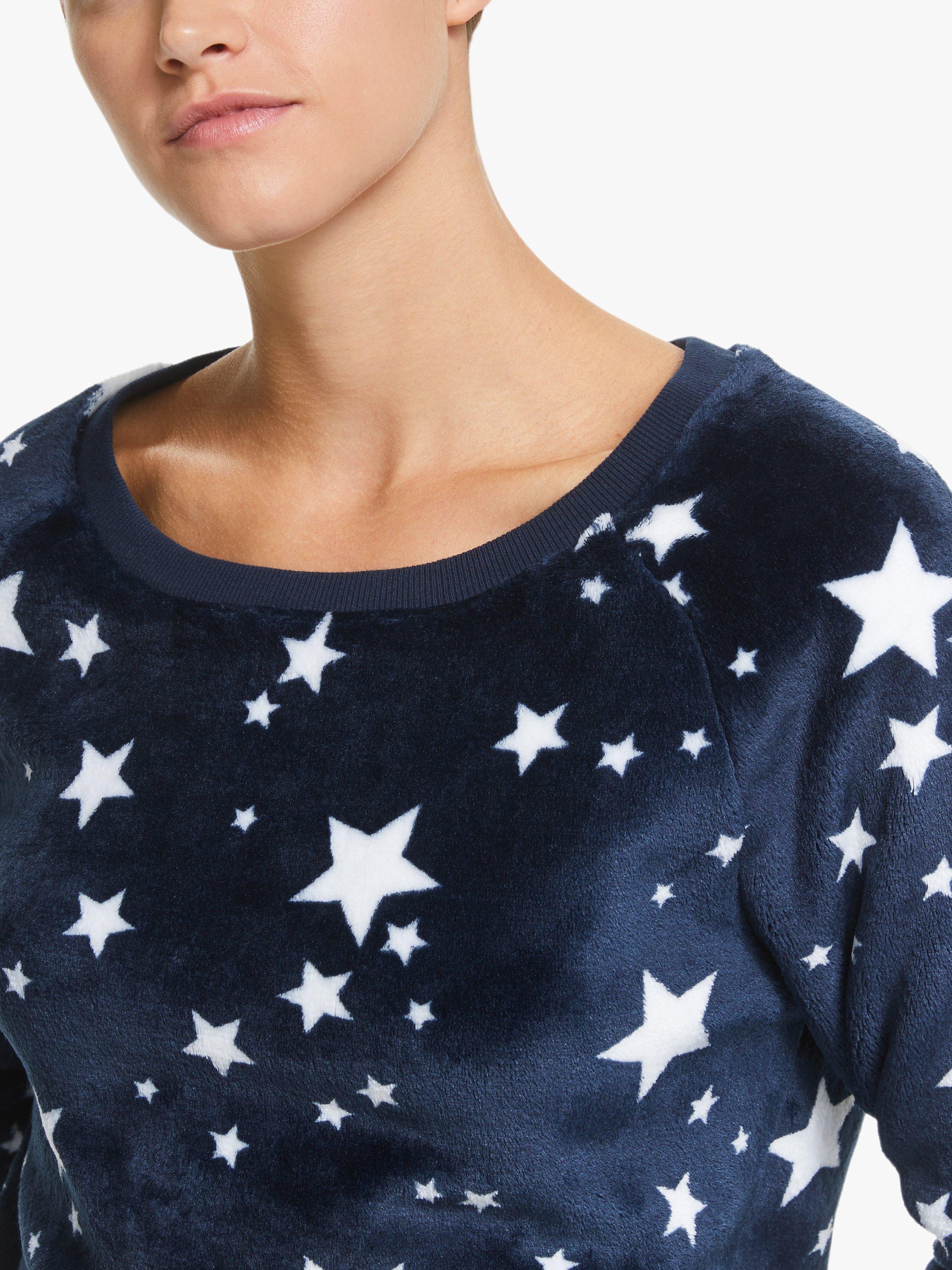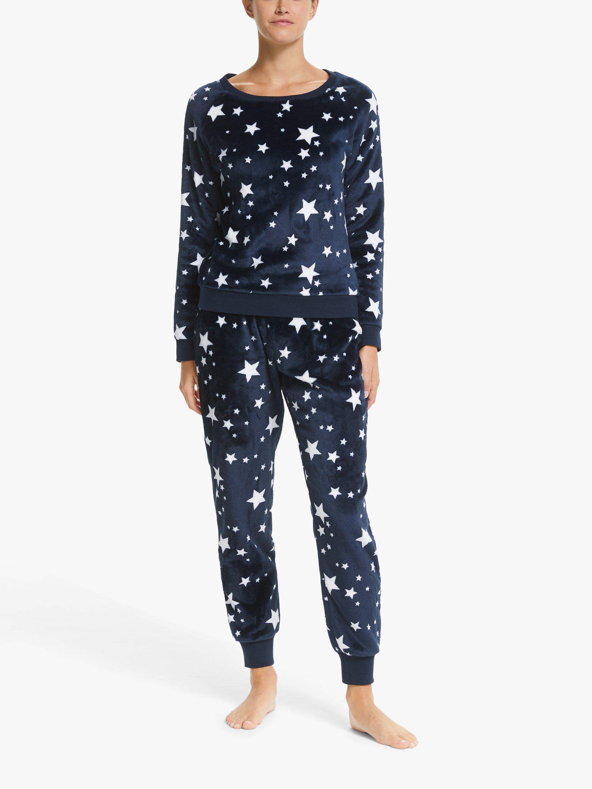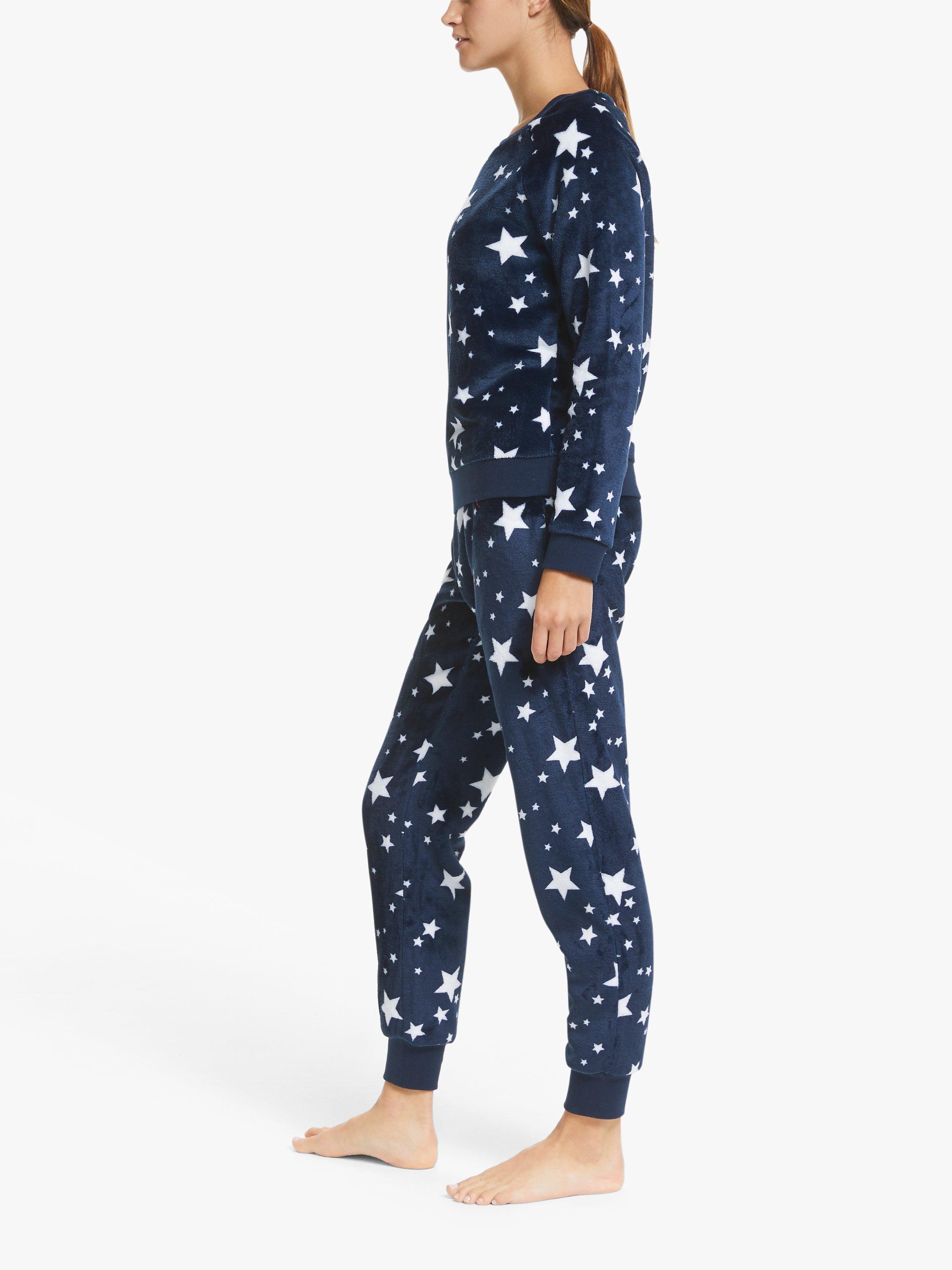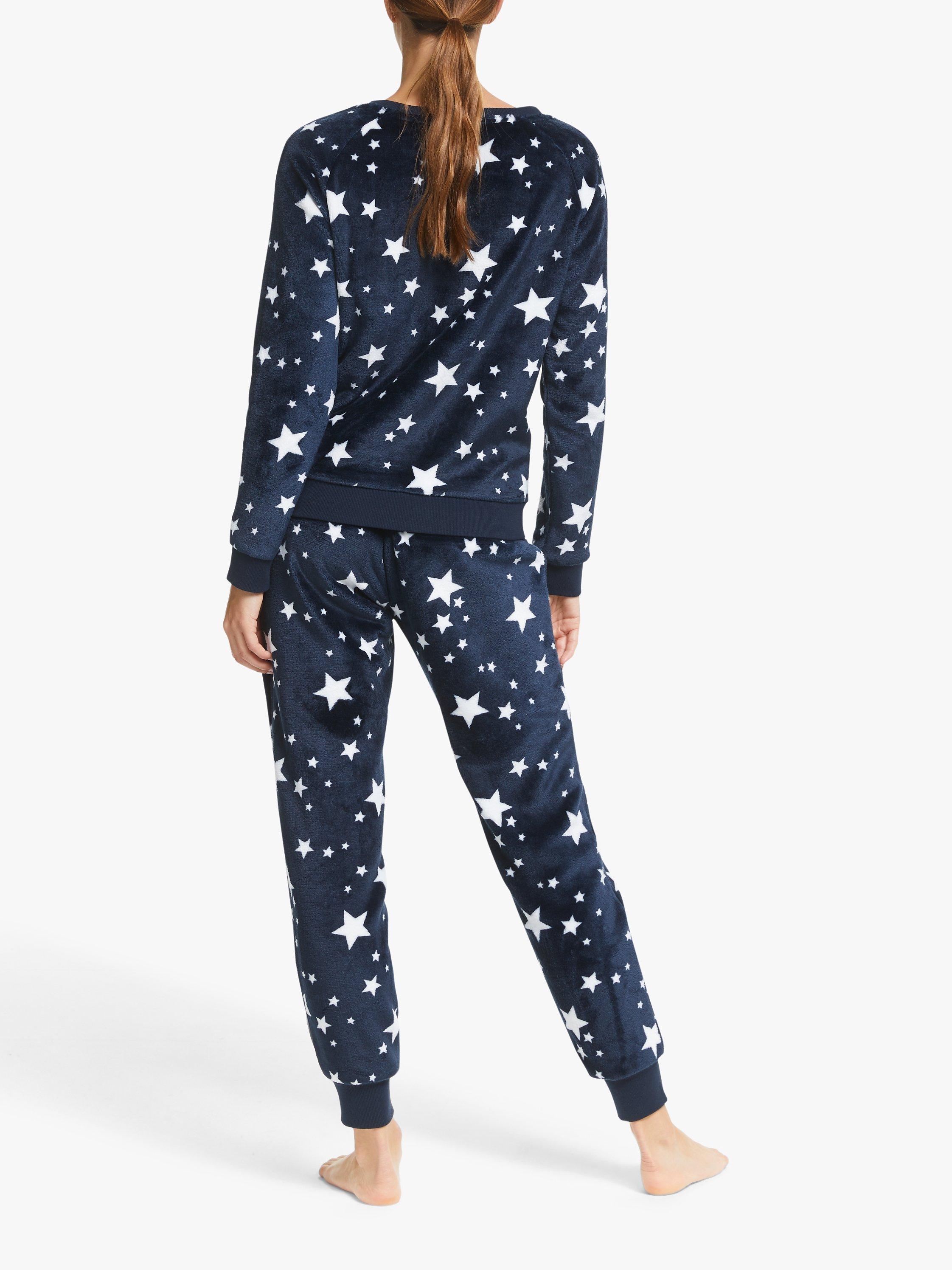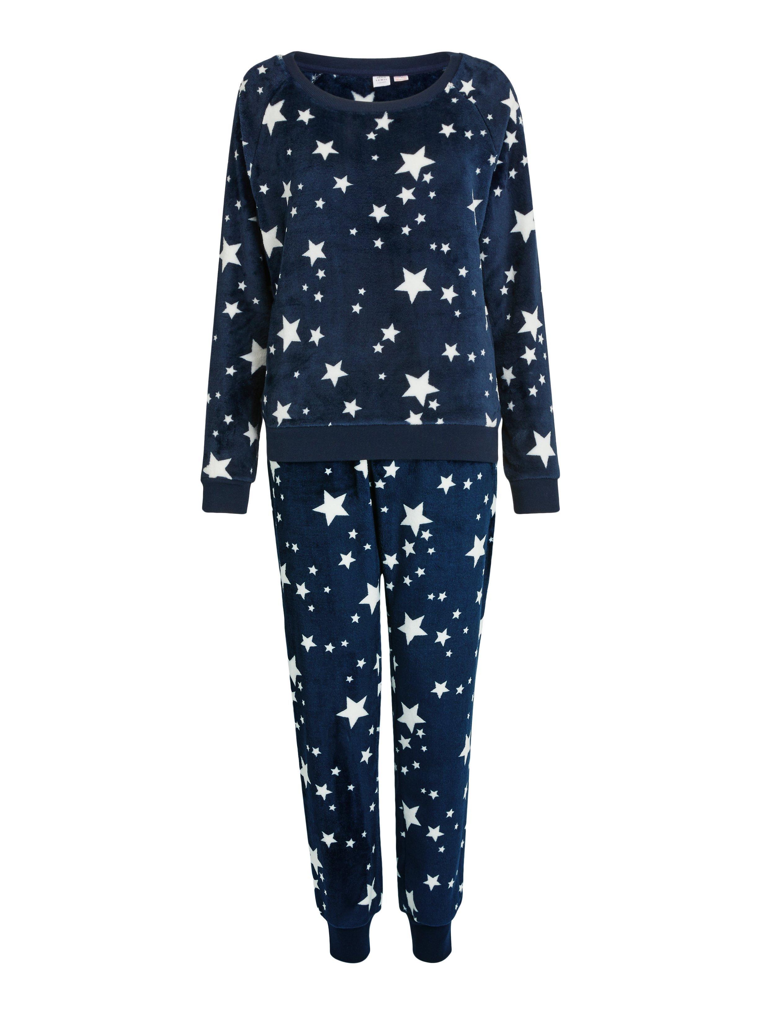 Designed in the cosy comfort of a onesie style but including two separate pieces, our twosie set is made from soft fleece, given a seasonal spin with star detailing. Offering versatility so you mix and match the top and bottoms to best suit your sleep and lounge pieces, we've gently tapered the sleeves and bottoms with ribbed cuffs, that also run along the hem for a more fitted finish.