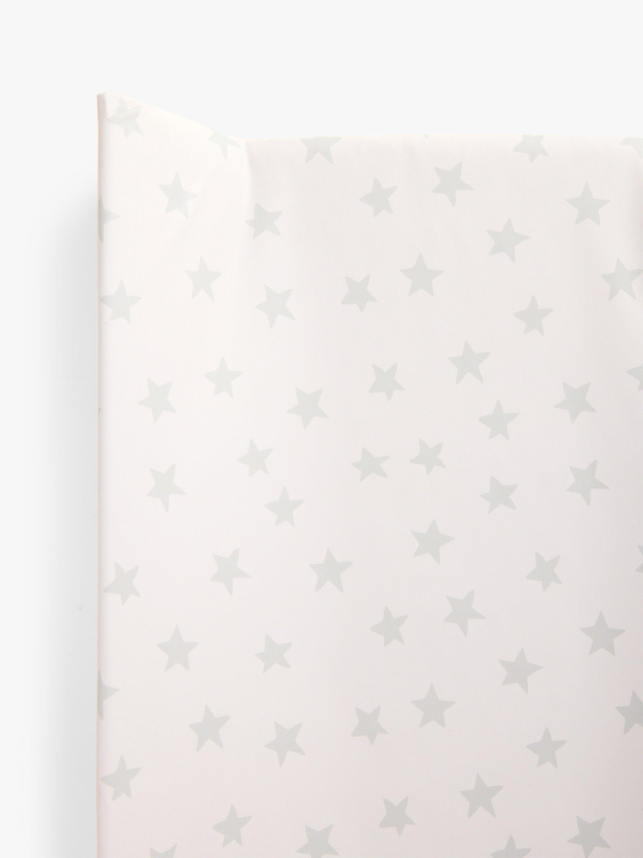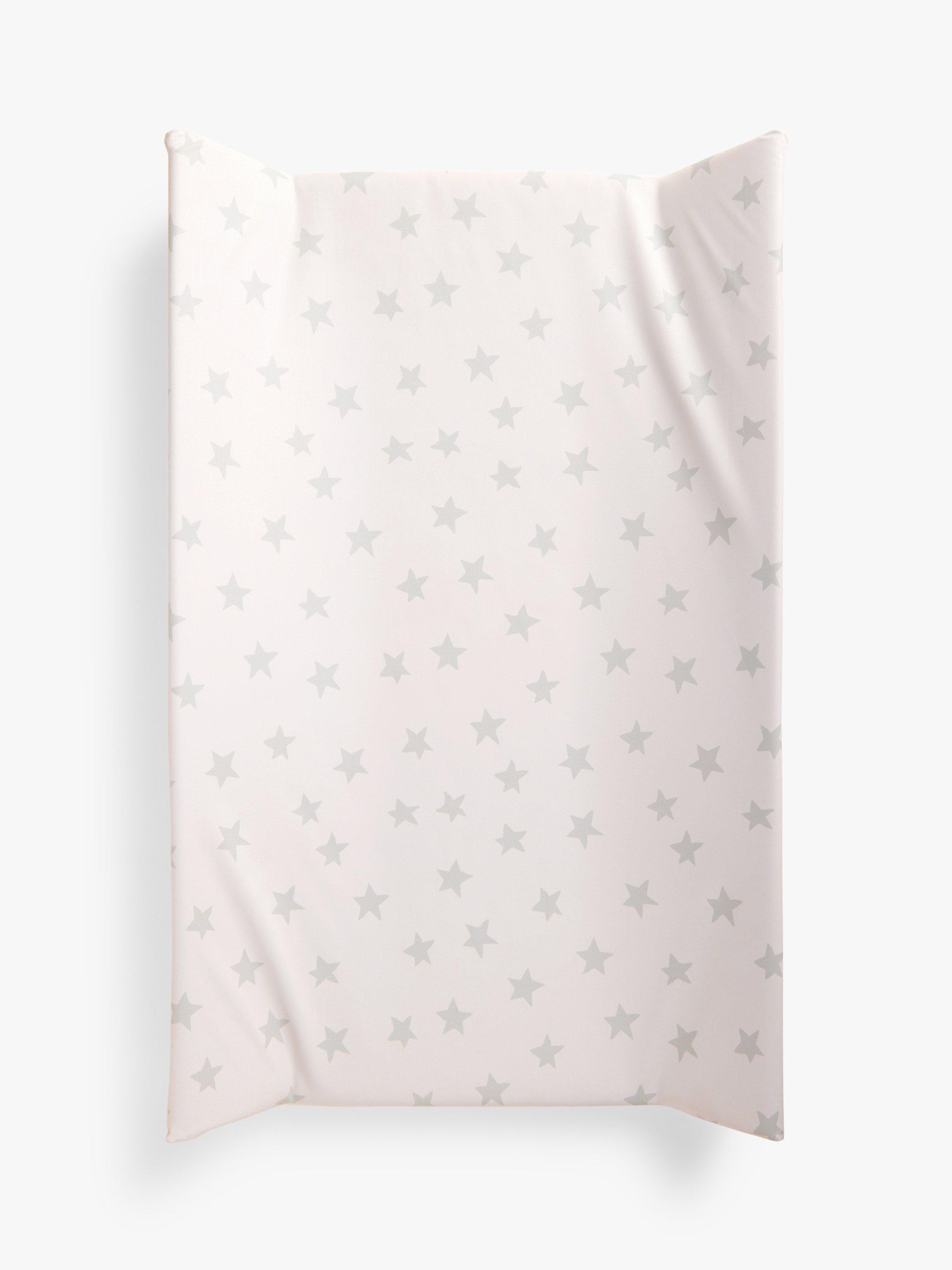 Covered in a versatile star print, this wedge-shaped changing mat has raised sides to help keep your little one safely in place during changes. The quality wipe-clean changing mat has supportive foam and fibre padding with a phthalate-free PVC cover.
