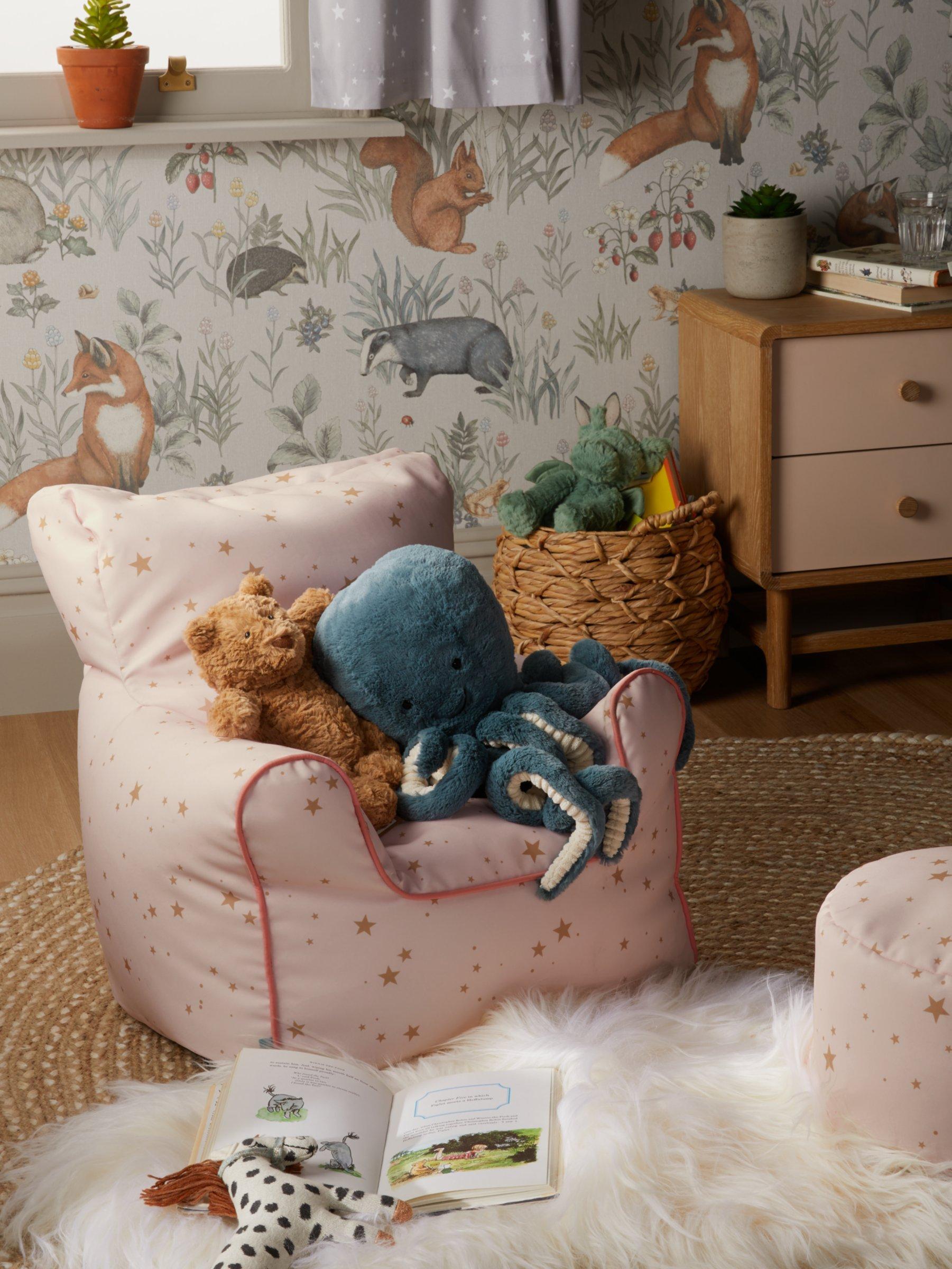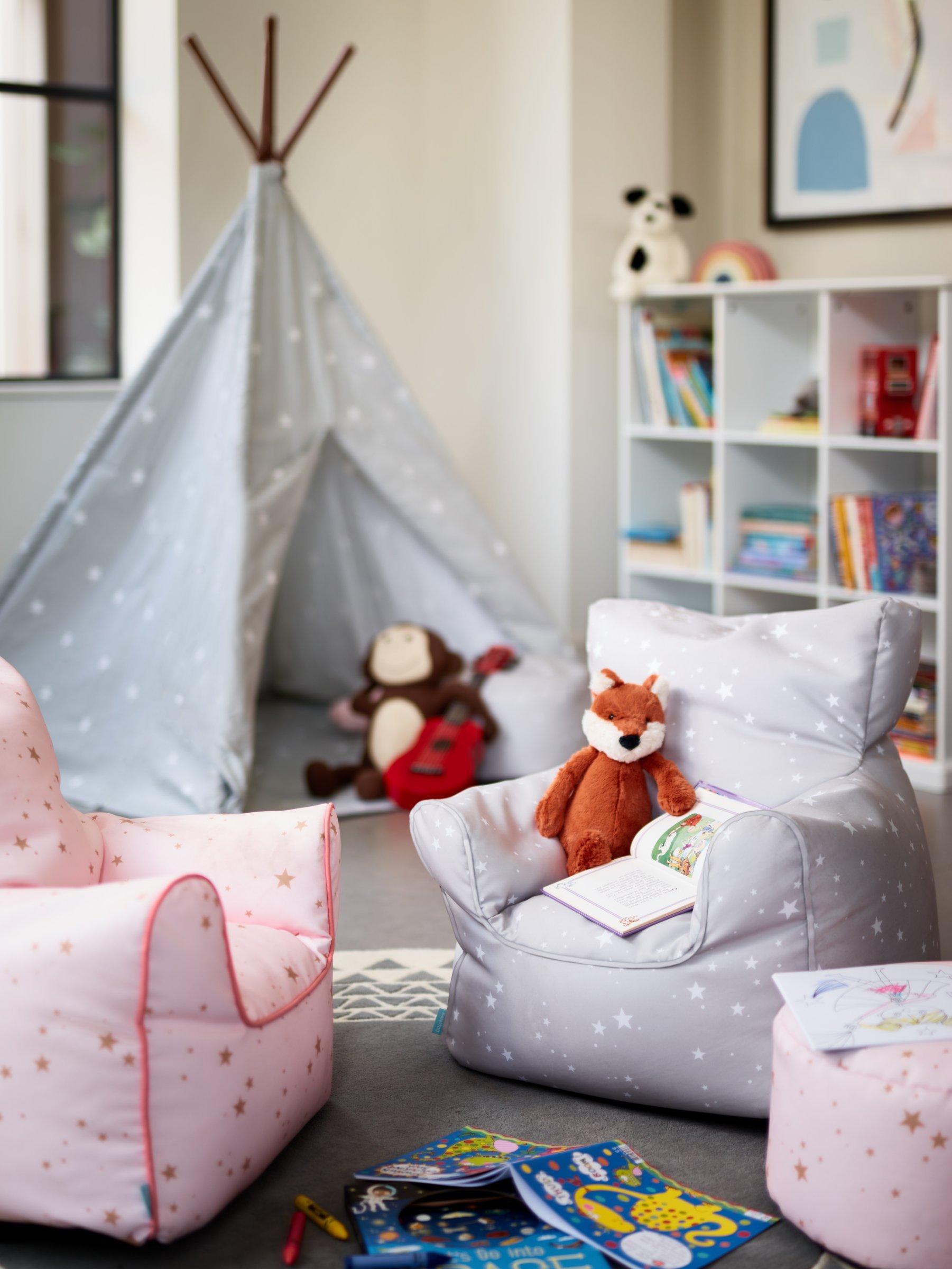 Set up the perfect reading spot with this beanbag chair and stool set. Ideal for smaller spaces, we've filled the chair with supportive beads to ensure a comfortable and stable seat. They'll love its cool, star pattern and we've finished it with a coordinating piped edge for a smart look.