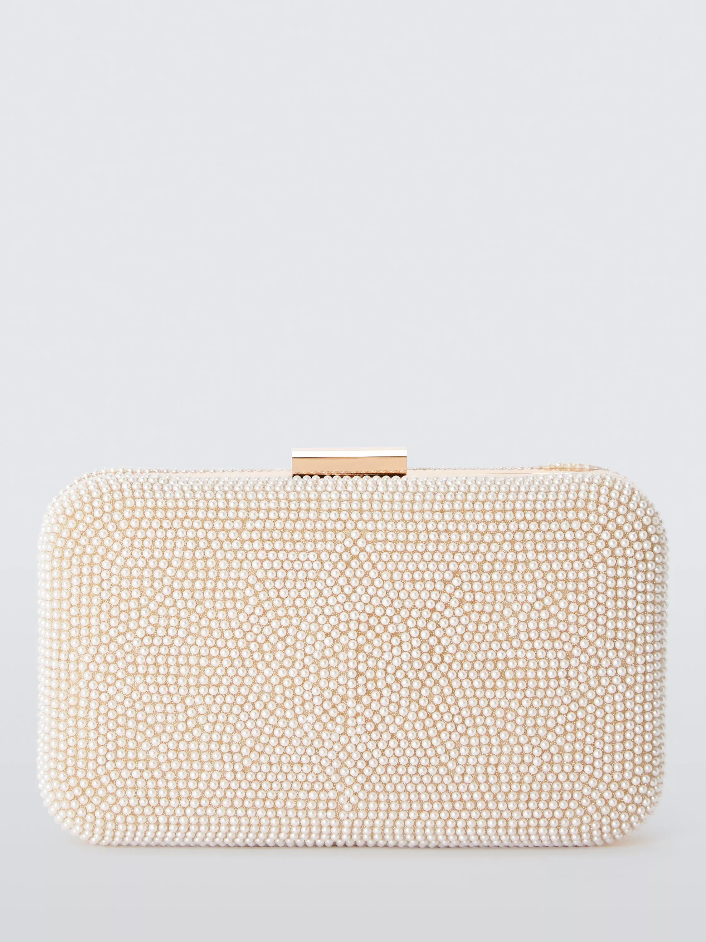 Decorated with shimmering pearl beads, the bag has a classic clasp fastening and opens to reveal a compact interior with room for all your going-out essentials.