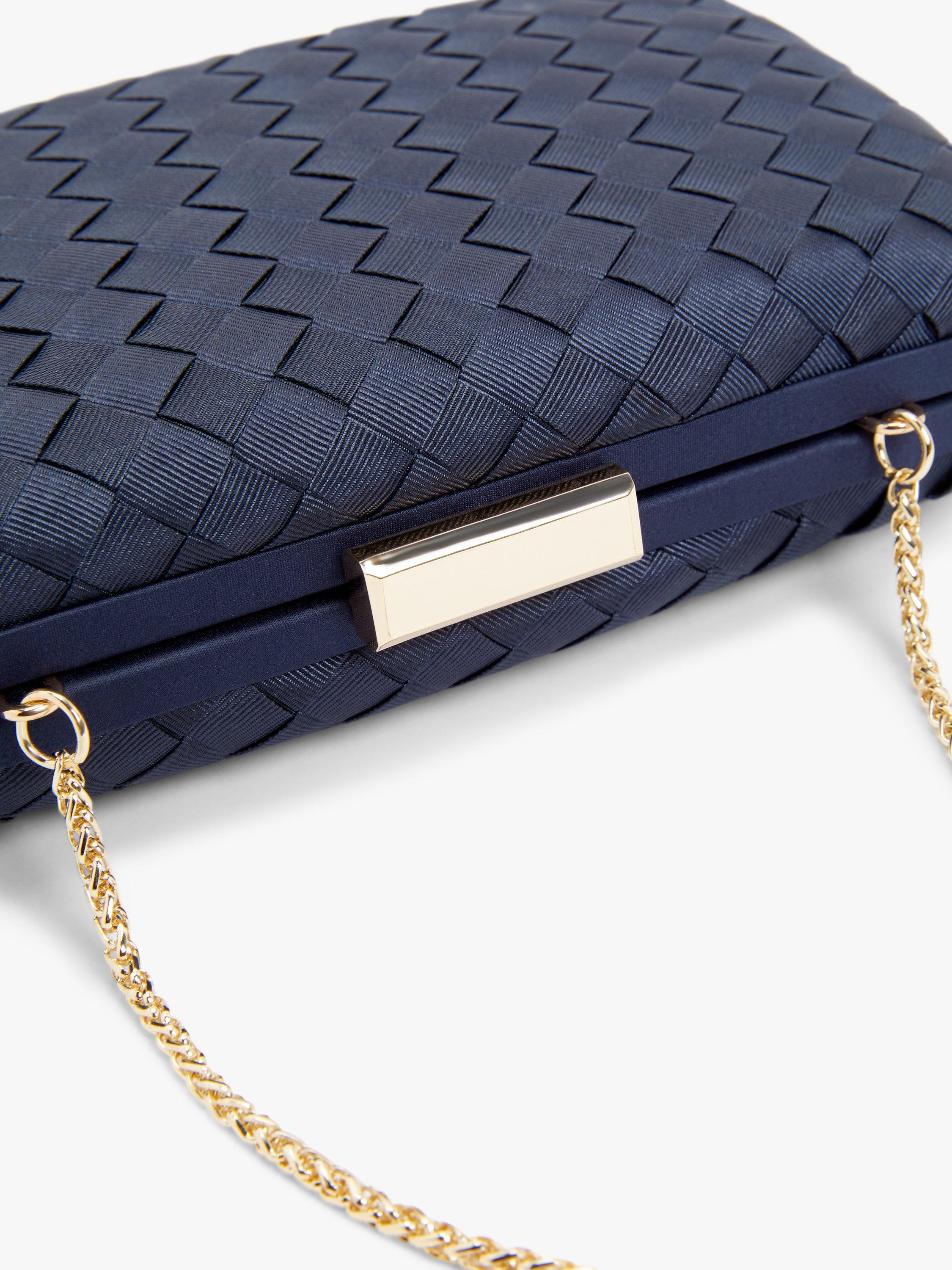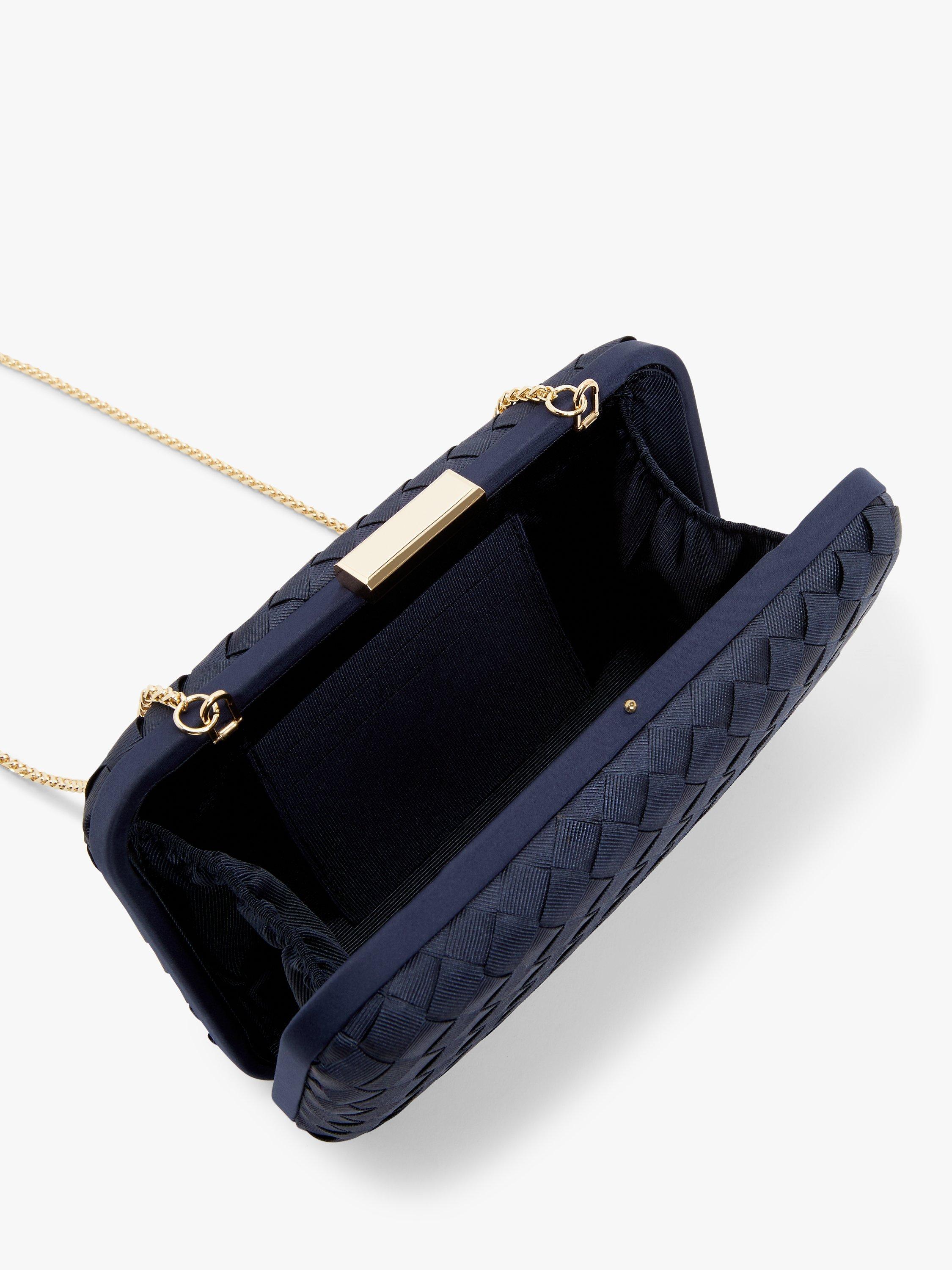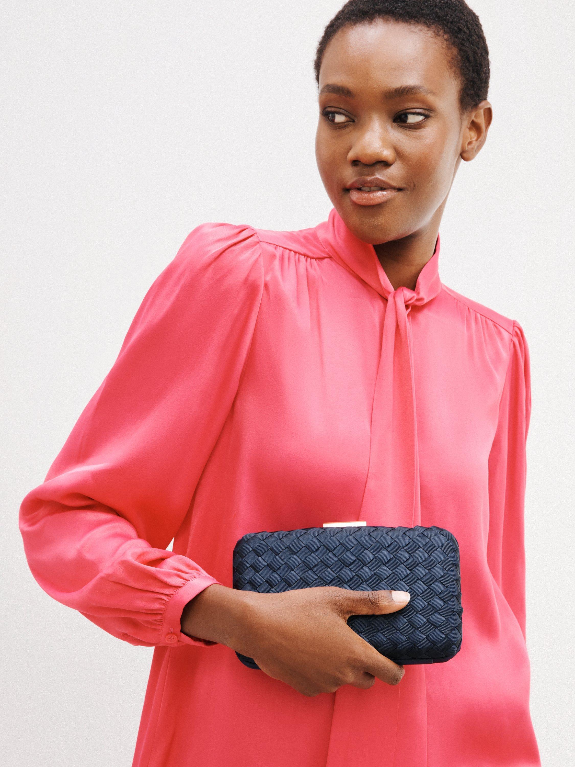 With a tactile faux silk finish, the bag has a clasp fastening that pops open to reveal a fully lined interior with room for all your going-out essentials. The gusseted design makes it easy for you to get what you need, whilst the slip pocket helps to keep things organised.