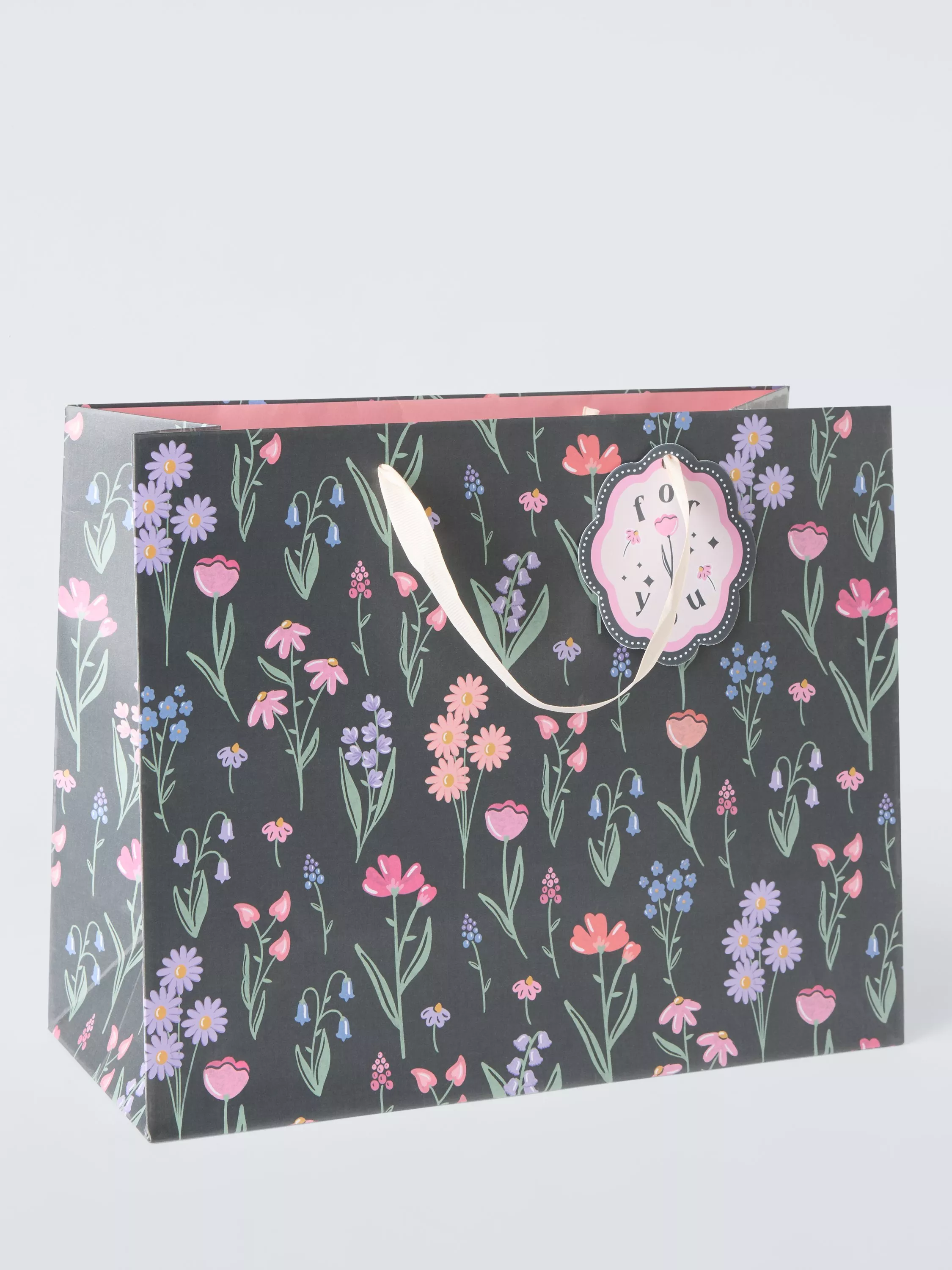 John LewisStemmed Floral Gift Bag, Navy, Medium