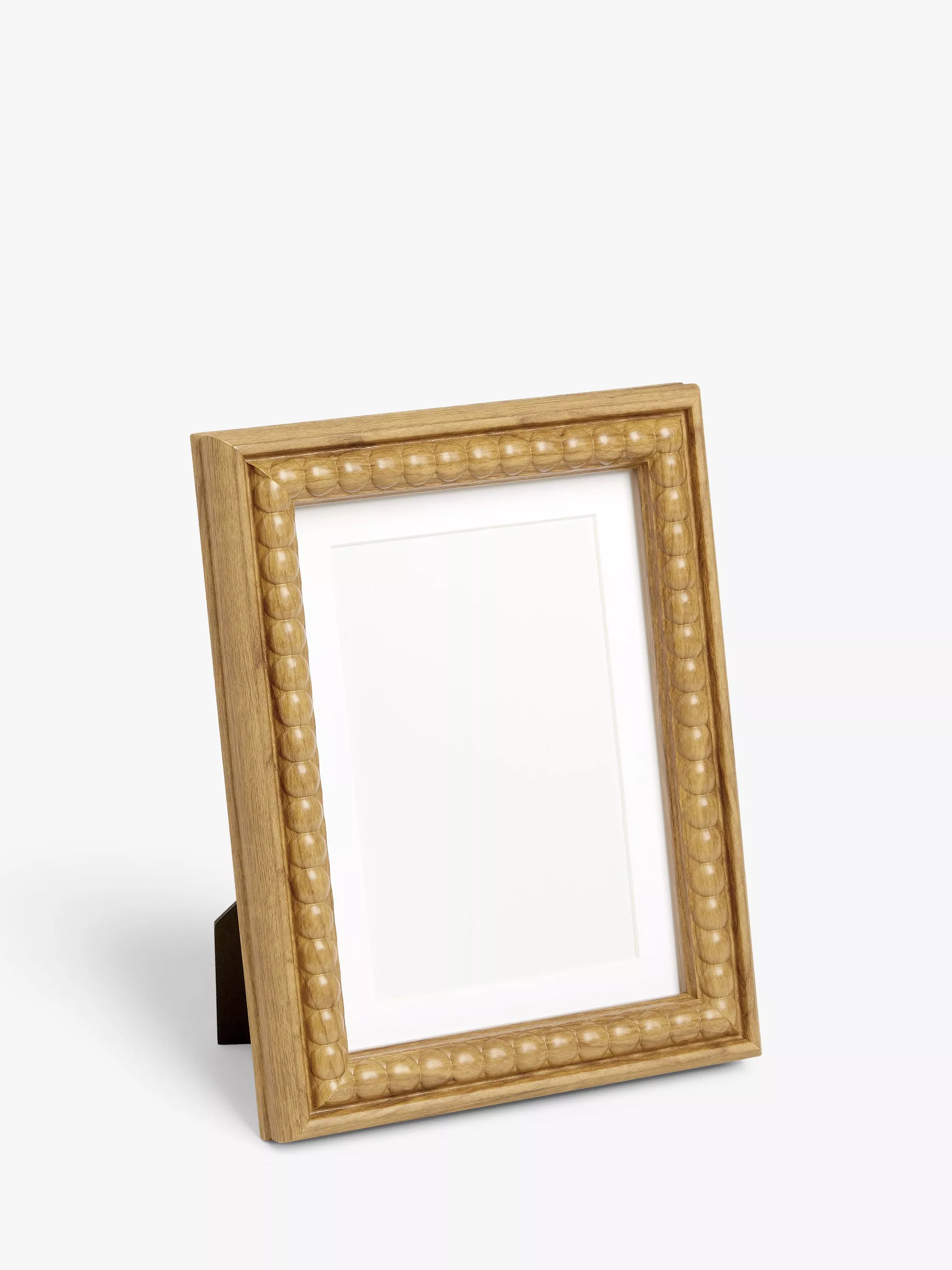 This beaded photo frame is made of recycled plastic with a classic wood-effect look. This design is glazed and a removable window mount is provided. The frame can be displayed freestanding or wall-mounted, horizontally or vertically.