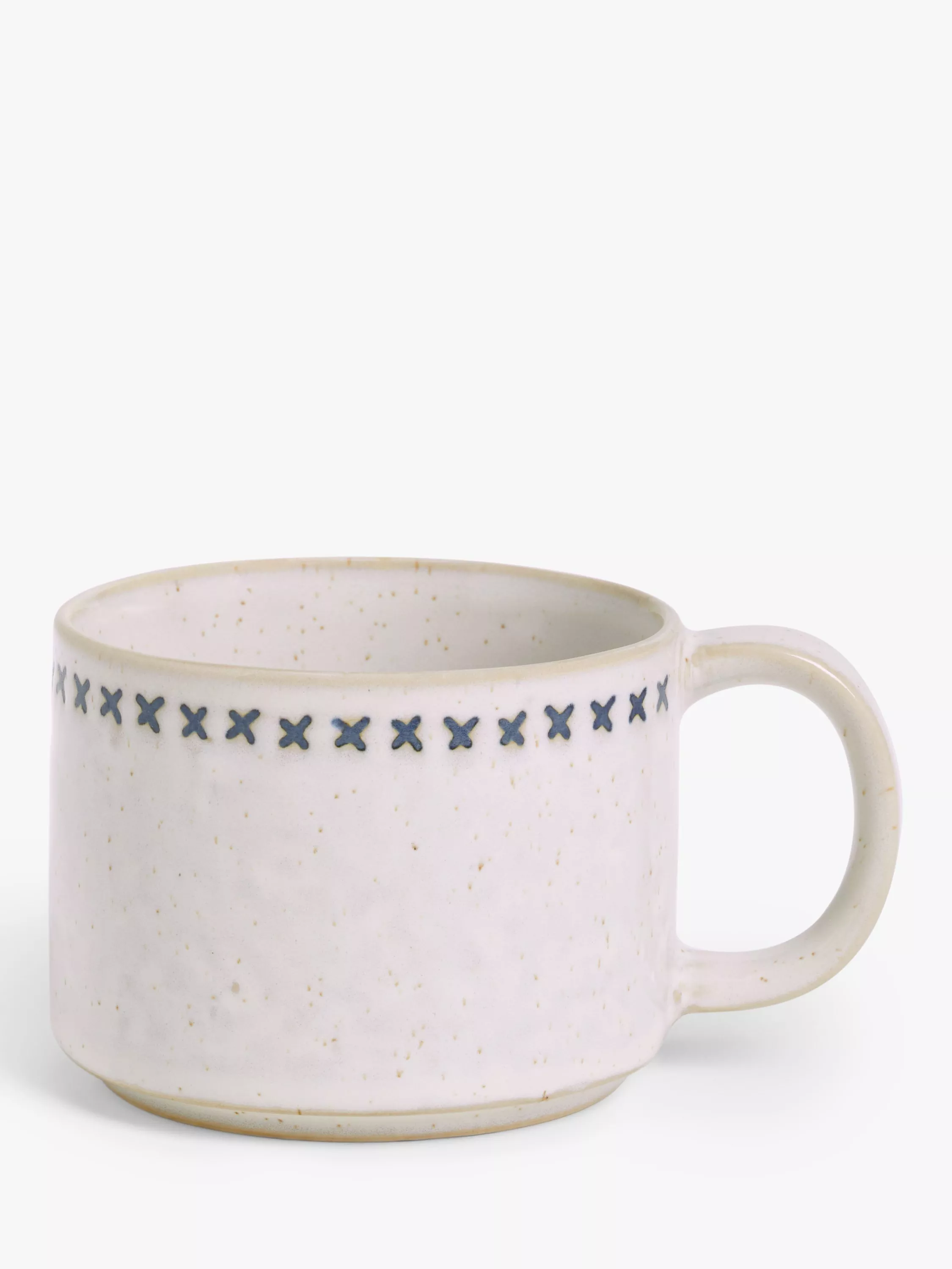 John LewisStoneware Crosses Stacking Mug, 200ml, White