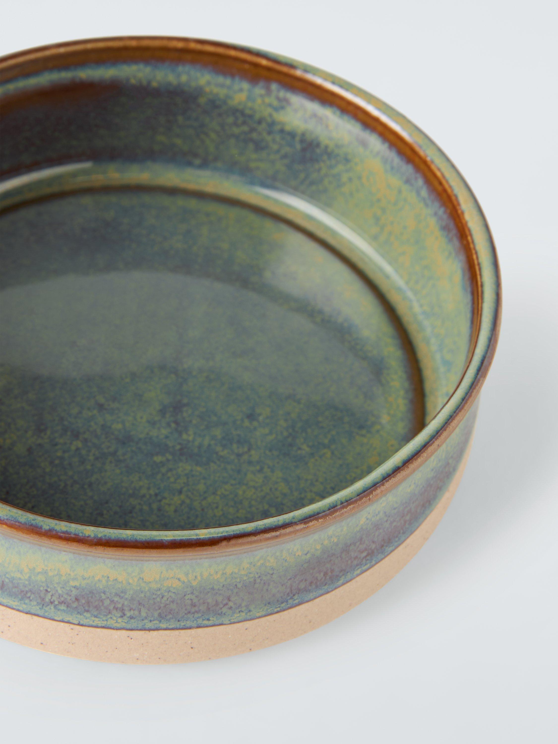 A durable, stoneware dog bowl.