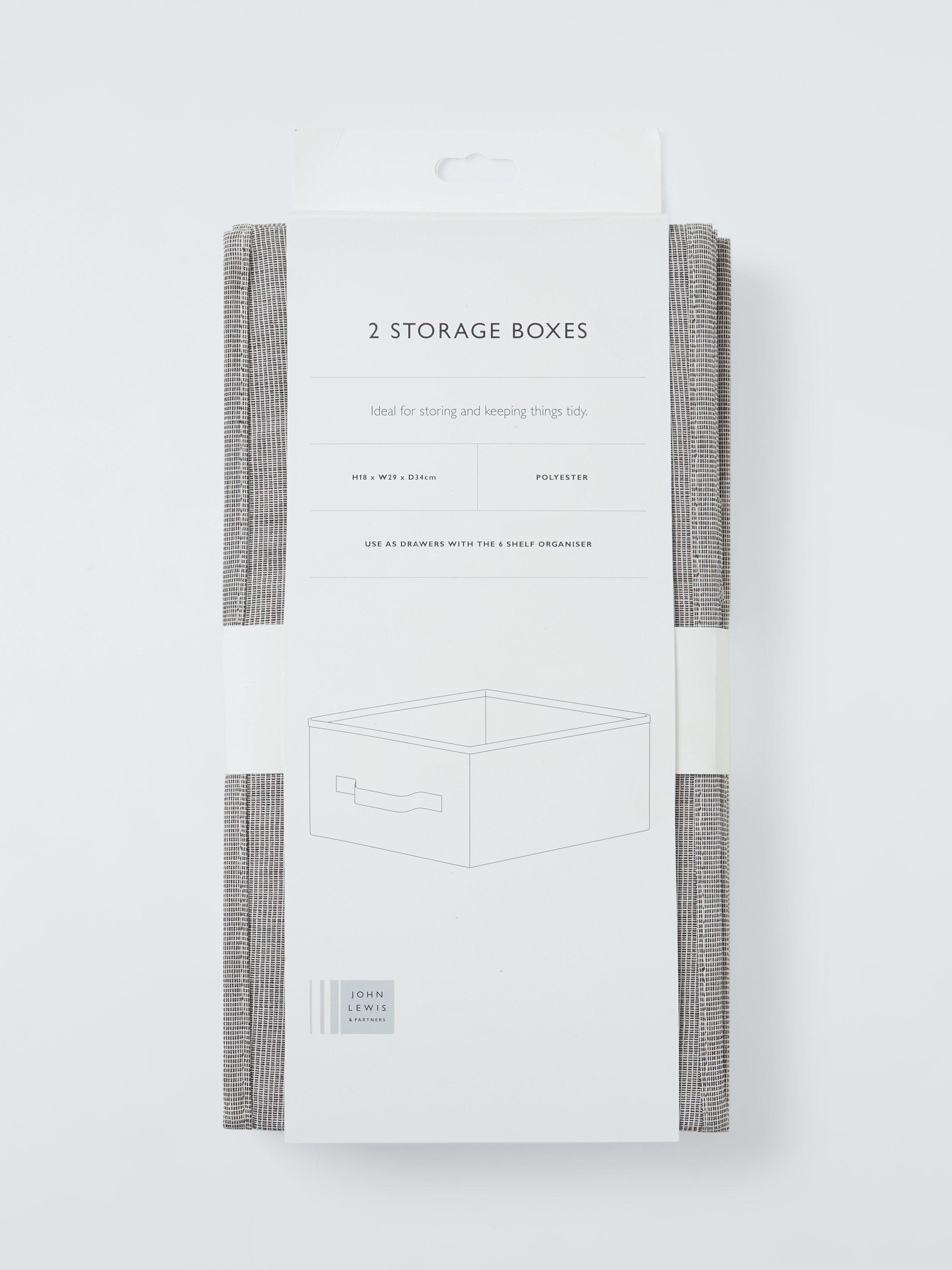 Made from polyester and recycled polyester in a versatile grey shade, these boxes simply fold out for use in - or on top of - wardrobes or in cupboards.