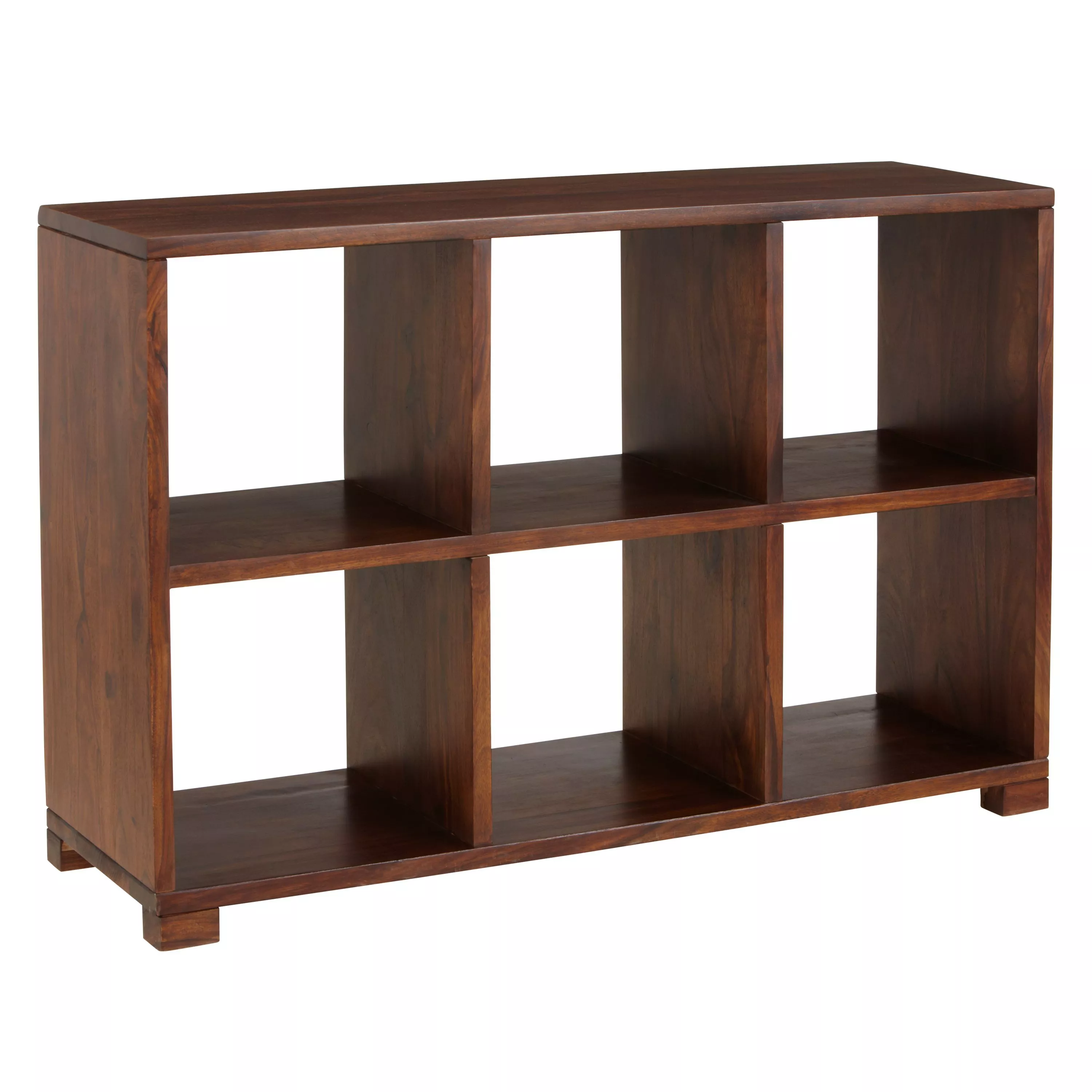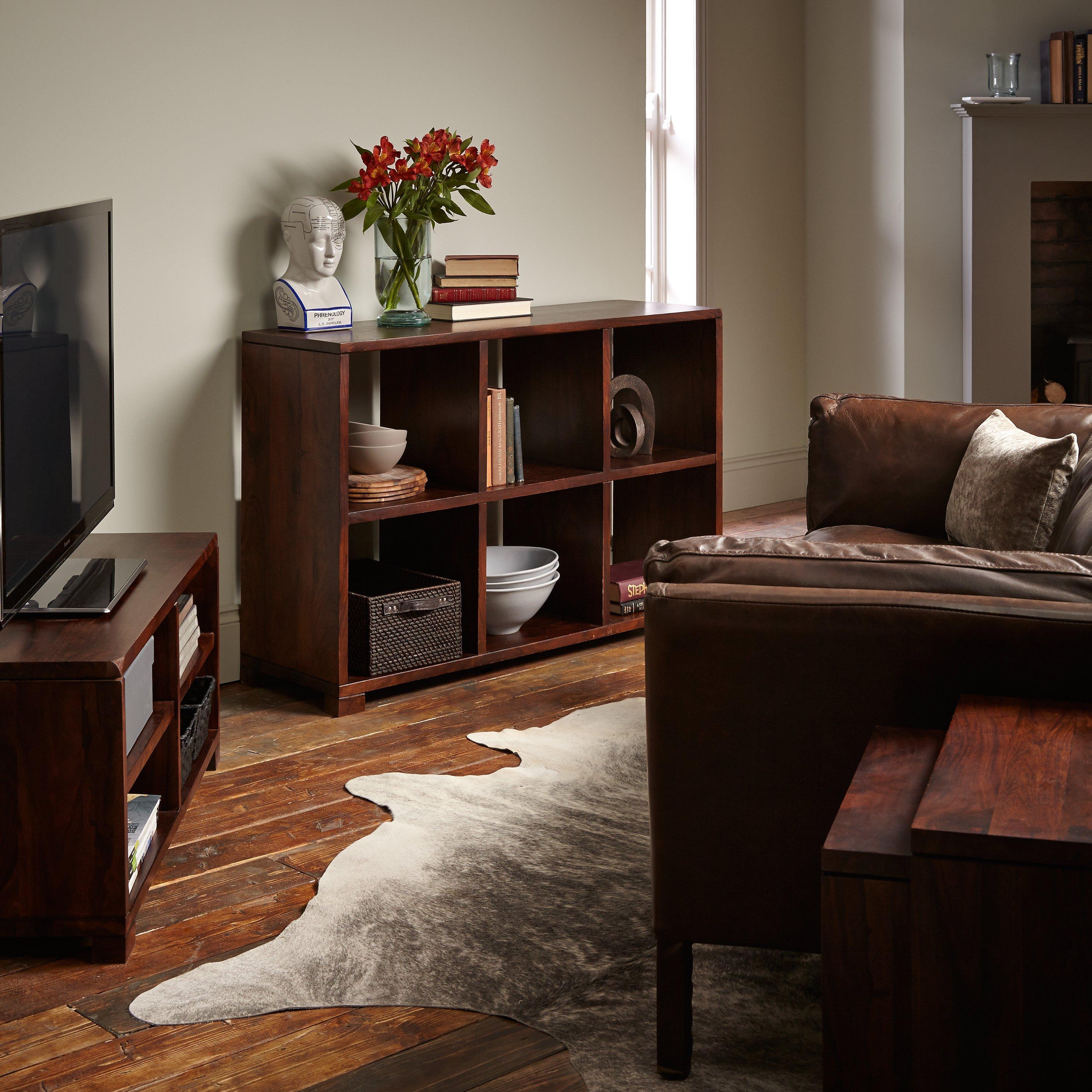 This smart low level bookcase boasts a unique and stylish look. It beautifully frames books and ornaments, bringing a natural touch to your living space.