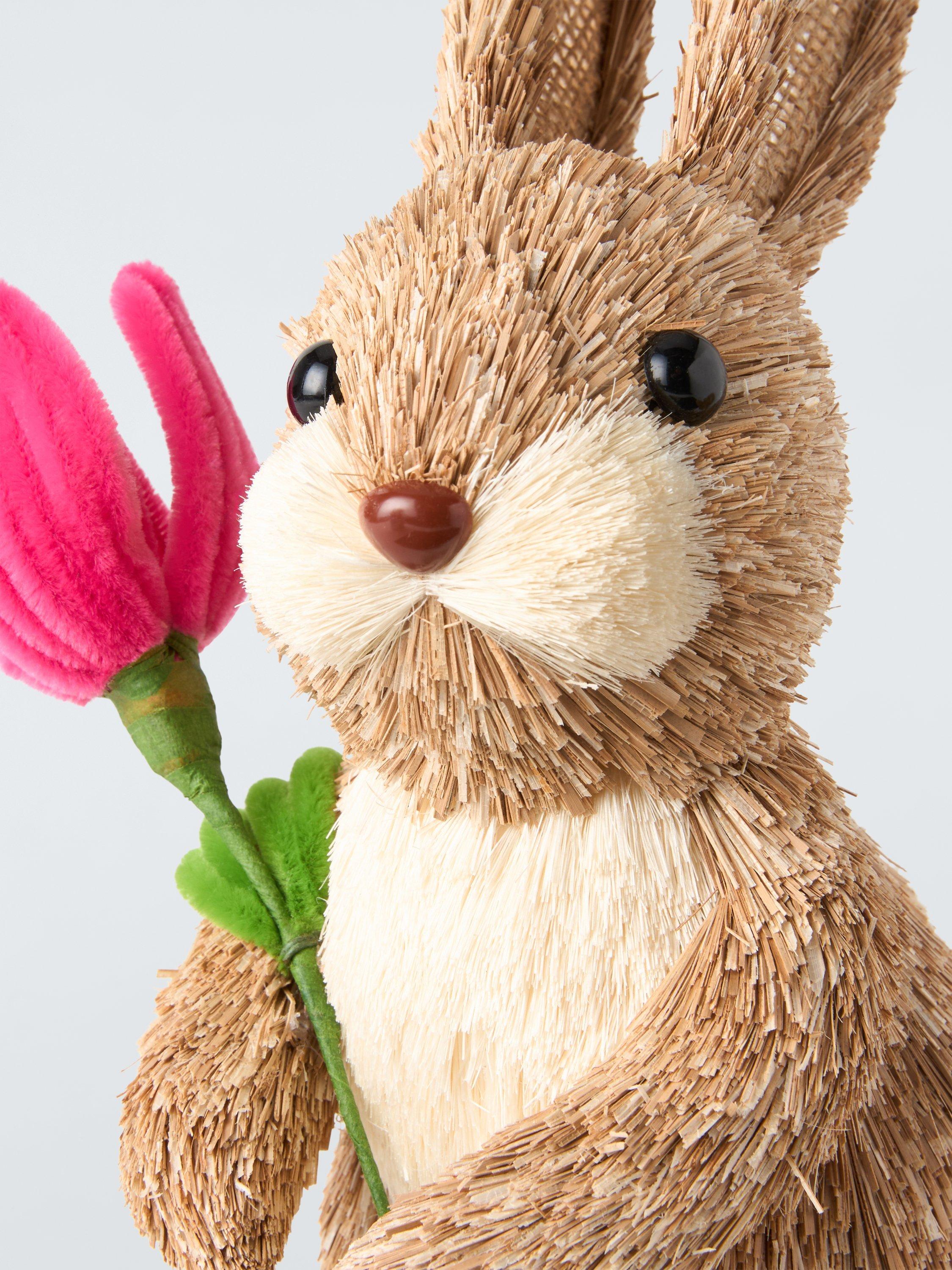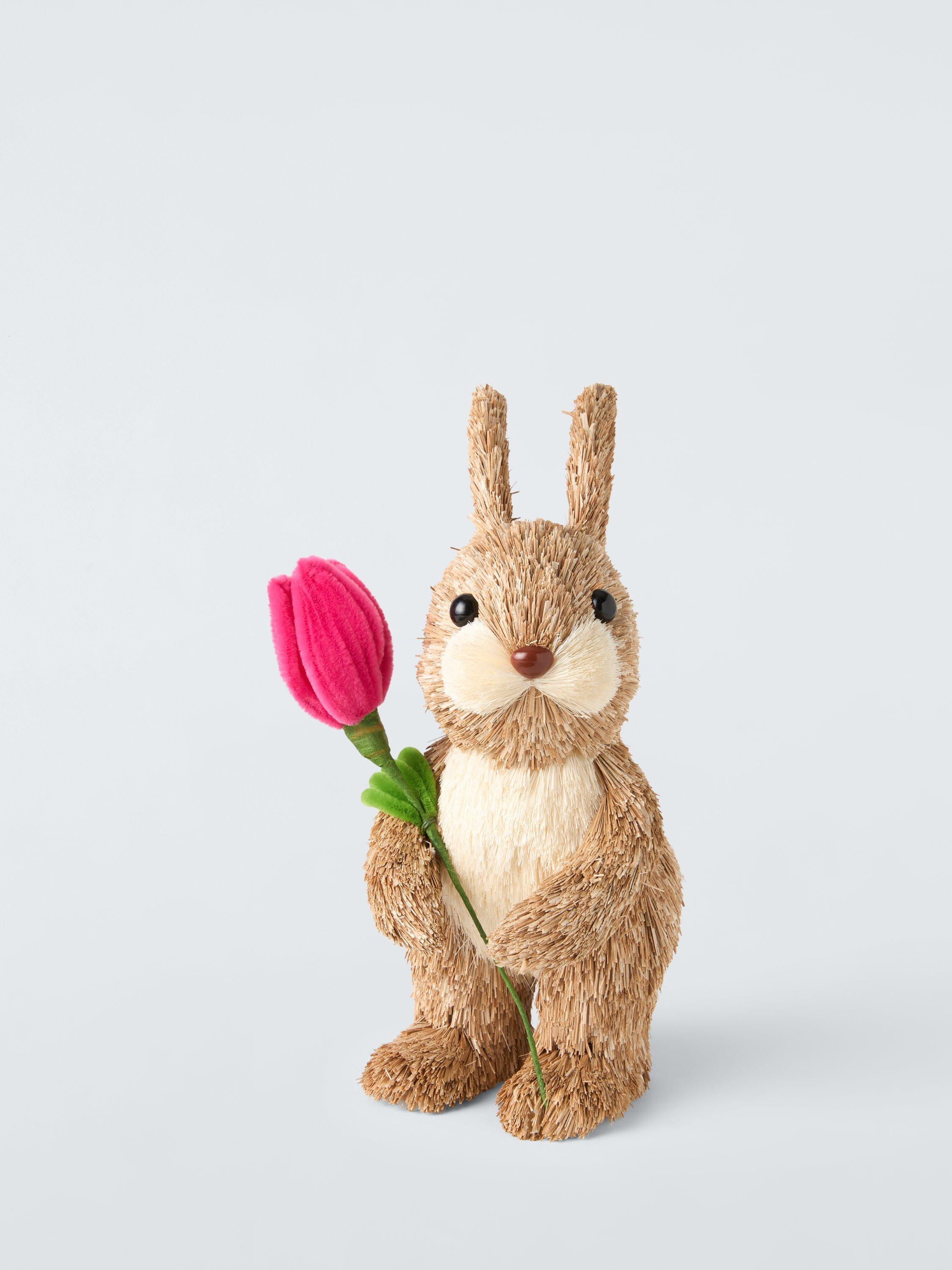Decorate your Easter home with this adorable straw bunny. She comes complete with a pretty pink tulip to welcome the spring.