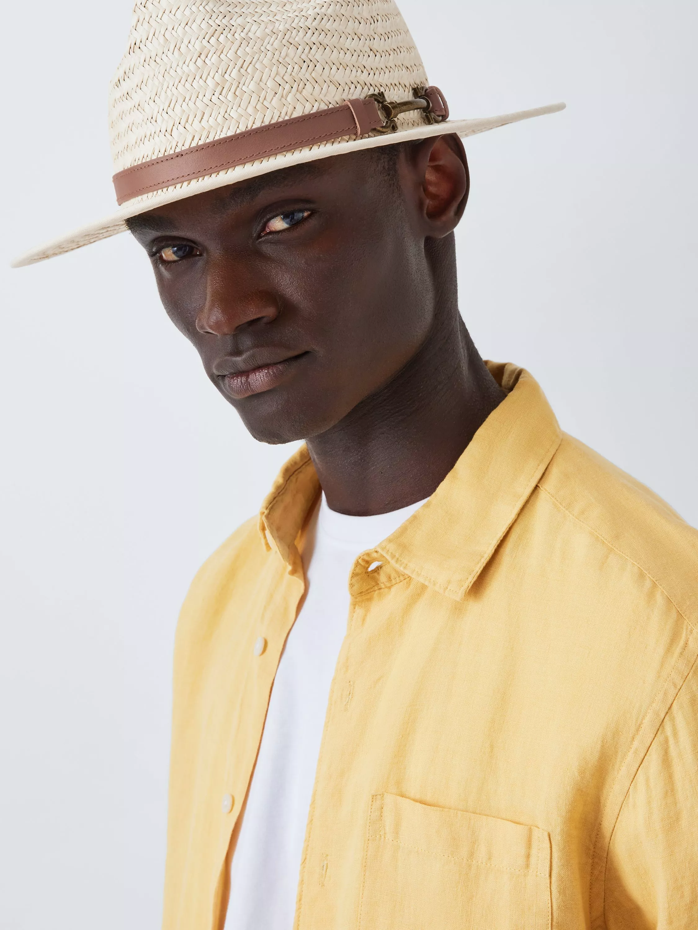 Top off that summer outfit, while keeping the head cool, in our stylish sun fedora. Woven from tough straw, it has a functionally wide brim, and contrasting hat-band.