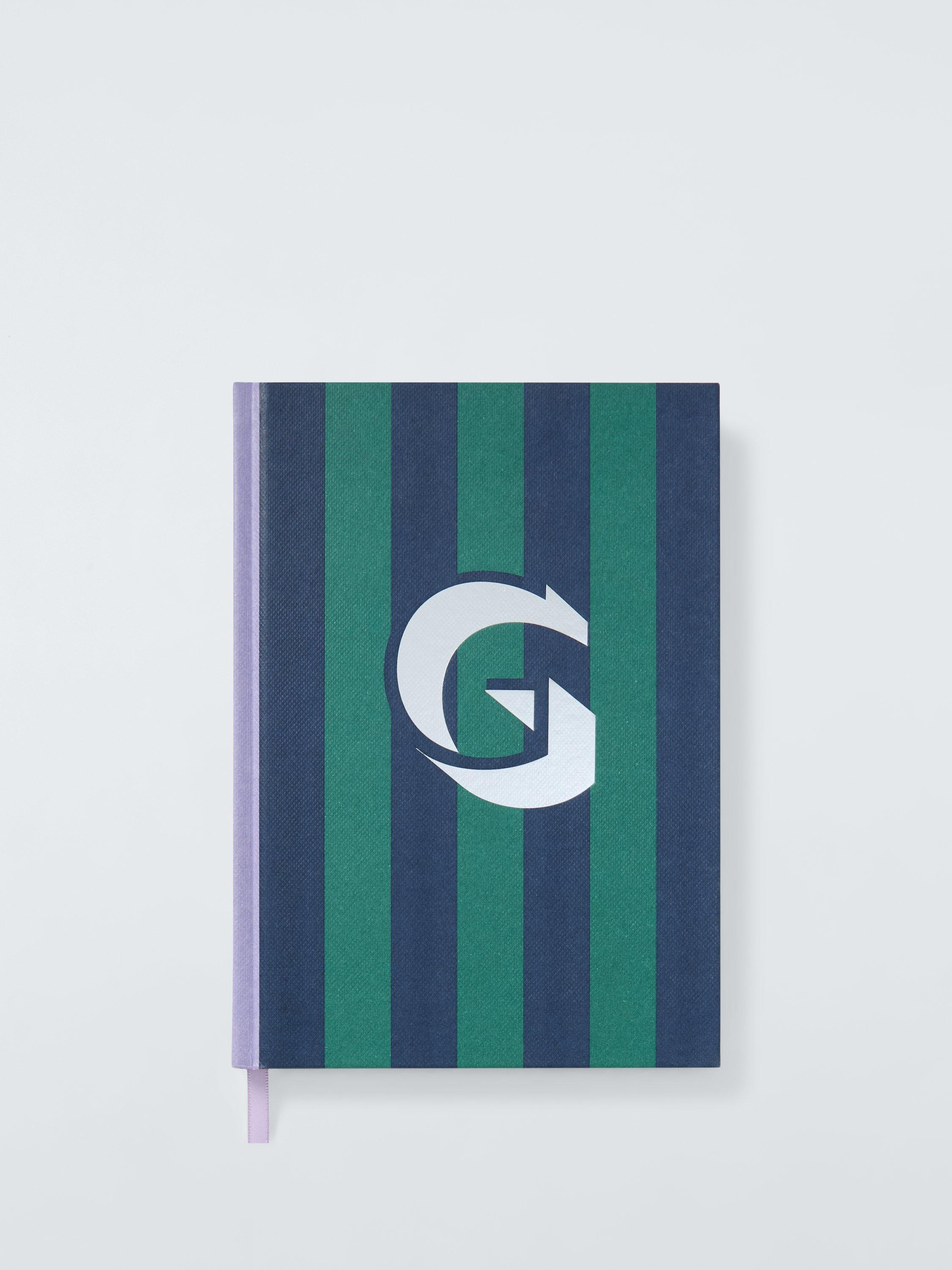 Add a touch of personal style to your stationery collection with this monogram stripe notebook.