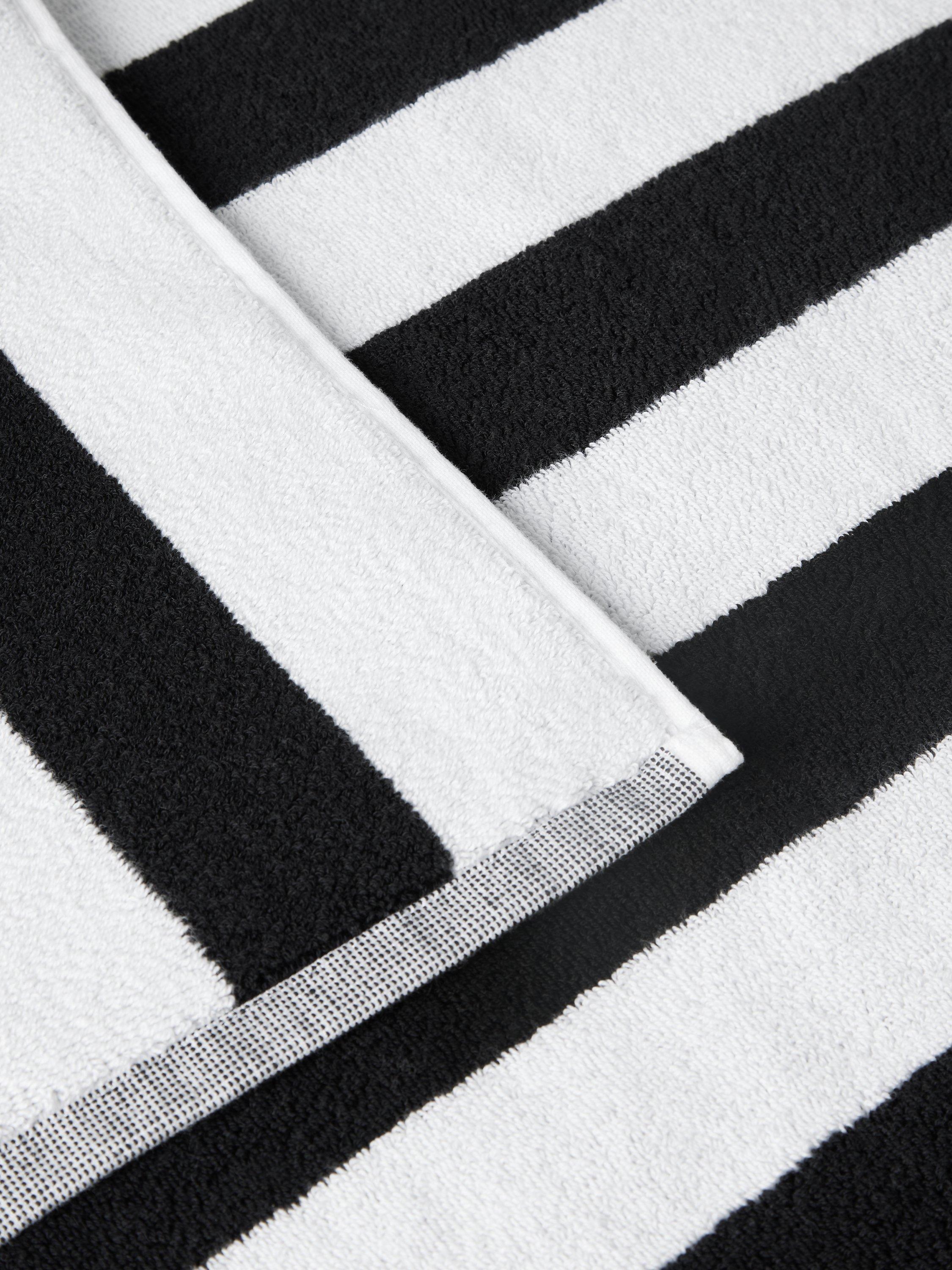 Go bold with our black and white striped bath mat. It will give a great lift to a simple, white suite and chrome fittings.