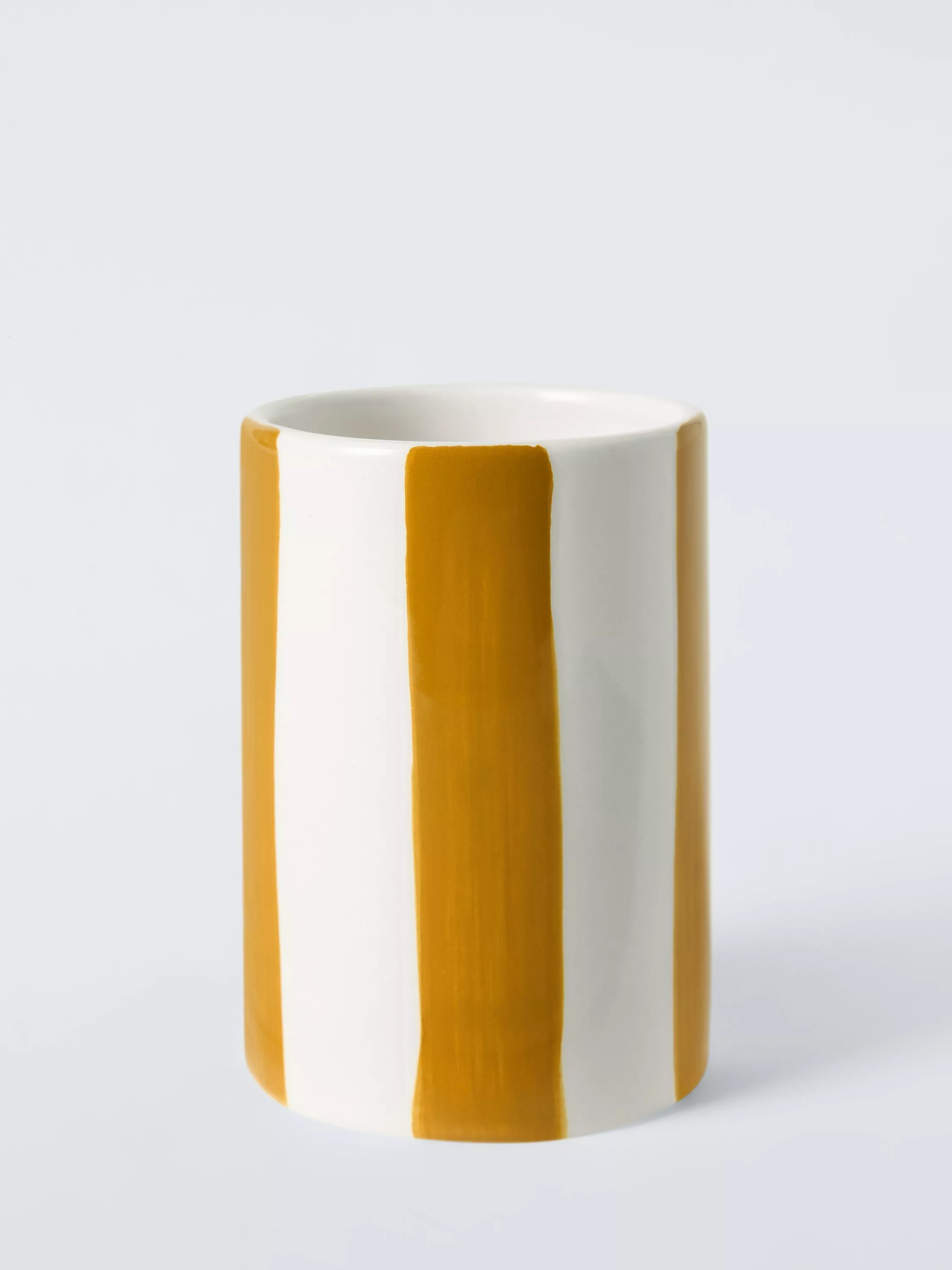 Glazed bathroom tumblers with a cheerful, hand painted coloured stripe.