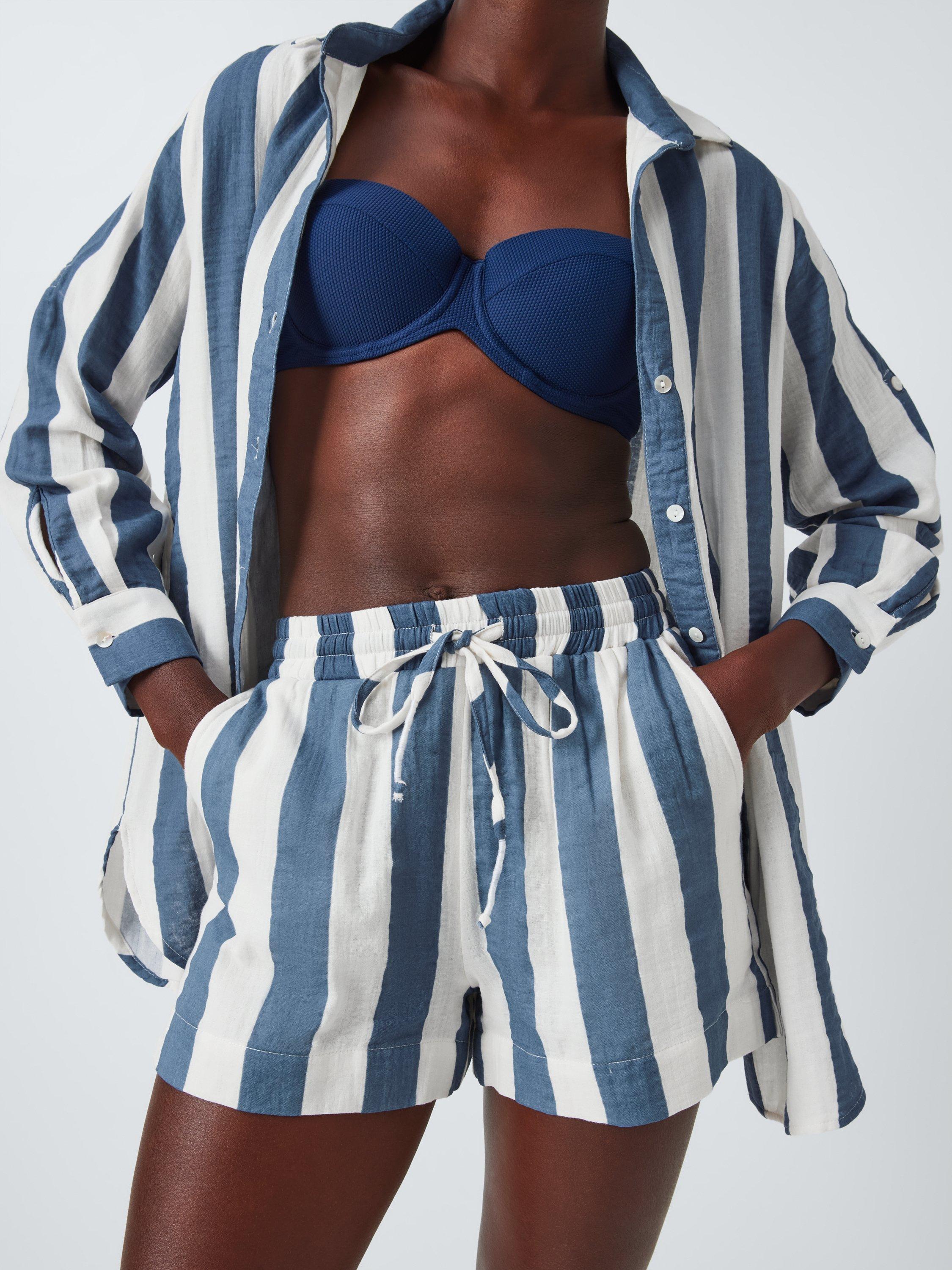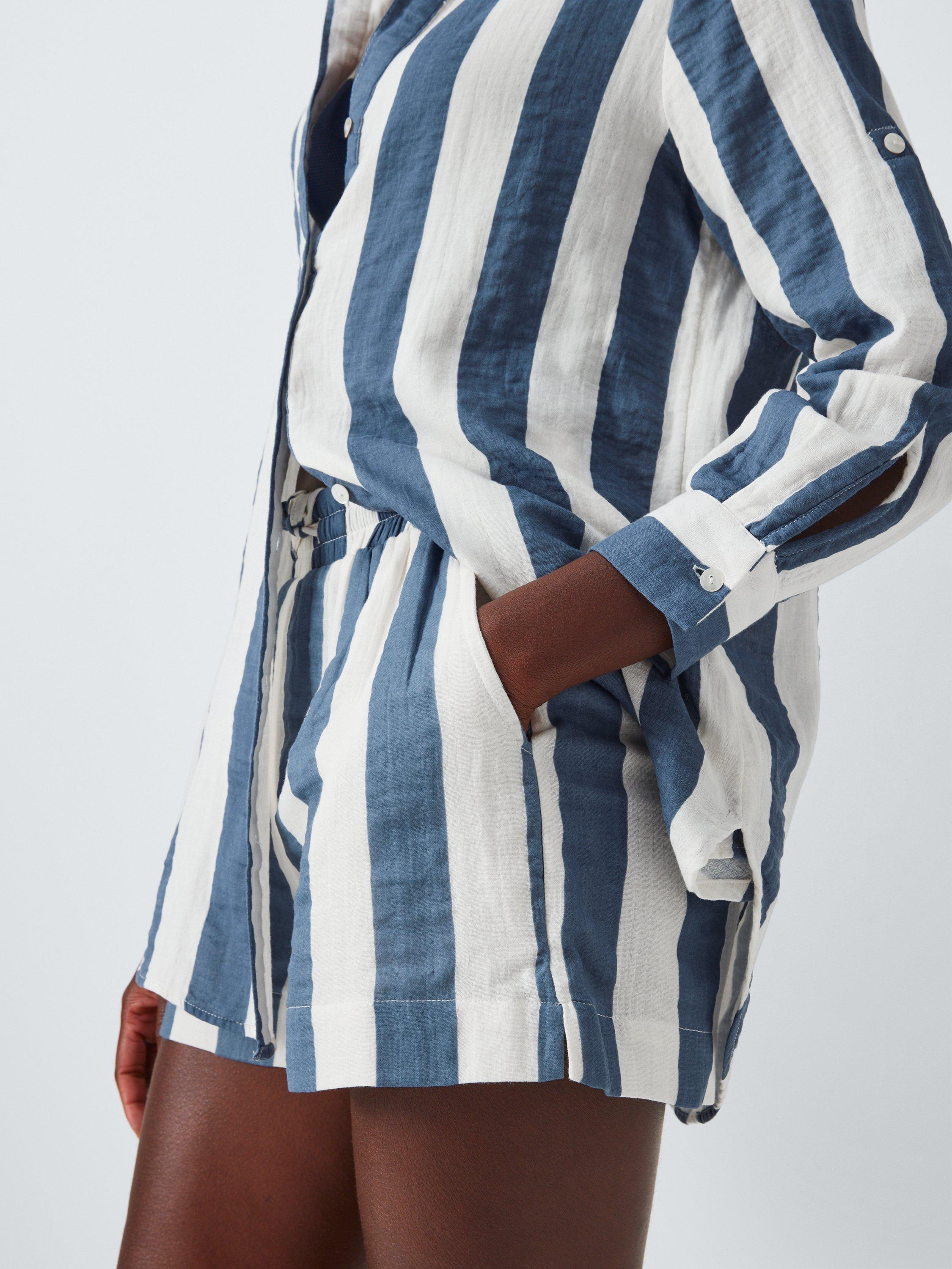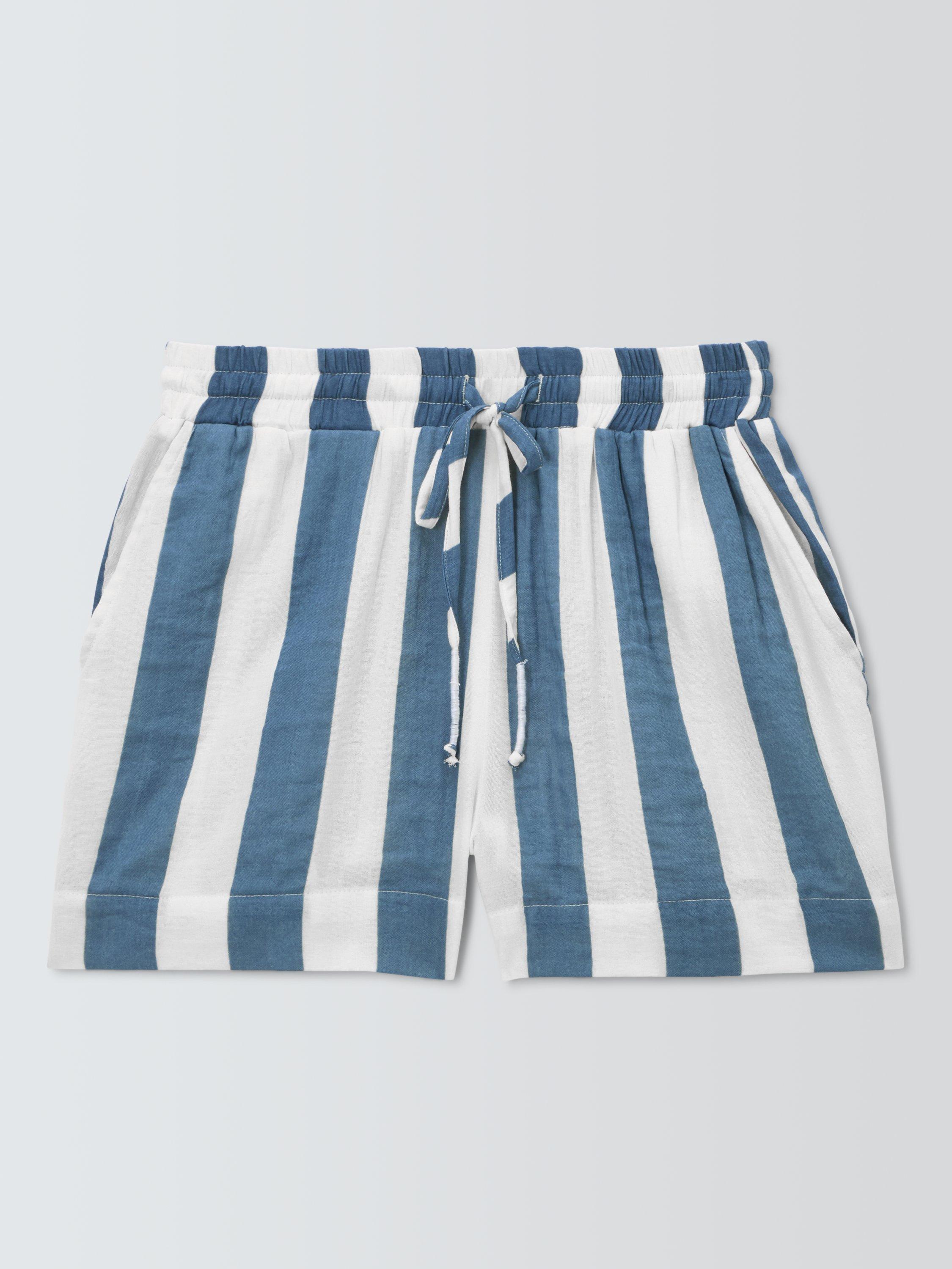 John LewisStripe Beach Shorts, White/Blue, S