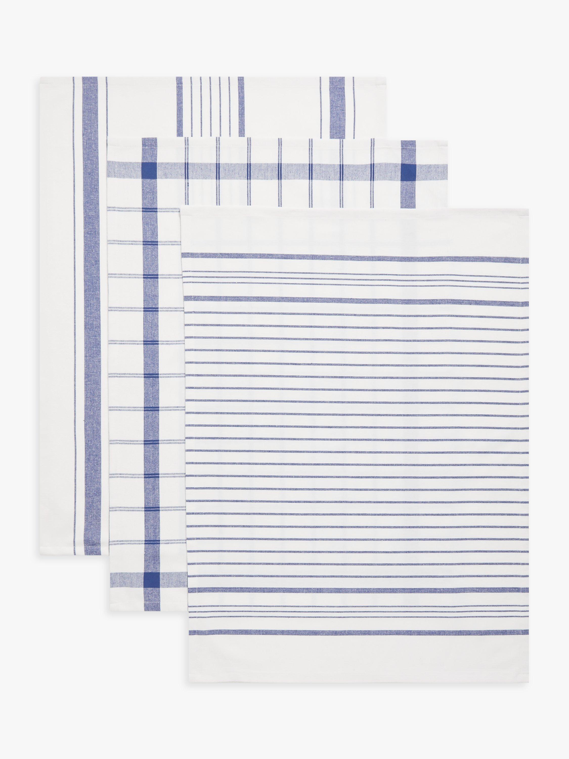 A set of tea towels in three assorted stripe and check designs. These pure cotton tea towels are loved for their absorbency, making drying up less of a chore. They're also machine washable for easy cleaning. Coordinate with other kitchen textiles in this range.
