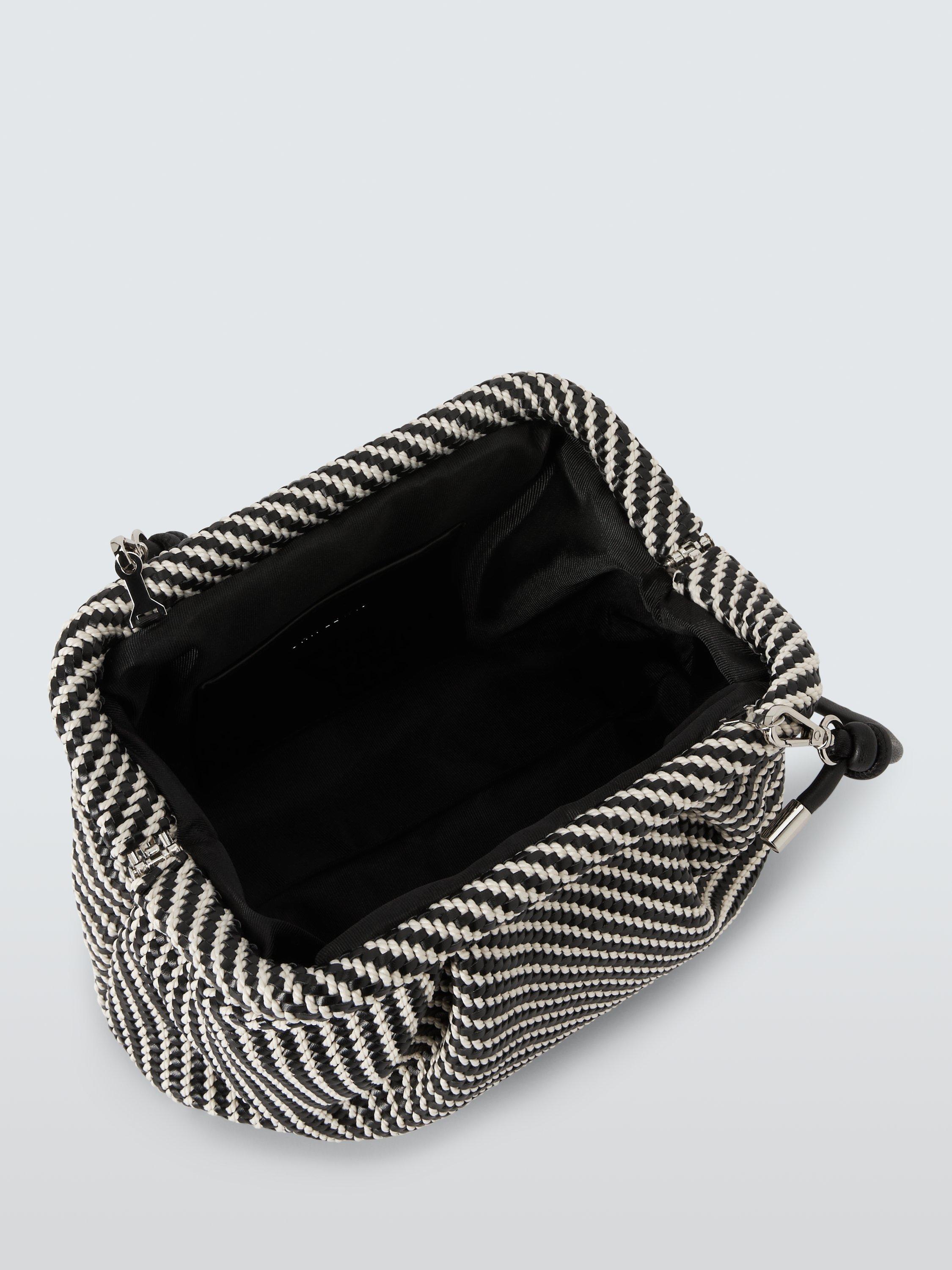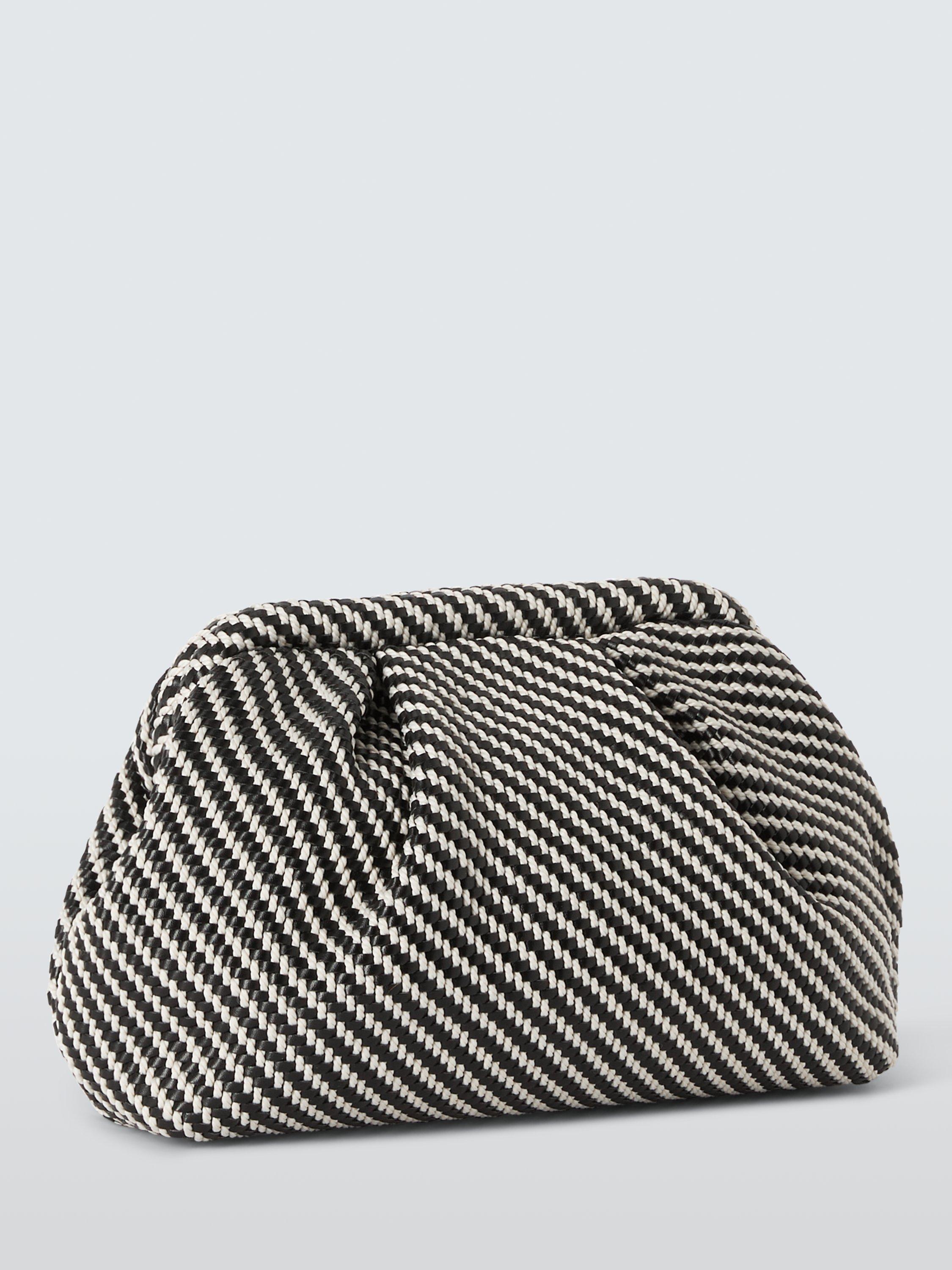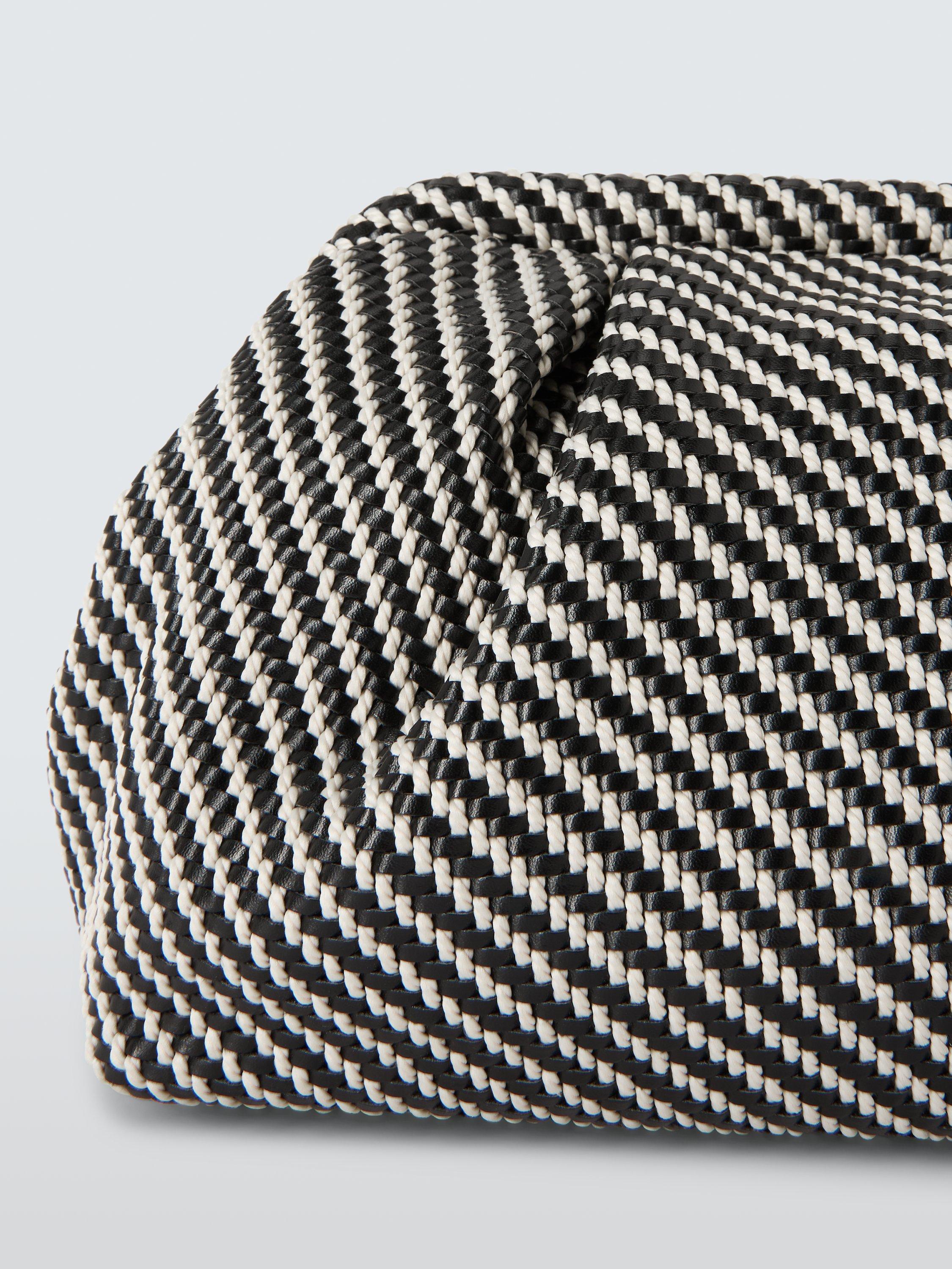 Hold it on your hand or go hands-free with the knotted artisinal-style strap on our striped clutch bag. With a clear black and white pattern, this style will add texture and interest to your outfit and it will also hold its shape when you put it down.