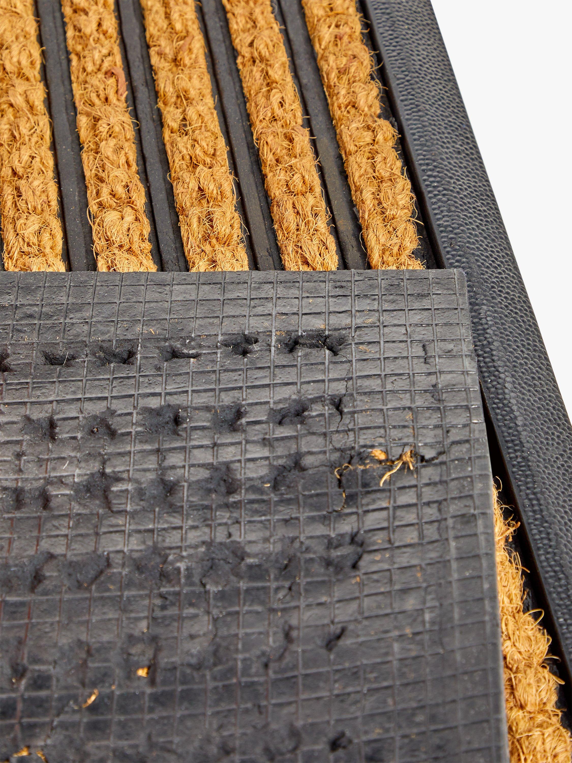 This hard wearing mat combines traditional absorbent coir with strong rubber to give an excellent scraping surface for muddy shoes & boots. Suitable for indoor use or for use in sheltered outdoor areas, it's a great way of preventing dirt from entering your home.