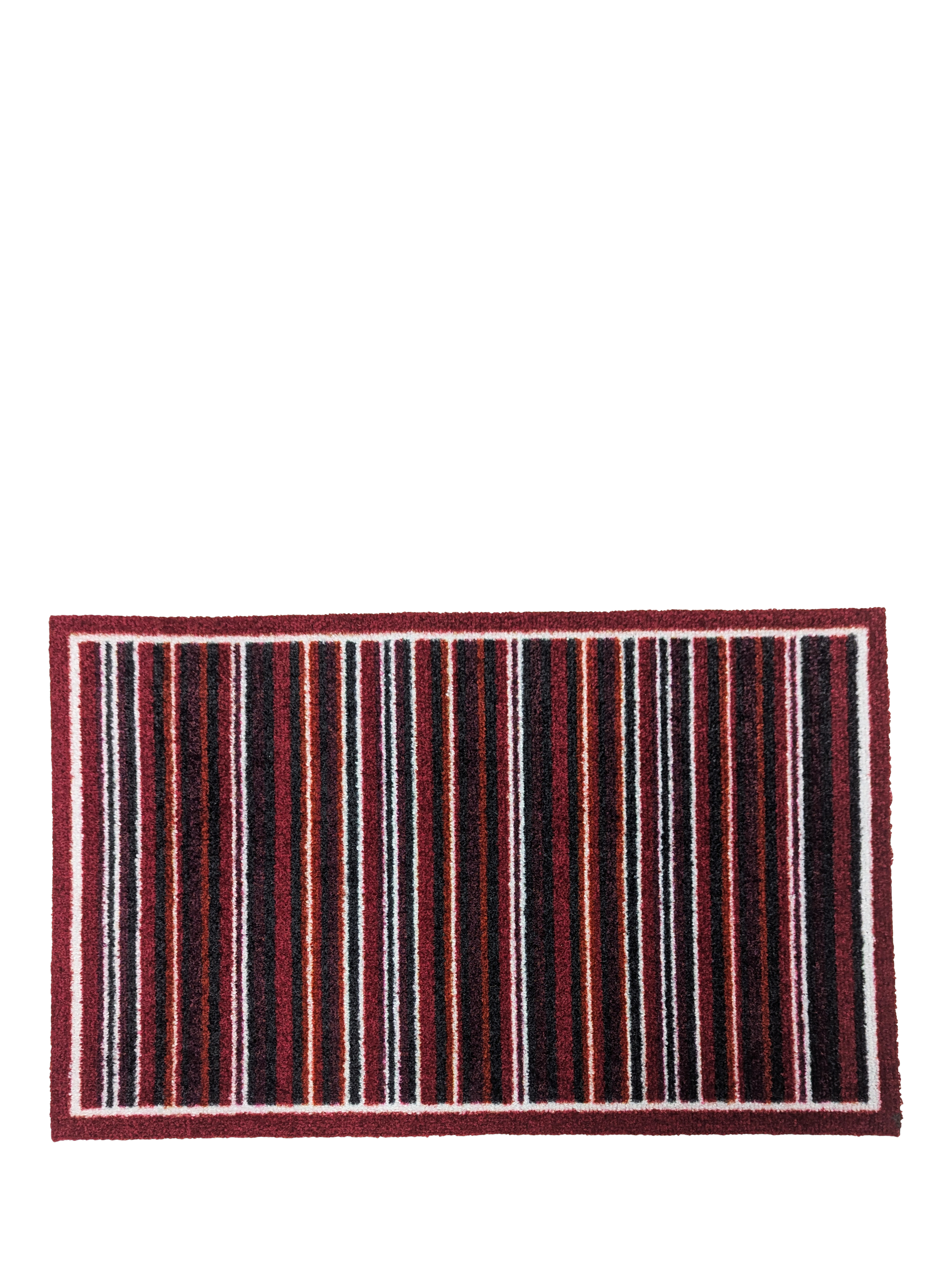 This stylish stripe doormat has a polyester pile with a heavy duty recycled rubber crumb backing. Lays flat stays flat. Made in the UK. Suitable for indoor use. Machine washable at 30 degrees.