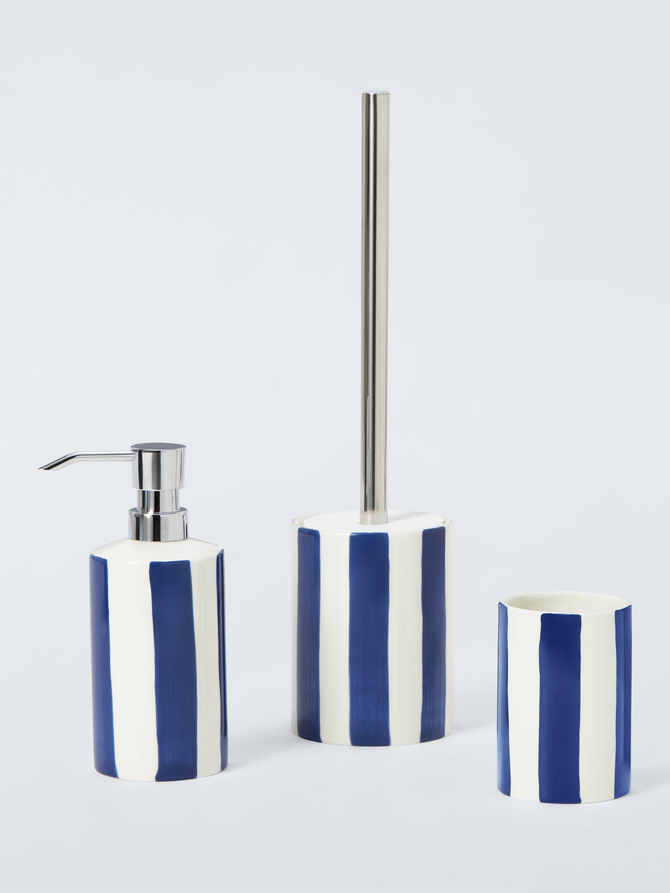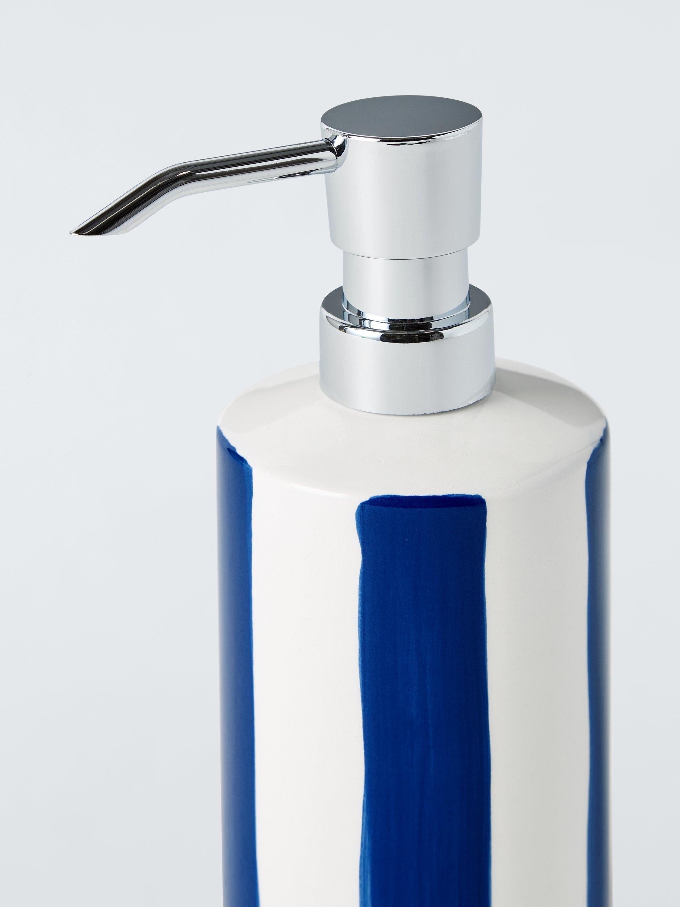 This ceramic soap dispenser has a colourful hand painted stripe to brighten up any bathroom or en suite.