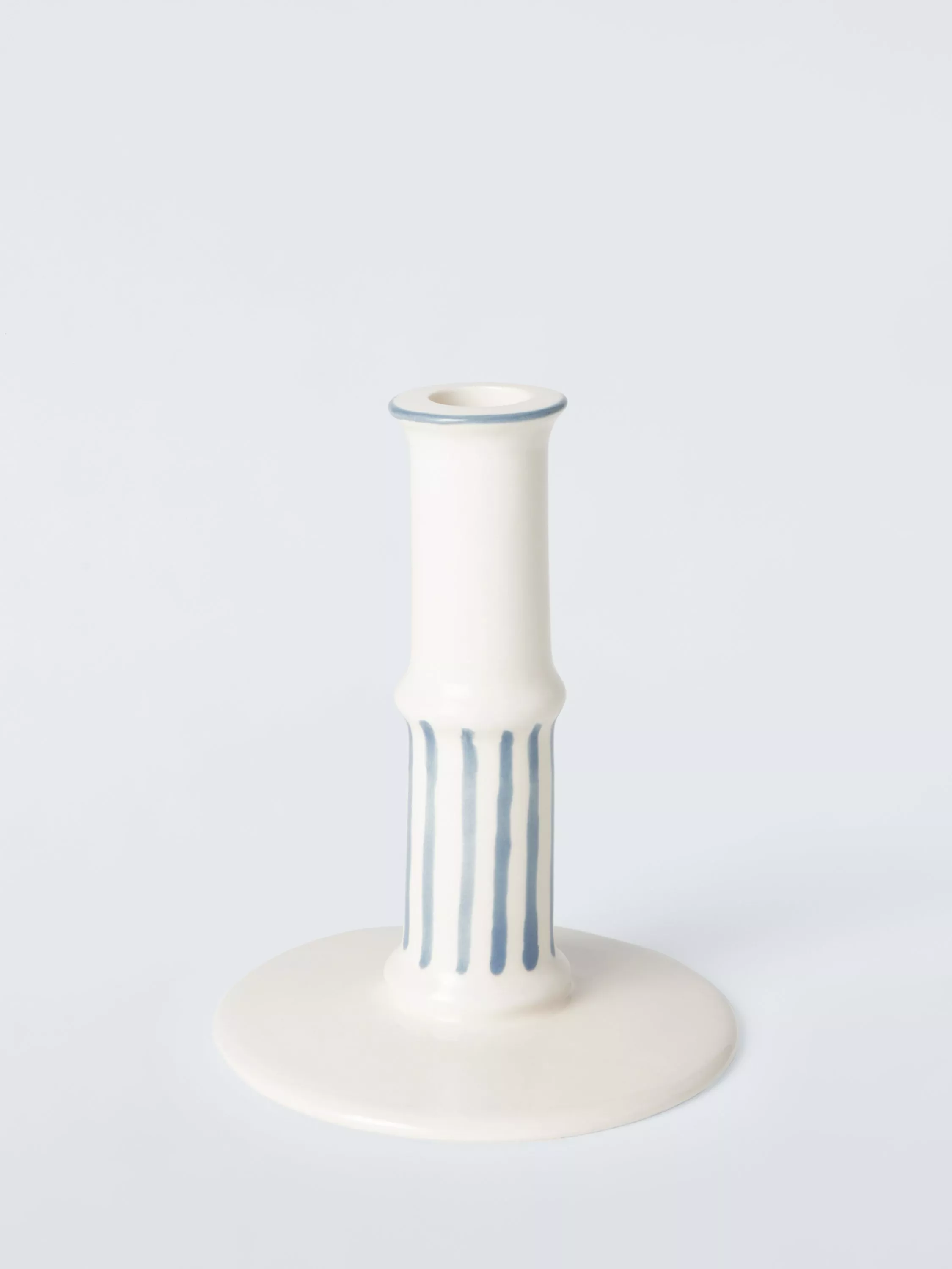 A beautiful stoneware candle holder in a classic stripe design.