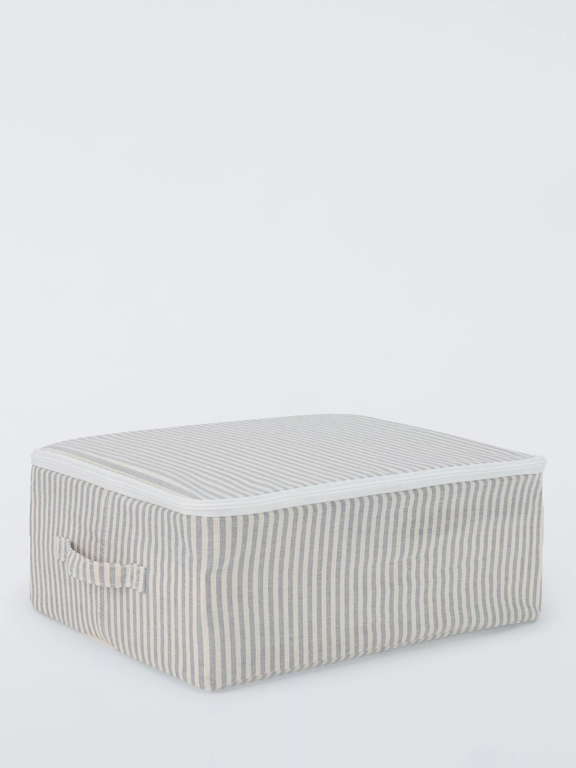 John LewisStripe Zipped Storage Bag, Grey/Natural, Medium