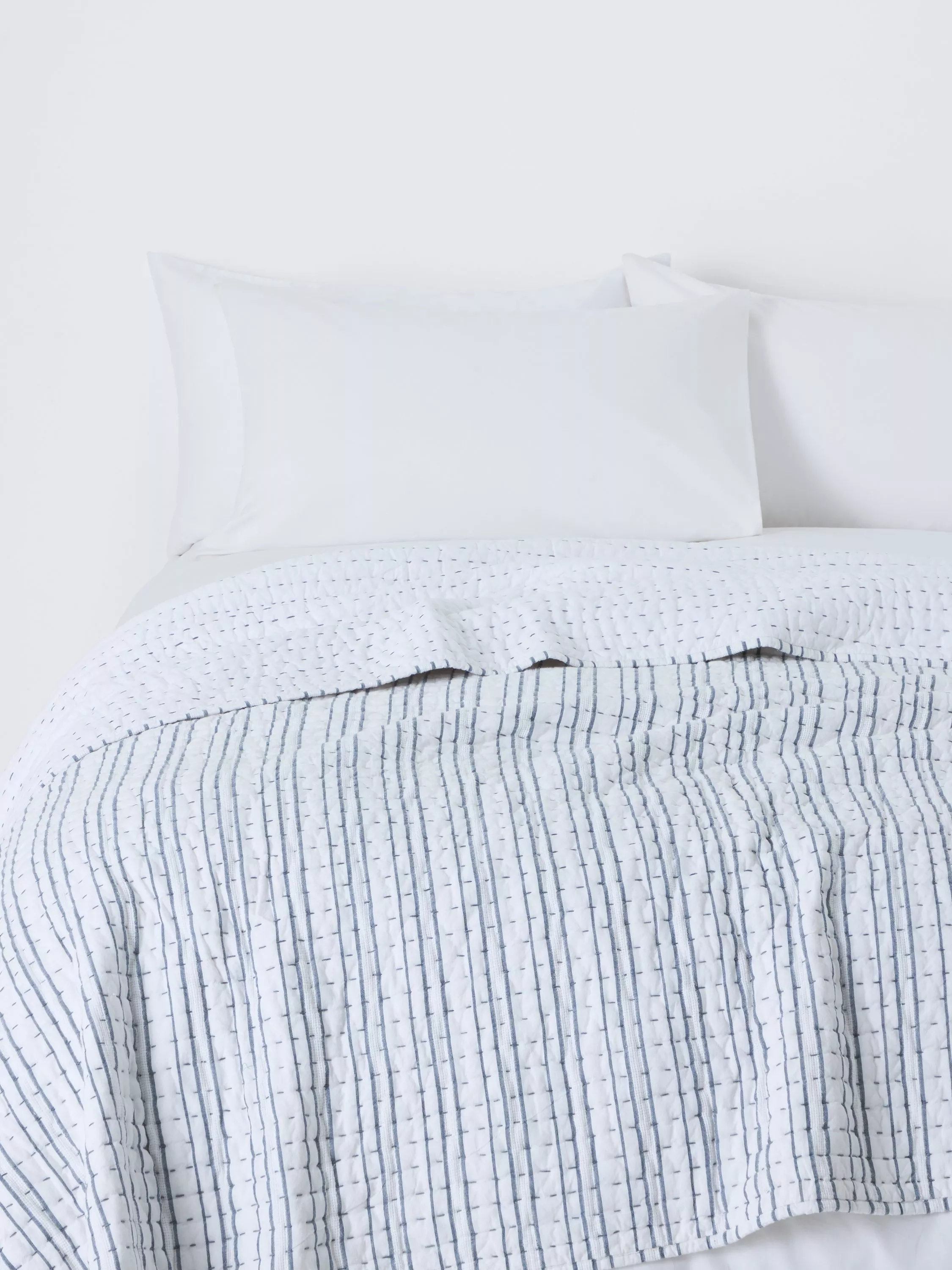 John LewisStriped Cotton Bedspread, Blue