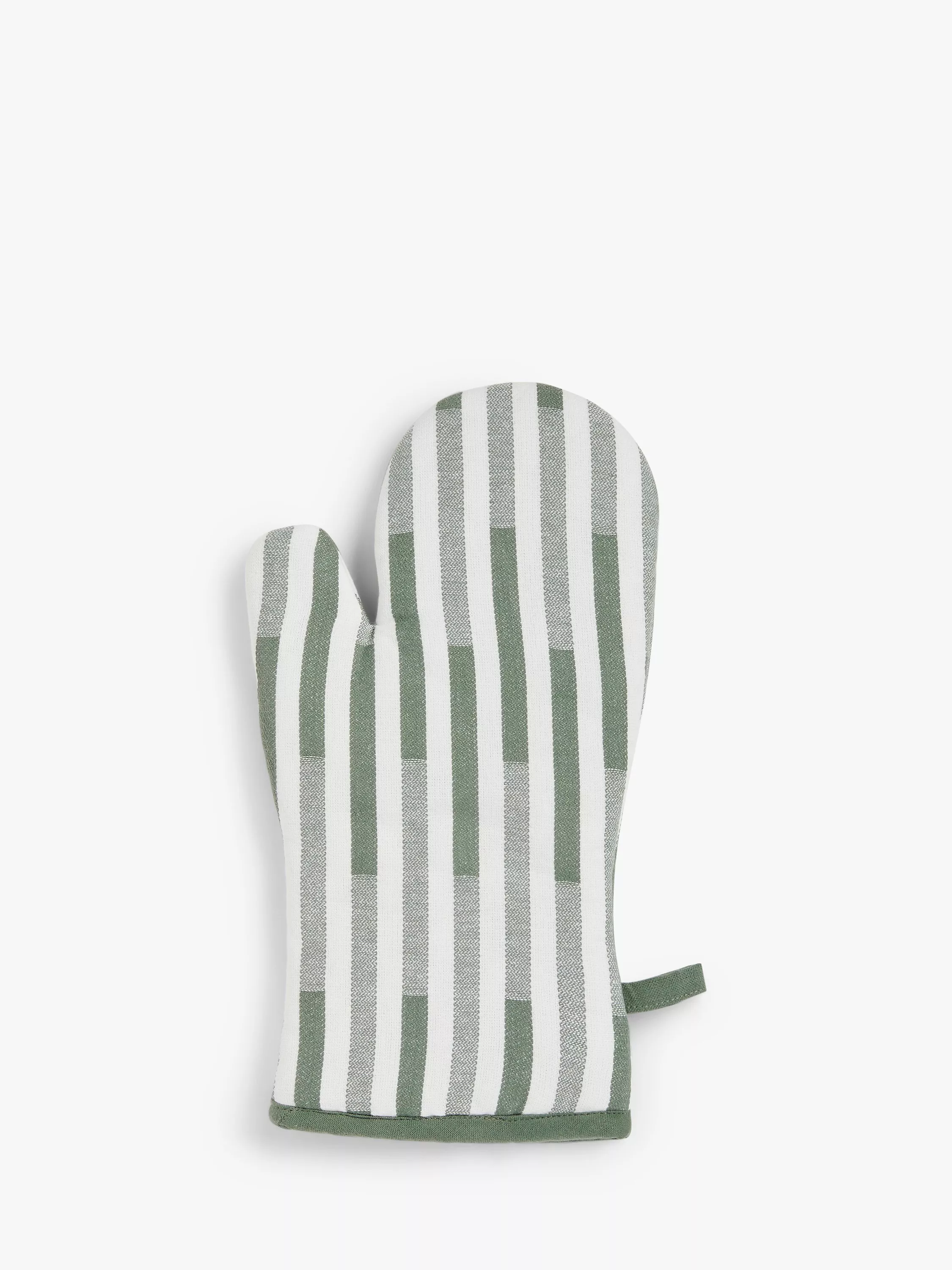 Update your cooking look with this oven mitt covered in a contemporary striped pattern. Made from pure cotton, it's machine washable for easy cleaning and has a hanging loop for kitchen storage. Coordinate with our Staggered Stripe kitchen textiles to match.