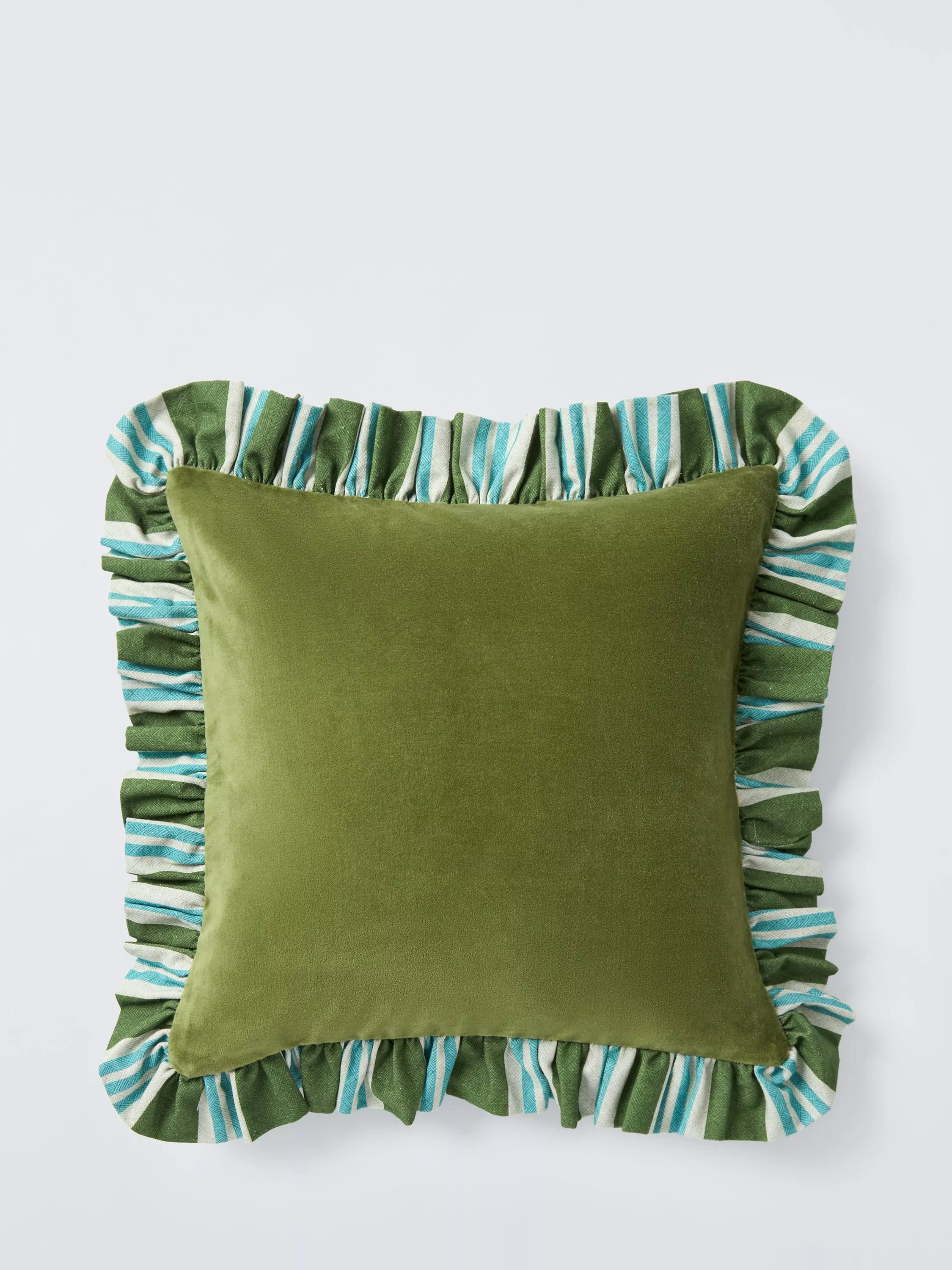 Square cushion with a decorative striped frill. It combines a generous feather filling with a soft cover to provide maximum comfort.
