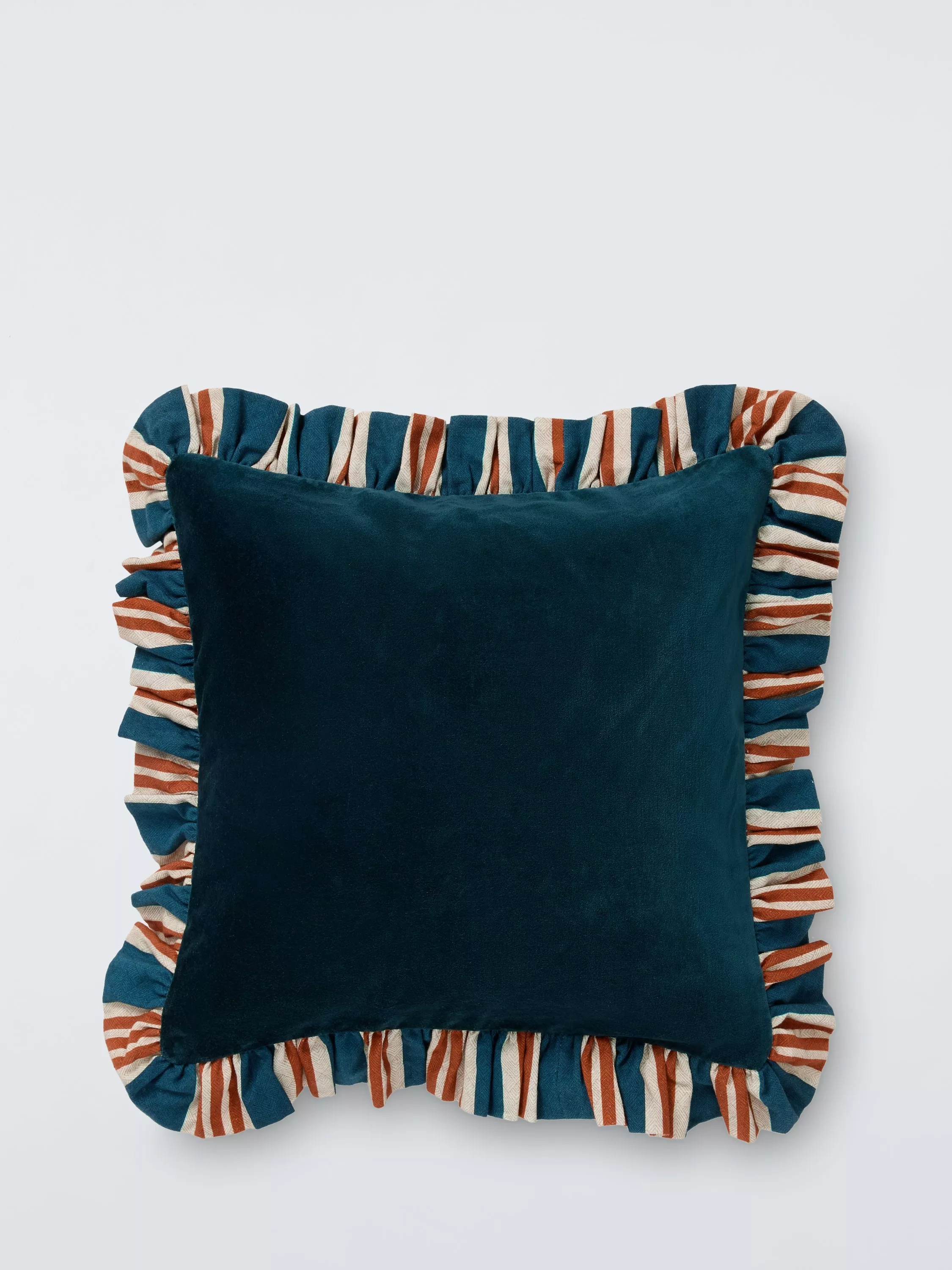 Square cushion with a decorative striped frill. It combines a generous feather filling with a soft cover to provide maximum comfort.