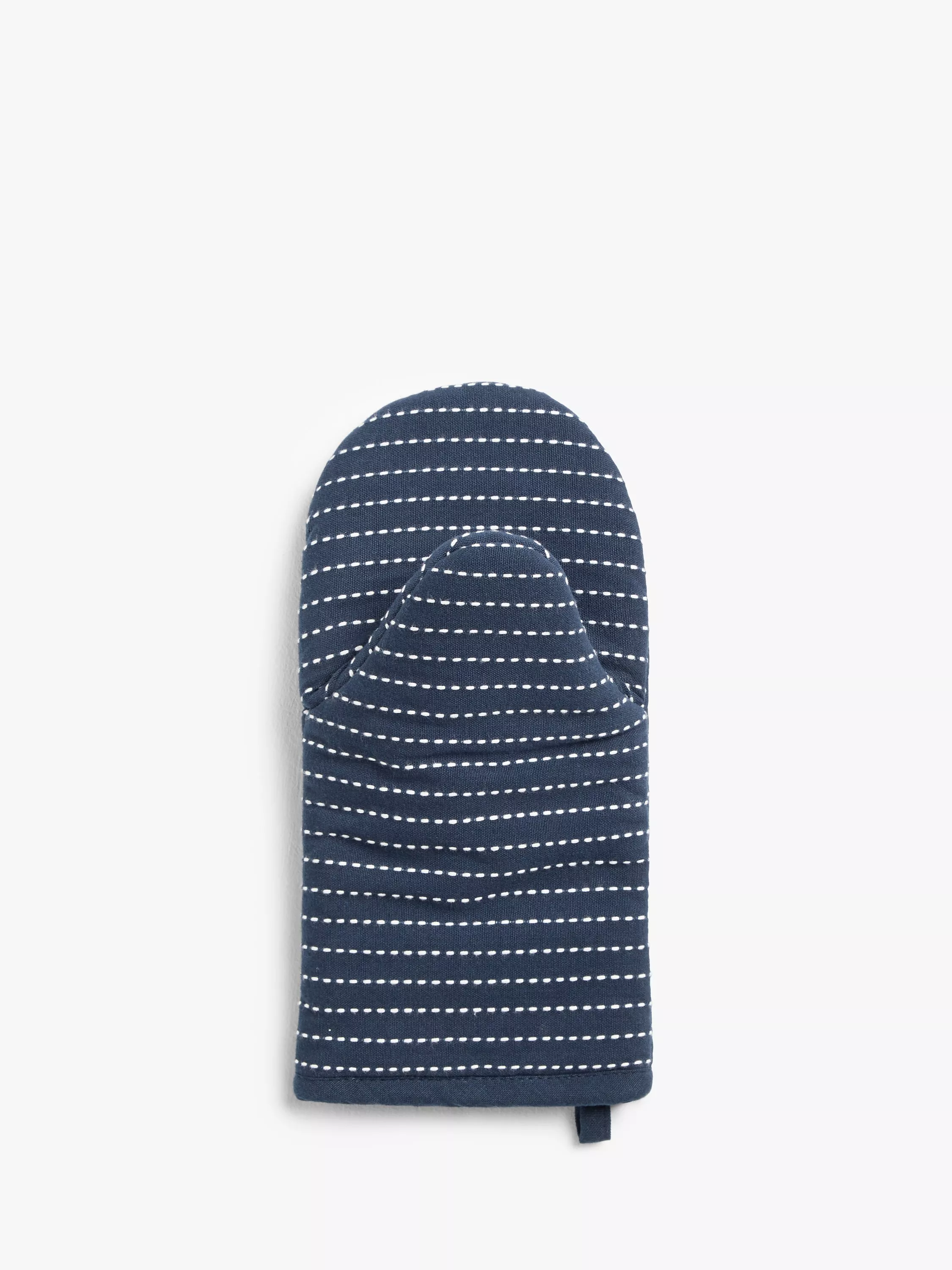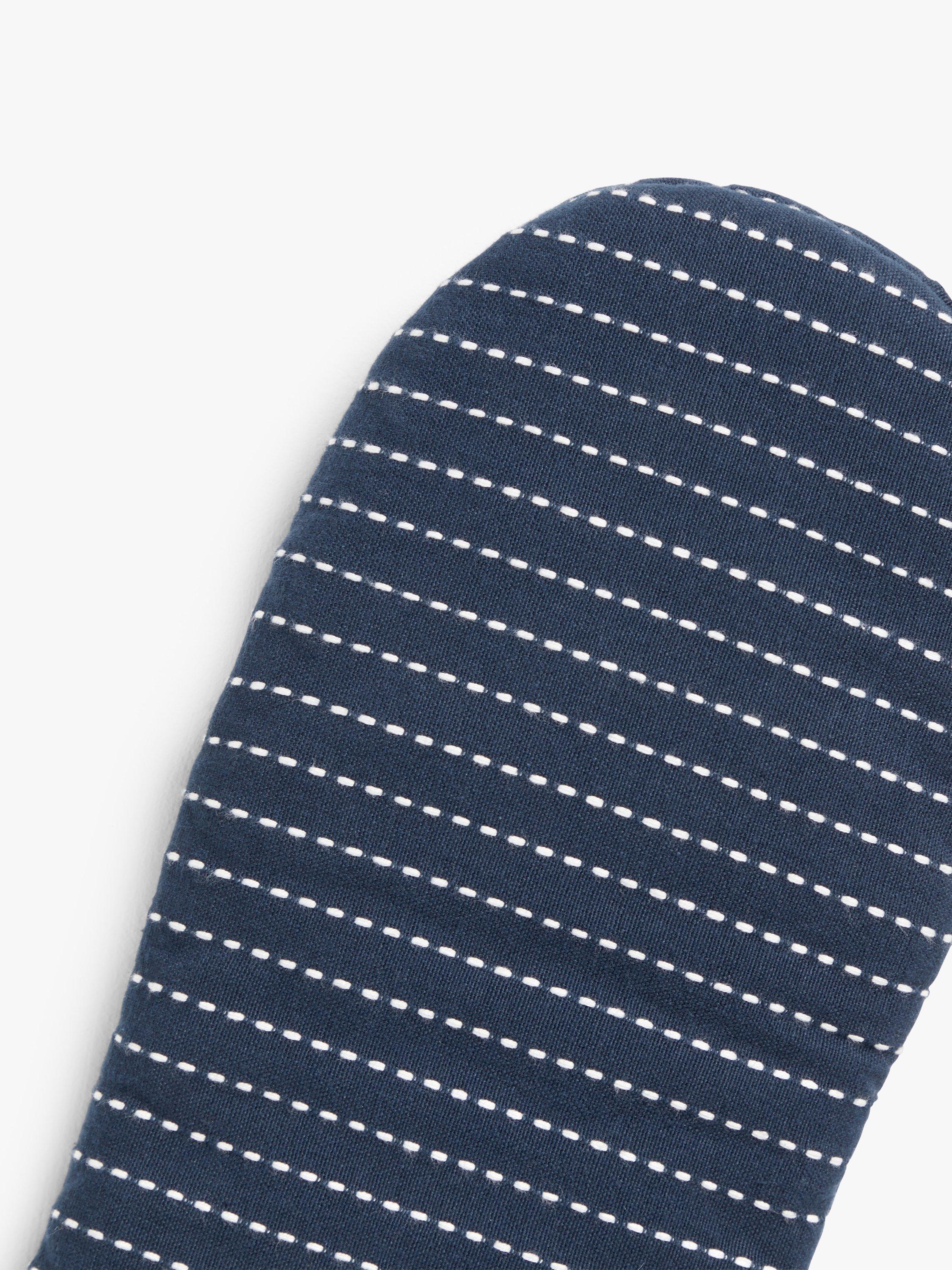 Patterned with classic stripes, this oven mitt is made from pure cotton with a polyester filling. Durable, comfortable and machine washable, it coordinates with the matching set of tea towels and kitchen apron.