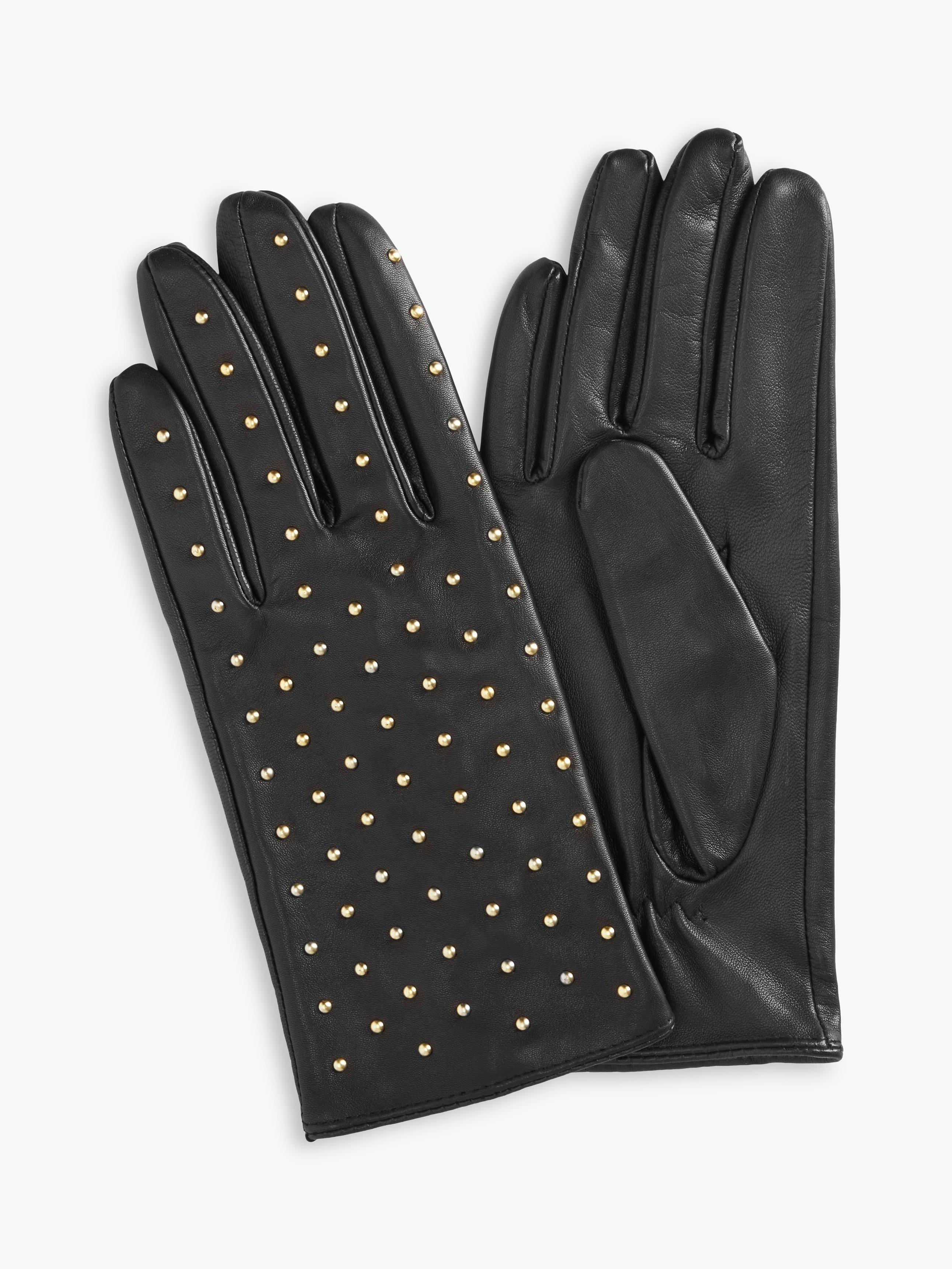 John LewisStudded Leather Gloves, Black/Gold