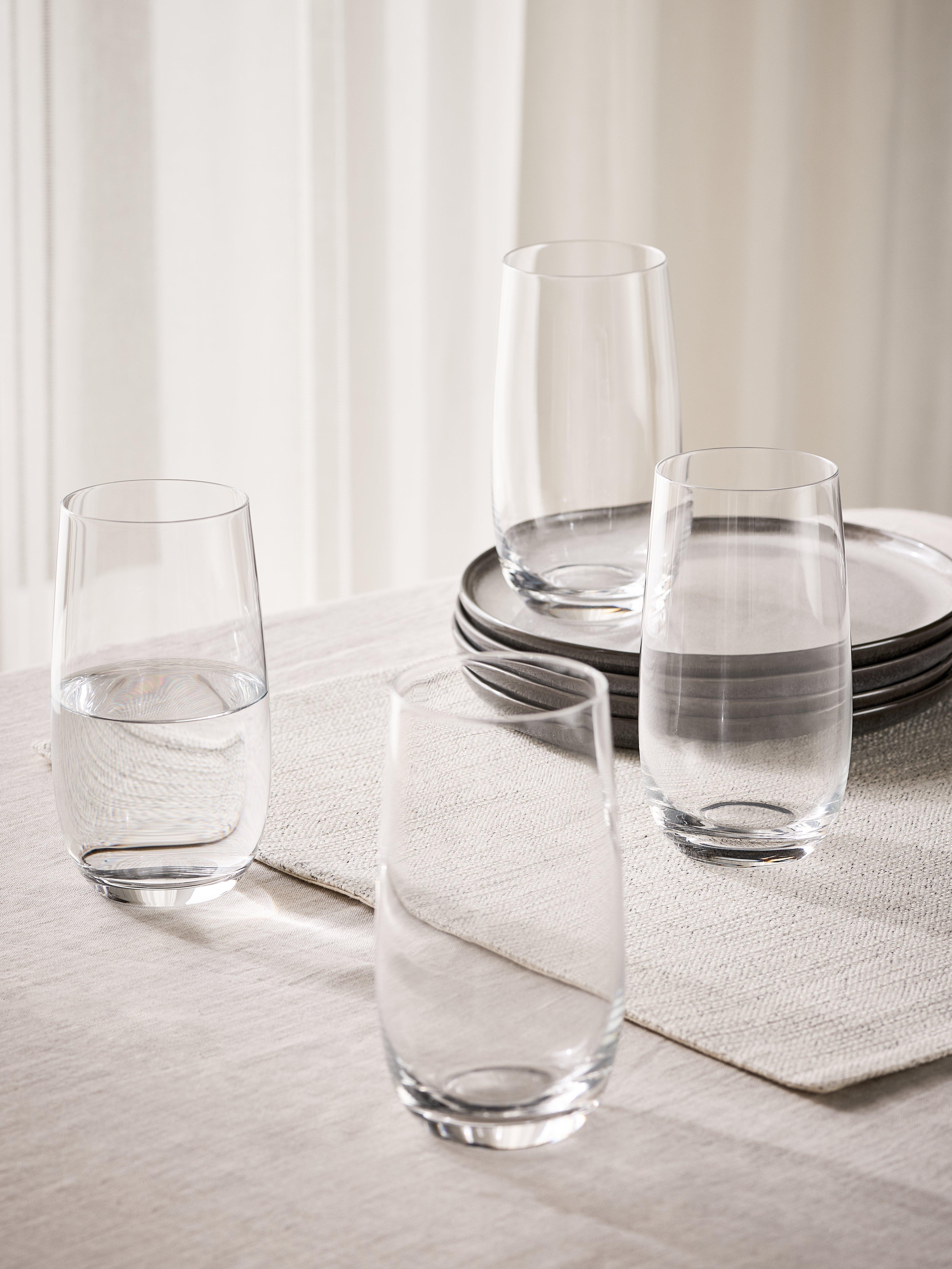 Four Studio glass highballs for long-drink cocktails or soft drinks. Made of crystal glass for clarity, they're dishwasher safe for easy cleaning.