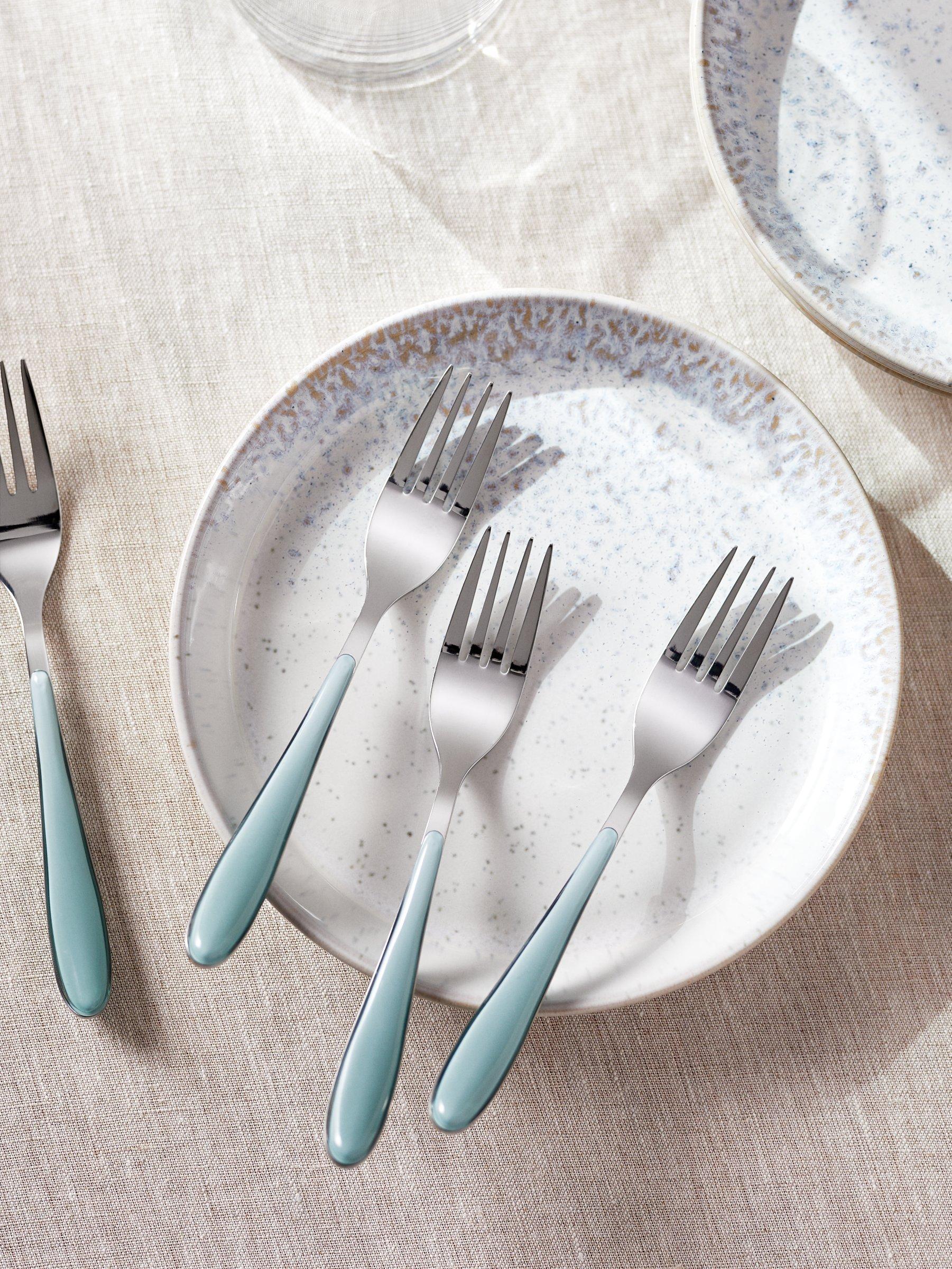 Four pastry forks from our Studio cutlery range. Made from durable stainless steel with colourful ergonomic handles. Dishwasher-safe for easy cleaning.