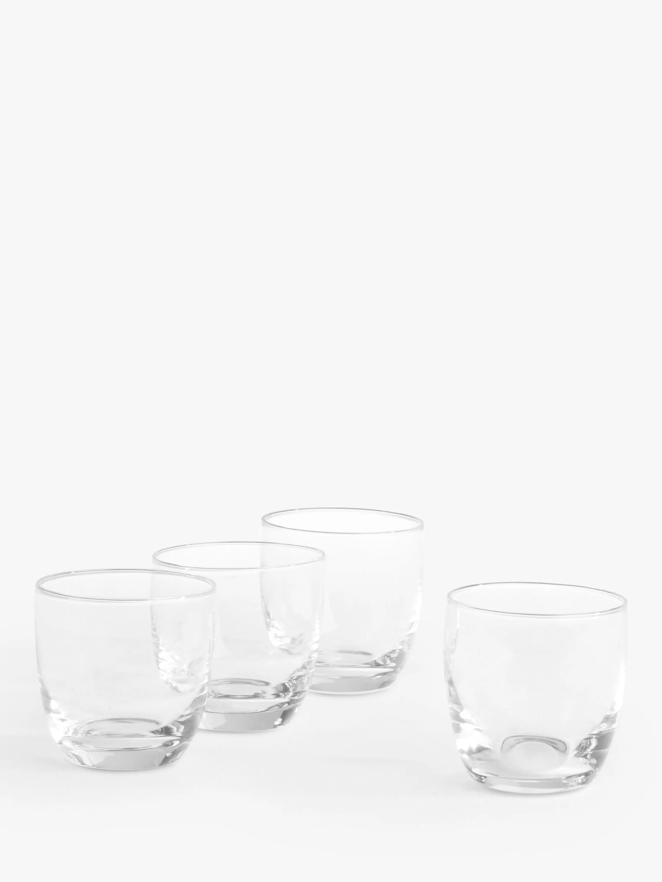 Four Studio shot glasses. Made of crystal glass for clarity, they're dishwasher safe for easy cleaning.
