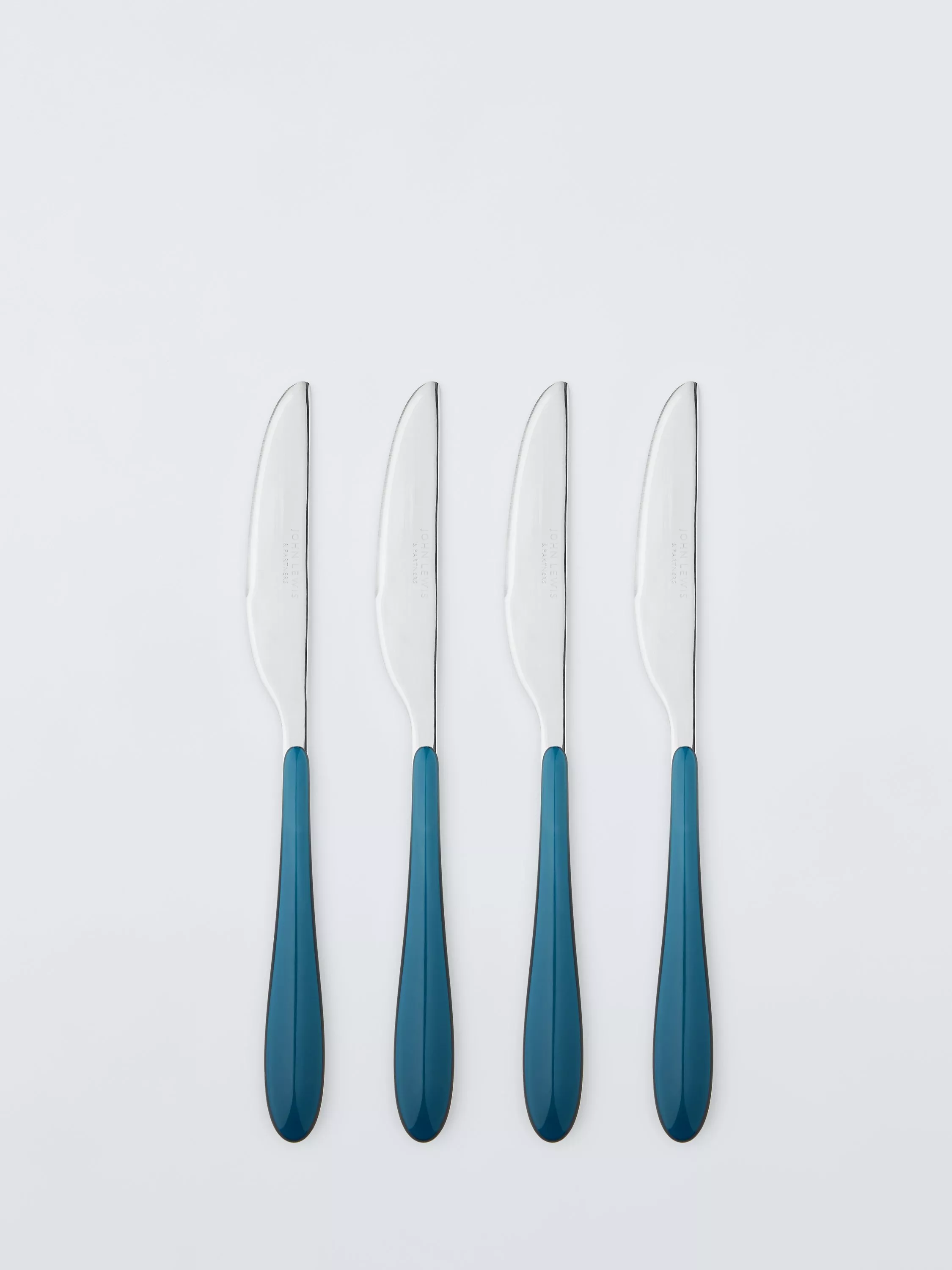 Four table knives from our Studio cutlery range. Made from durable stainless steel with colourful ergonomic handles. Dishwasher-safe for easy cleaning.