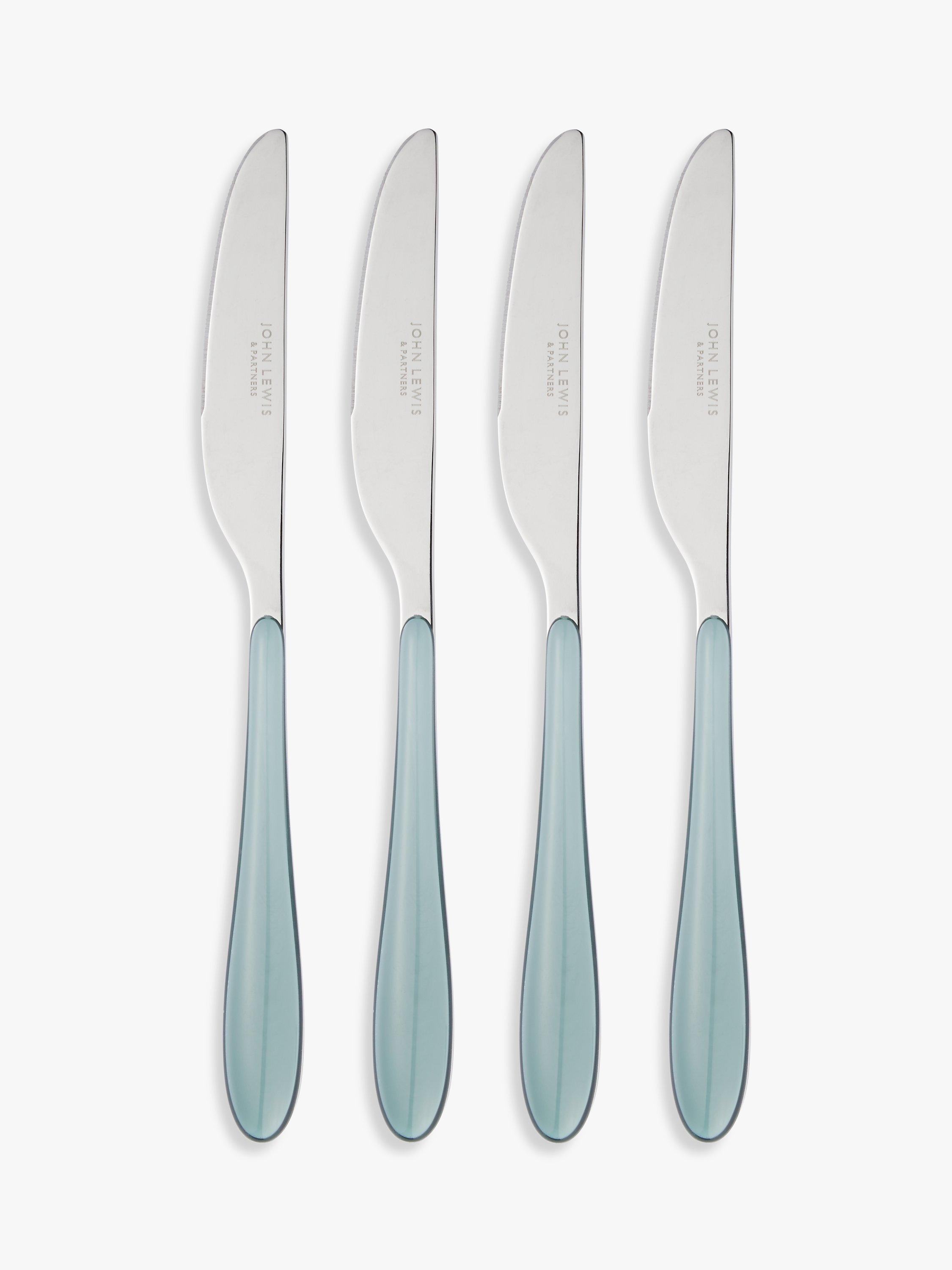 Four table knives from our Studio cutlery range. Made from durable stainless steel with colourful ergonomic handles. Dishwasher-safe for easy cleaning.